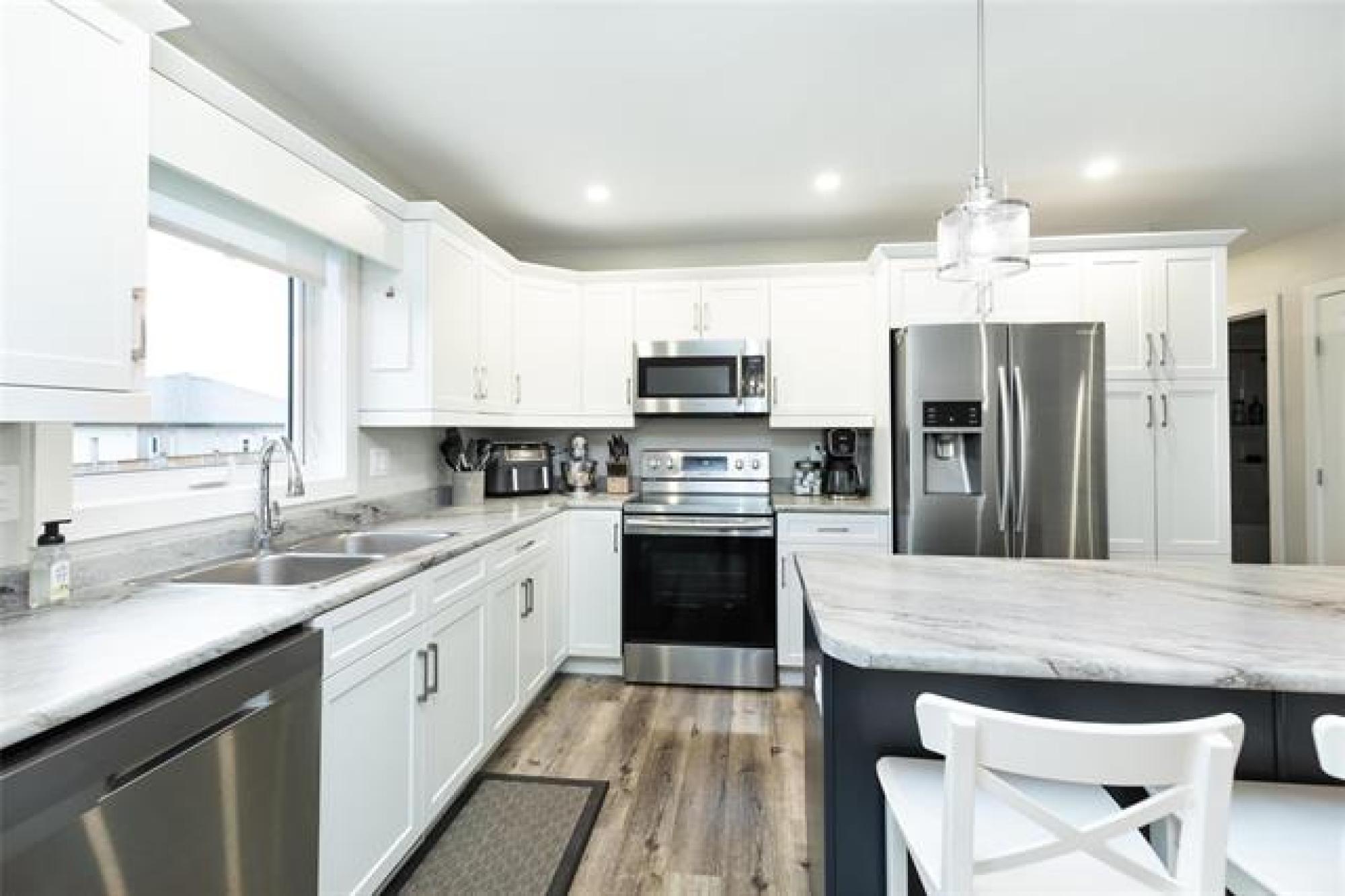 Showings start now, offers as received! Welcome to 53 Parkhill Crescent in Steinbach! This beautiful 1250 square foot home offers a bright functional layout with quality finishes throughout. Walking into the home you'll be greeted by the stunning kitchen which features an abundance of cabinet space, a large accented island, and plenty of room to cook and entertain.The main floor is filled with natural light and includes a spacious living room with an electric fireplace, a generous dining area with a garden door to the deck, and a great-sized primary bedroom complete with a walk-in closet and 3-piece ensuite. Two additional bedrooms and another full bathroom complete the main level. The lower level is complete with a fully finished rec room and designated play area for the kids, perfect for growing families. The basement also includes an enclosed laundry/utility room, space for two more bedrooms, and is roughed in for another full bathroom. The landscaped backyard with a hot tub and fire pit area are ideal for entertaining or relaxing evenings at home. With its thoughtful layout and move-in-ready condition, this home is one you won't want to miss!