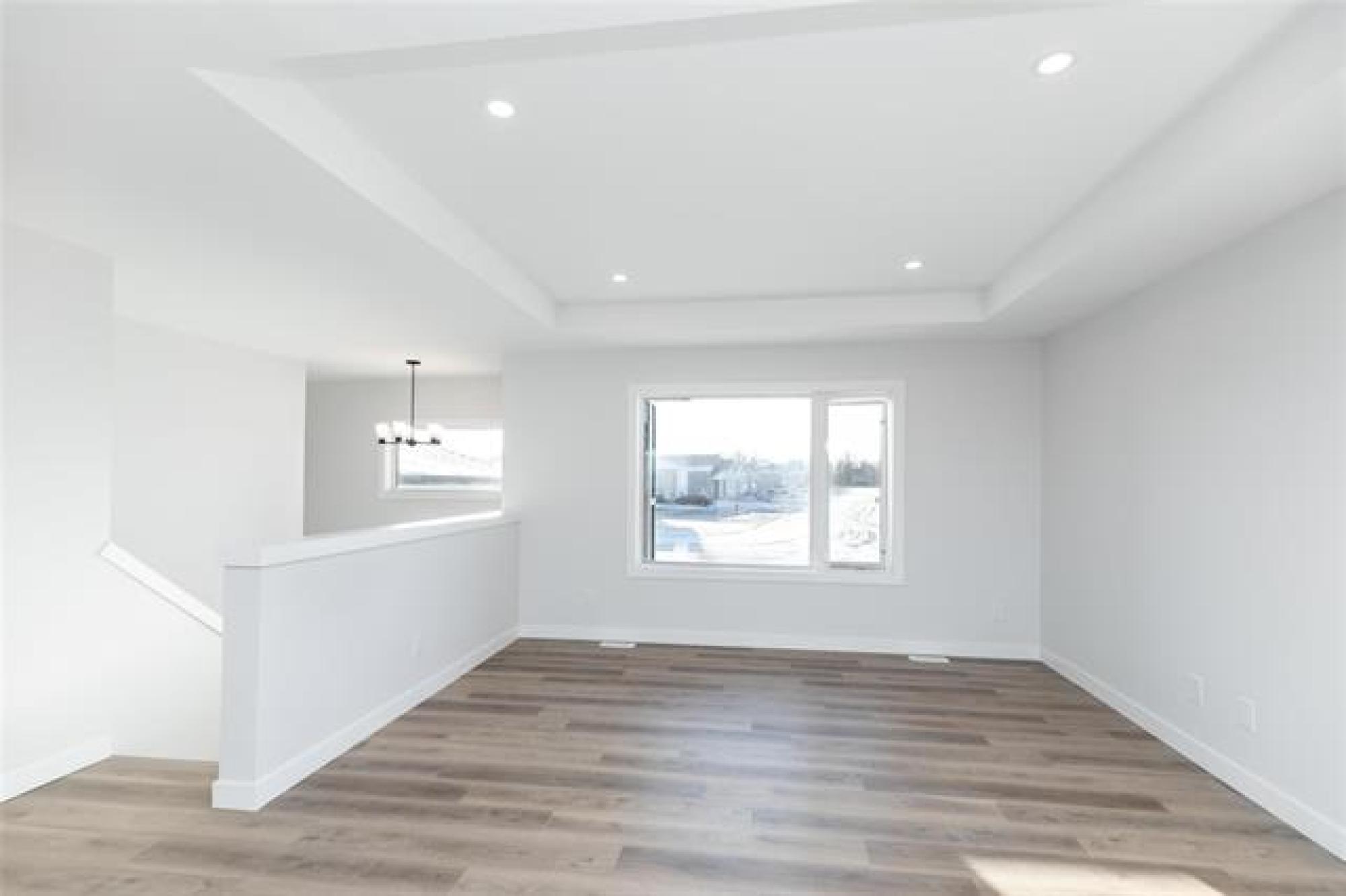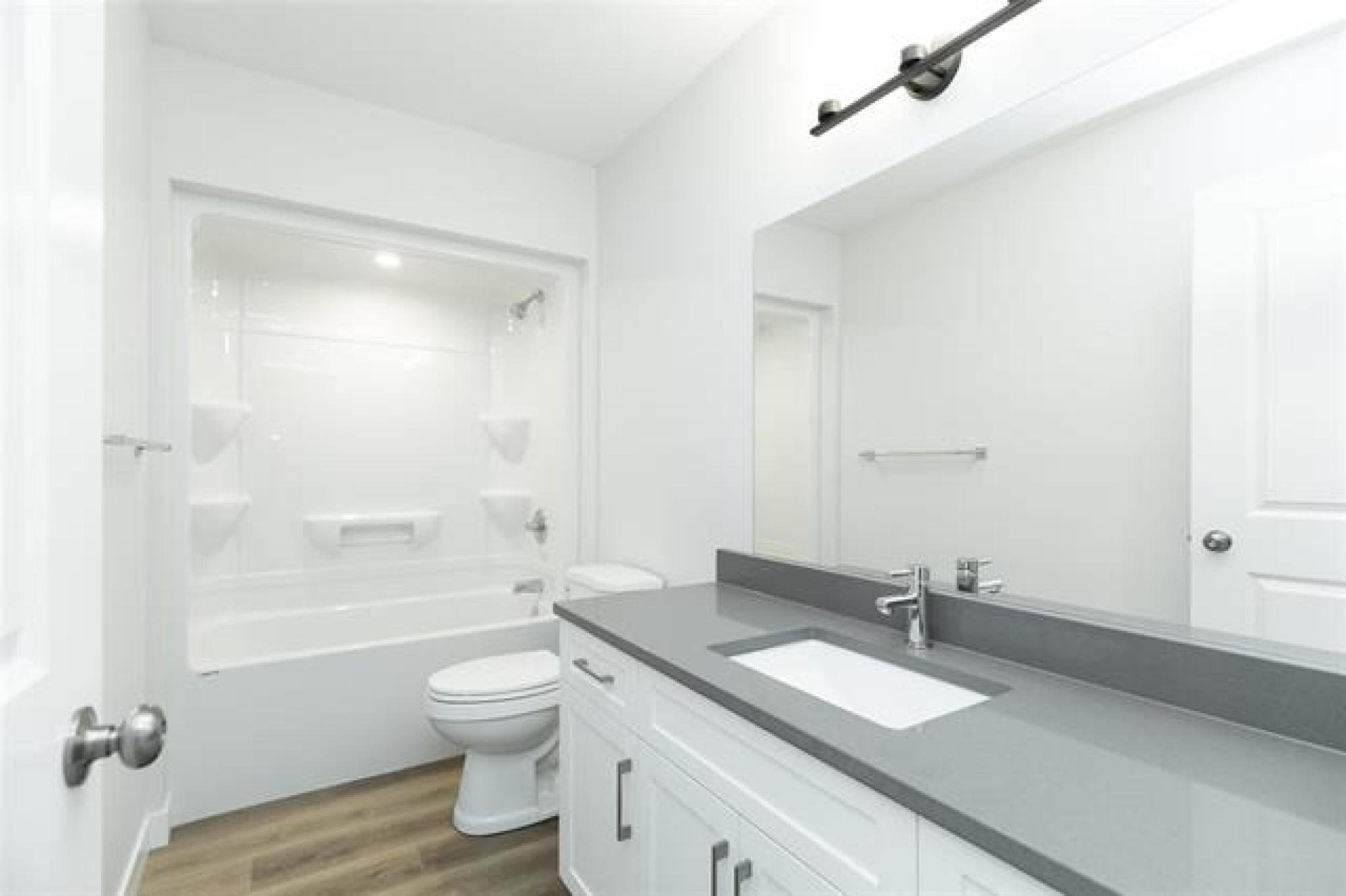 Start out new in this beautiful 1223 sf bilevel backing onto public greenspace! No backyard neighbors here, AND a 1% down payment financing option available (with no CMHC premium!) if the down payment has been holding you back! The price is all inclusive- Appliances included (fridge, stove, washer, dryer, dishwasher and OTR microwave), concrete driveway & 5 year new home warranty! DON'T FORGET if you're a first time home buyer you will receive a FULL GST REBATE (another $17 411 off the list price!). Stunning curb appeal with Mountain Sage composite siding, black door on your double attached garage on the front & stucco on the sides and back. Head inside to oversized entrance and upstairs to open living! Tray ceiling in the living room & large windows throughout! White shaker style kitchen & white quartz countertops, island and pantry for bonus storage! 3 bedrooms 2 bathrooms and large walk-in closet for primary bedroom complete the main. Downstairs includes laundry area, roughed-in plumbing for another bathroom and tons of space. Insulated concrete form basement, central a/c, hrv & sump pump. Tons of value and ready to move in for September! Great school in this fabulous community!