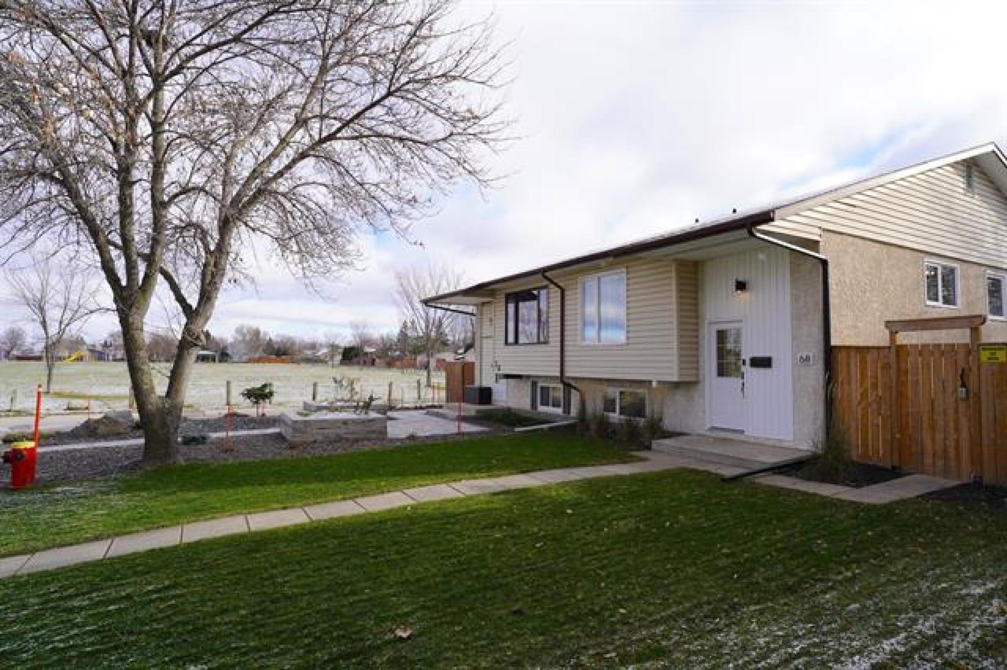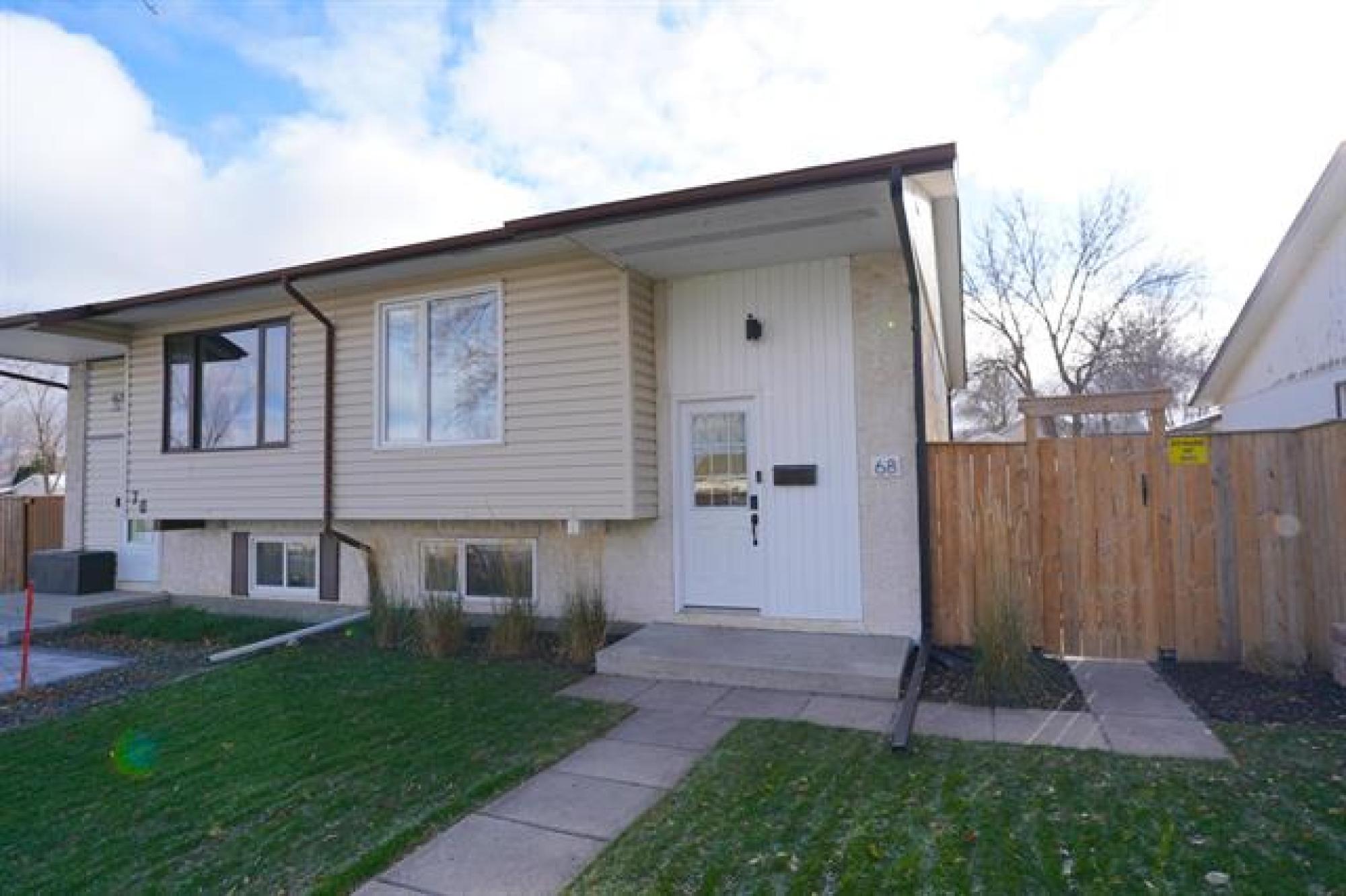 Offers presented as received. Discover perfection at 68 Ainsdale Way, an immaculate 3-bedroom, 2-bathroom bungalow in the heart of Transcona, Winnipeg. Just steps from Millennium Park, this home shines inside and out – from lush front grass to an updated kitchen and laundry room. Features include a newly renovated kitchen with stainless appliances, new interior doors, neutral paint, modern baseboards/casings, PVC windows, new front door, and LED pot lights. The fully developed lower level is ideal for entertaining, with a large rec room and bar area, a spacious bedroom with oversized window for natural light, and a large ensuite bathroom. High-efficiency furnace ensures comfort at an affordable cost. Outside, enjoy impeccable landscaping, a newer pressure-treated wood fence, parking pad, and large shed. Walking distance to all schools, parks, and amenities – a rare gem!