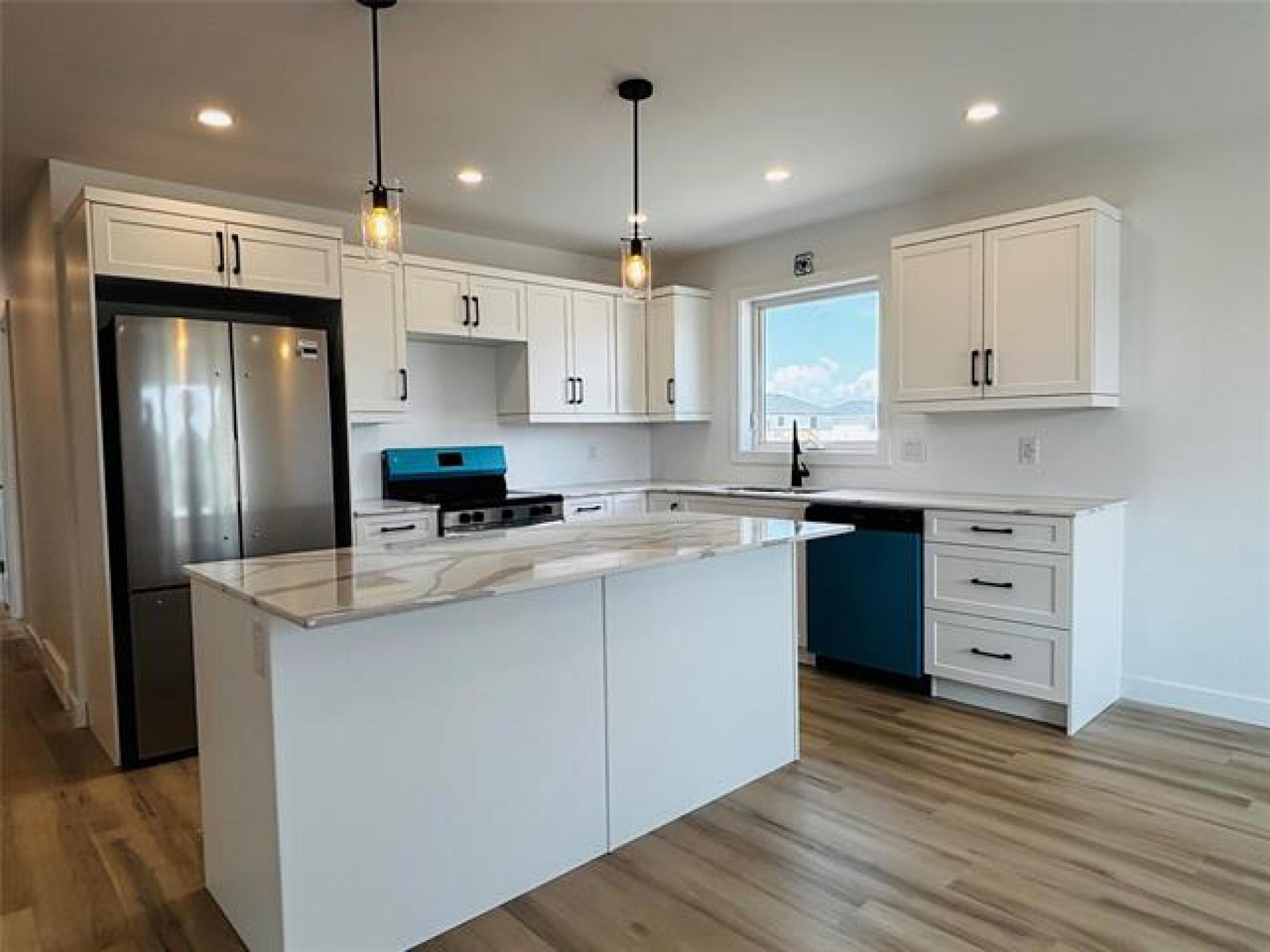 1% down payment available on this home with 30 year amortization, no CMHC fees (OAC).Home built on a large 60 x 117 lot in a beautiful neighborhood near the park/ball diamonds etc. This Stunning 3 bedroom residential home comes with a spacious front entrance, modern kitchen, large island w/quartz, perfect for entertaining family and friends and garden door to your covered deck. The primary bedroom features 3 piece ensuite and walk in closet, plus 2 additional spacious bedrooms and 4 pc bathroom round off the main level. The full basement has a large rec room, and is ready for future development of 2-3 bedrooms and bathroom. One of the unique features of this property is its oversized double attached garage with garage door openers and remotes. INCLUDES PAVED DRIVEWAY. This community offers a variety of nearby attractions, such as ice skating, ball diamonds, playground, K-8 schools and, golf courses near by, public pool, and skate park only minutes away. Includes 5 YR NATIONAL HOME WARRANTY. Pictures from previous home by this builder.
