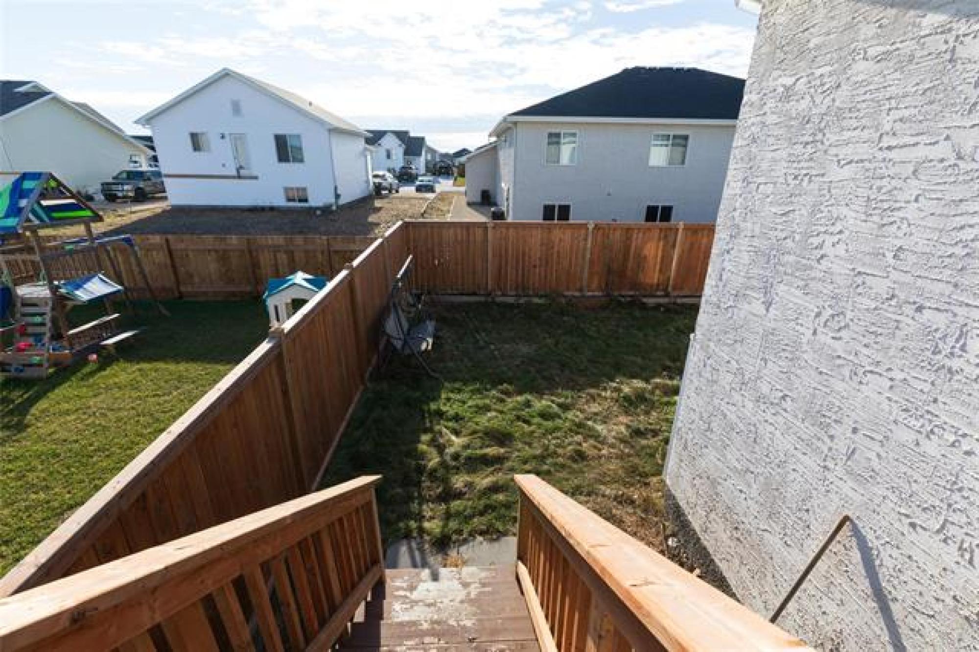 Welcome to 8 Acorn Ave. You are sure to be impressed with this modern 3 bedroom 2 bathroom home in highly sought after Lexington Village. Location is key being steps away from the school bus stop and less than 1 minute away from Steinbach's newest school. Walking in you are greeted with a large open concept living and dining room space, perfect for entertaining. Kitchen has high end black stainless appliances and leads to a huge deck that overlooks your fully fenced yard. 2 generous size bedrooms and a large 4 piece bathroom finish off the main level. The spa like primary bedroom downstairs is amazing with a humongous walk in closet, 2 piece ensuite and a gigantic roughed in walk-in shower with two showerheads, ready for your finishing touches. Family room and laundry room finish off the lower level. Hurry in to see this beautiful family home, you won't be disappointed.