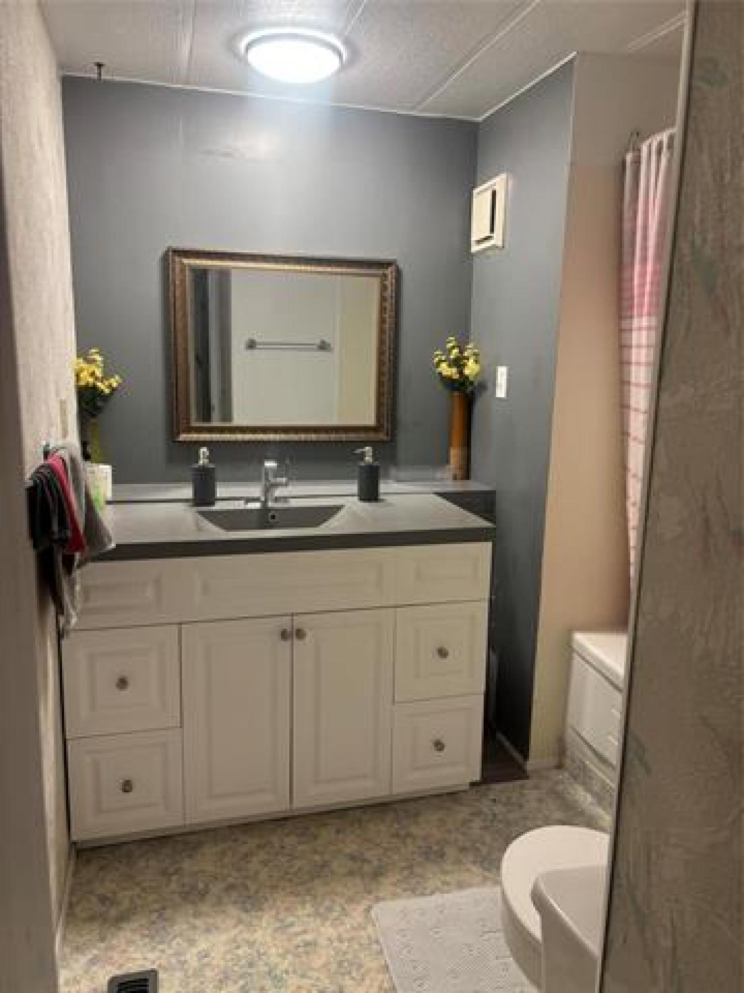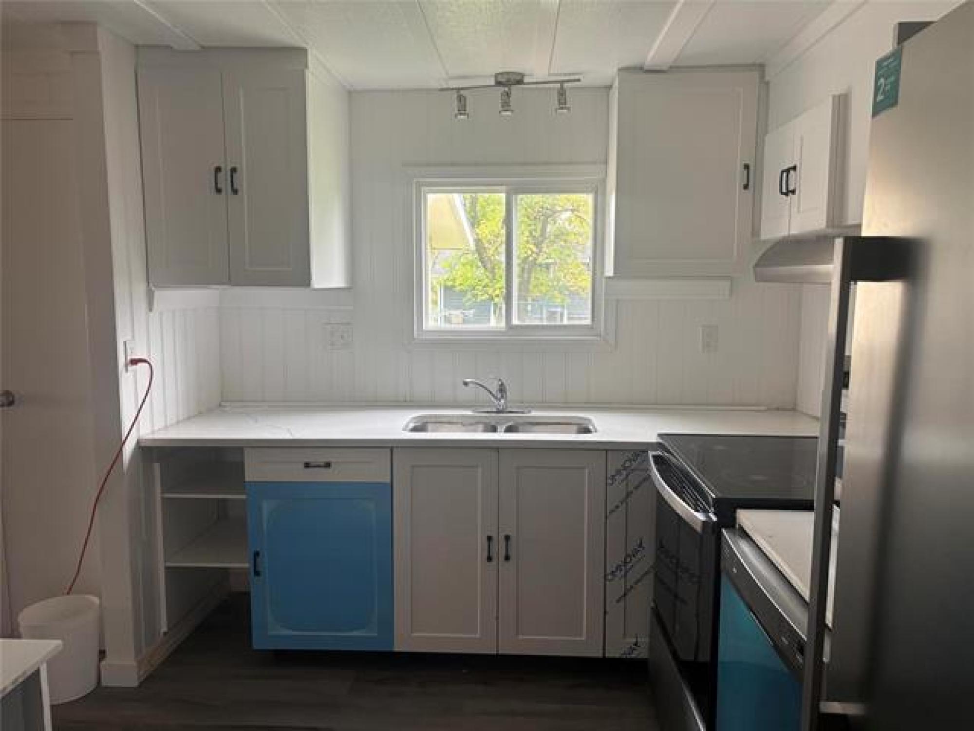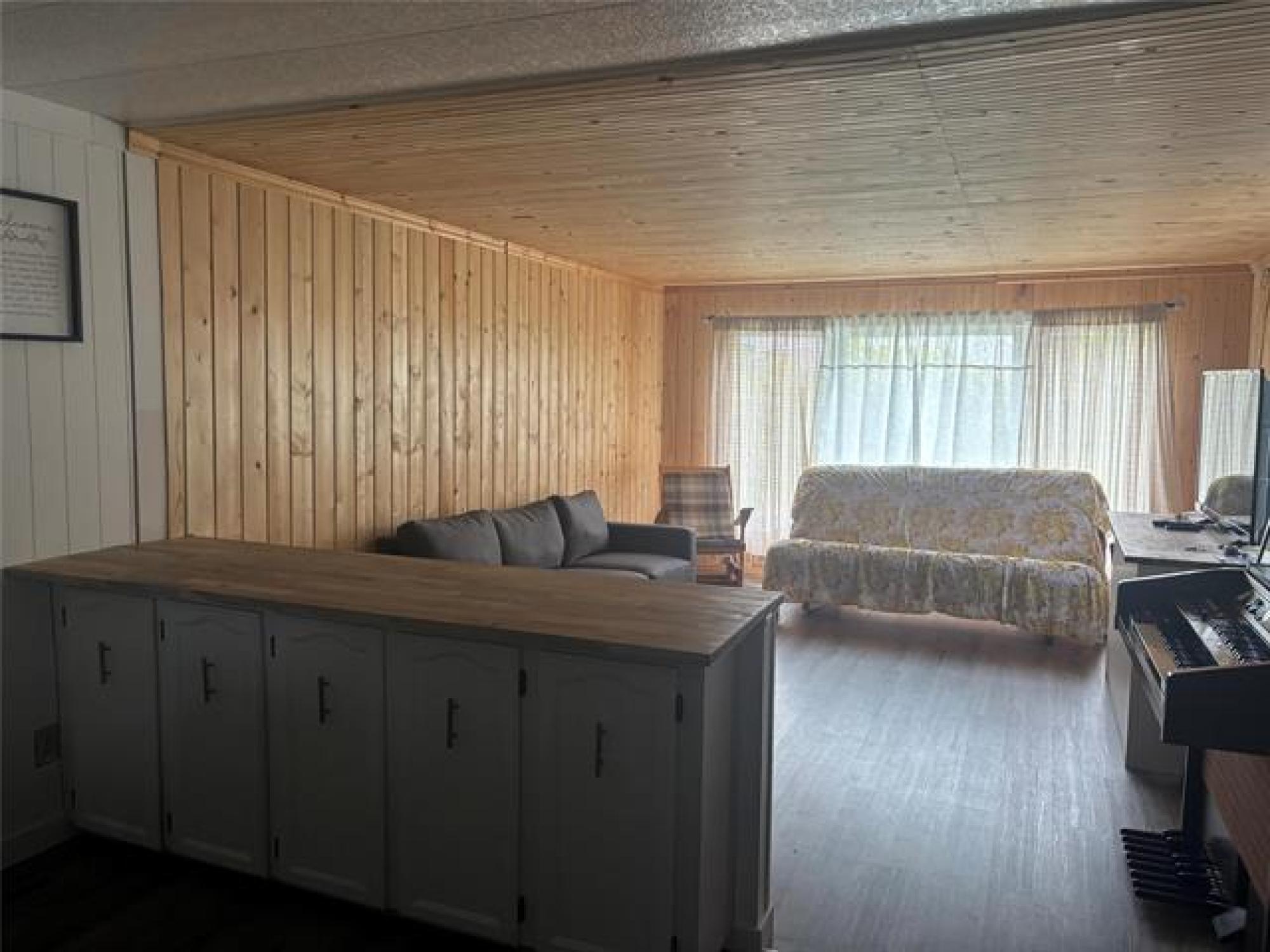 Newly renovated 3-bdrm 1064 sqft. mobile home with open concept layout that connects the lvgrm/drm and kitchen. New appliance and HWT. Renovations done in 2024-new bath vanity, kitchen quartz counter, Korean stone on cabinet, laminate all over, pine paneling on lvgrm ceiling, roof shingles, wood (Prime B) siding, facia board and drip flushing. Front porch and deck. Lot fee is $278.50/mo covers water, sewer, garbage and recycling. Septic tank is pump 2 times a month - private water system. Grocery store and gas station nearby.