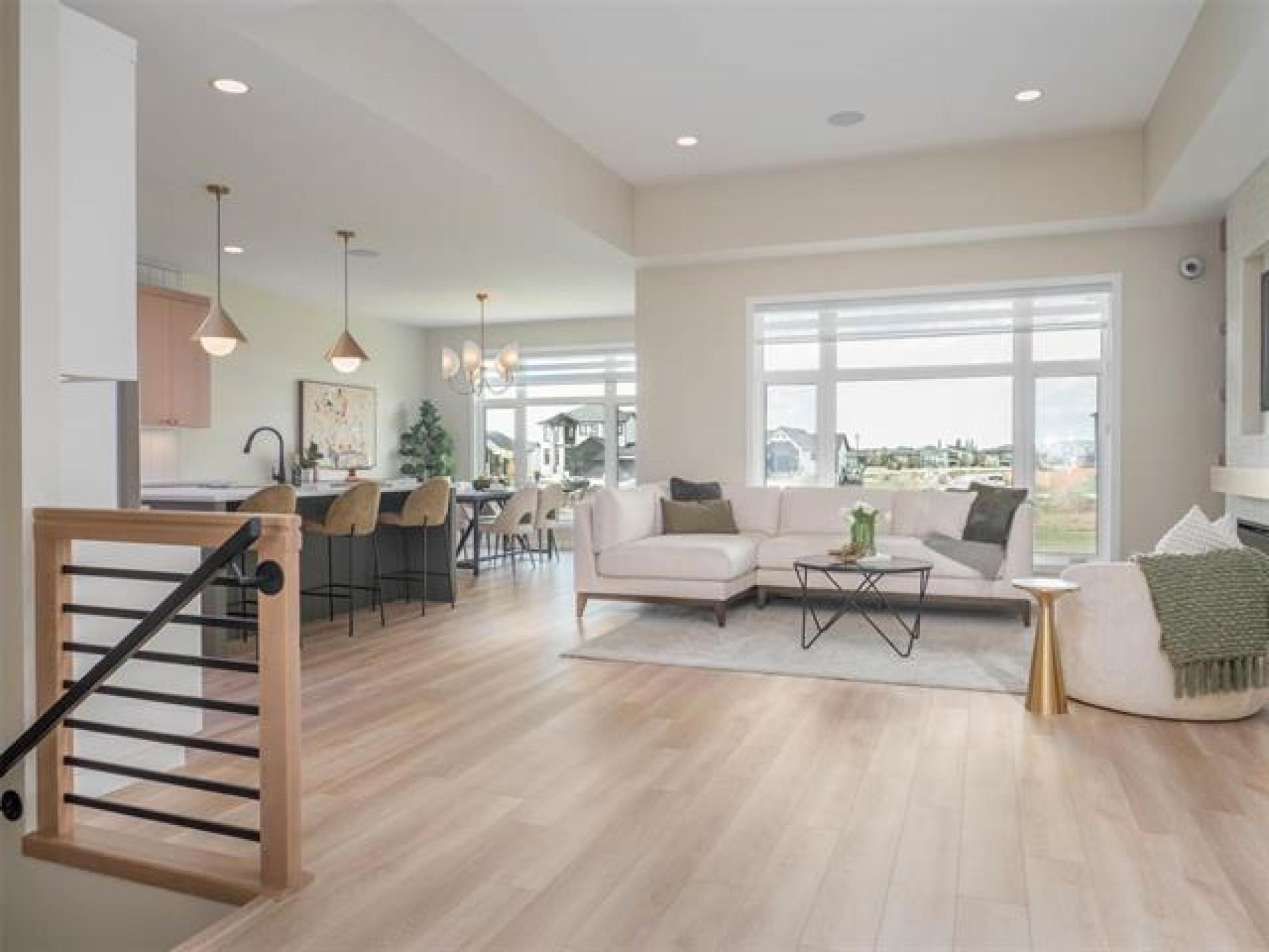 Functional and stylish 1849 sf bungalow by Avanti Custom Homes. Incredible open concept living space overlooking the west facing backyard with covered composite deck. Beautiful kitchen featuring quartz countertops, tiled backsplash, an oversized island, walk in pantry and in-ceiling speakers plus the stainless steel appliances are included. Private primary bedroom with gorgeous 4 pc ensuite featuring heated tile floors, huge vanity with dual sinks and walk-in closet. Two additional bedrooms, 4 pc bathroom, main floor laundry and spacious mud room and a bonus 2 pc powder room. Lower level features a structural wood floor, framed in for two more additional bedrooms, spacious rec. room, 4 pc bathroom and lots of storage or massive bonus room. Fully landscaped yard with irrigation system already in place.