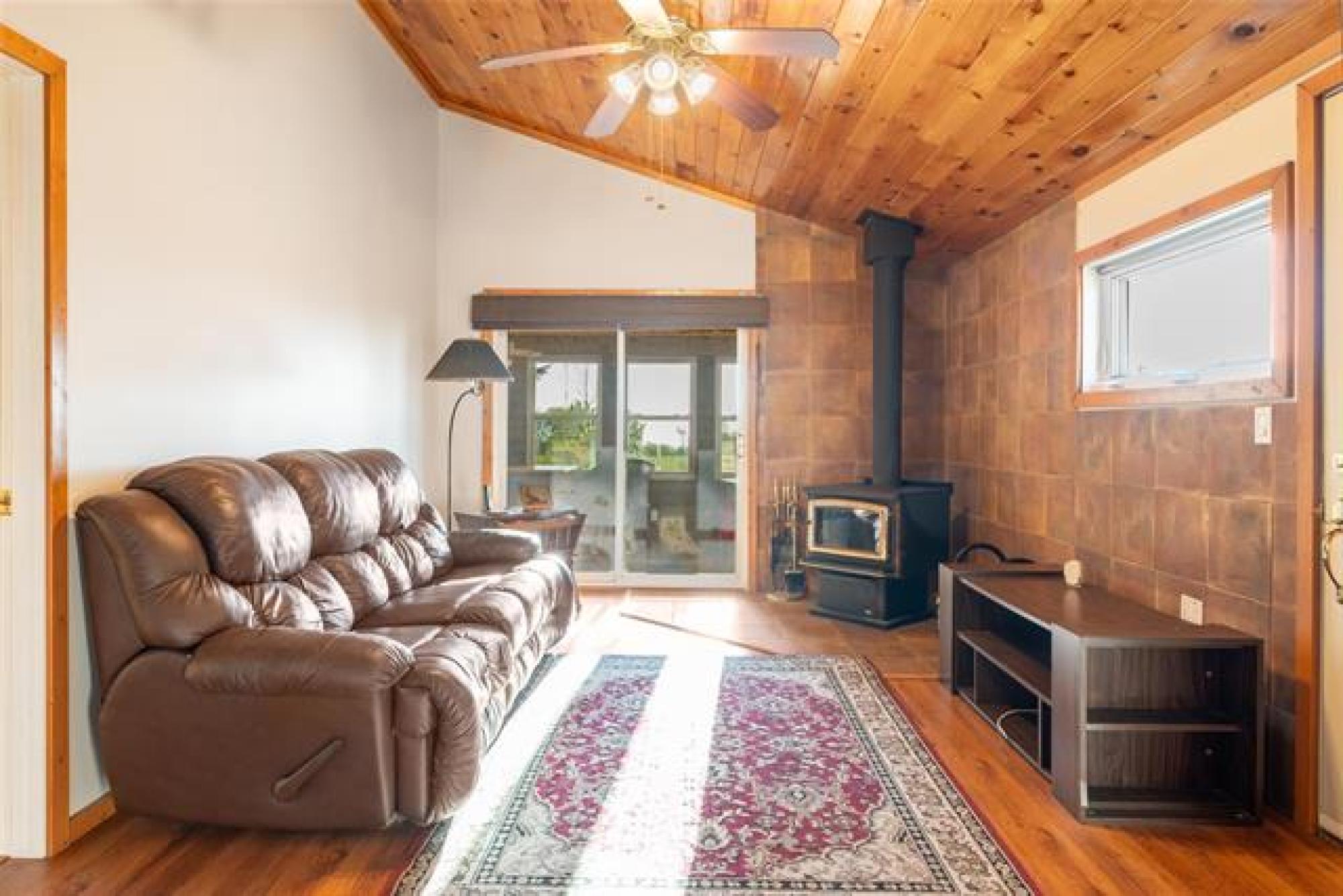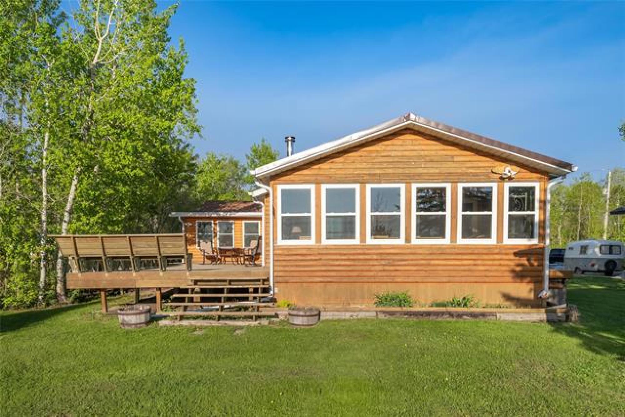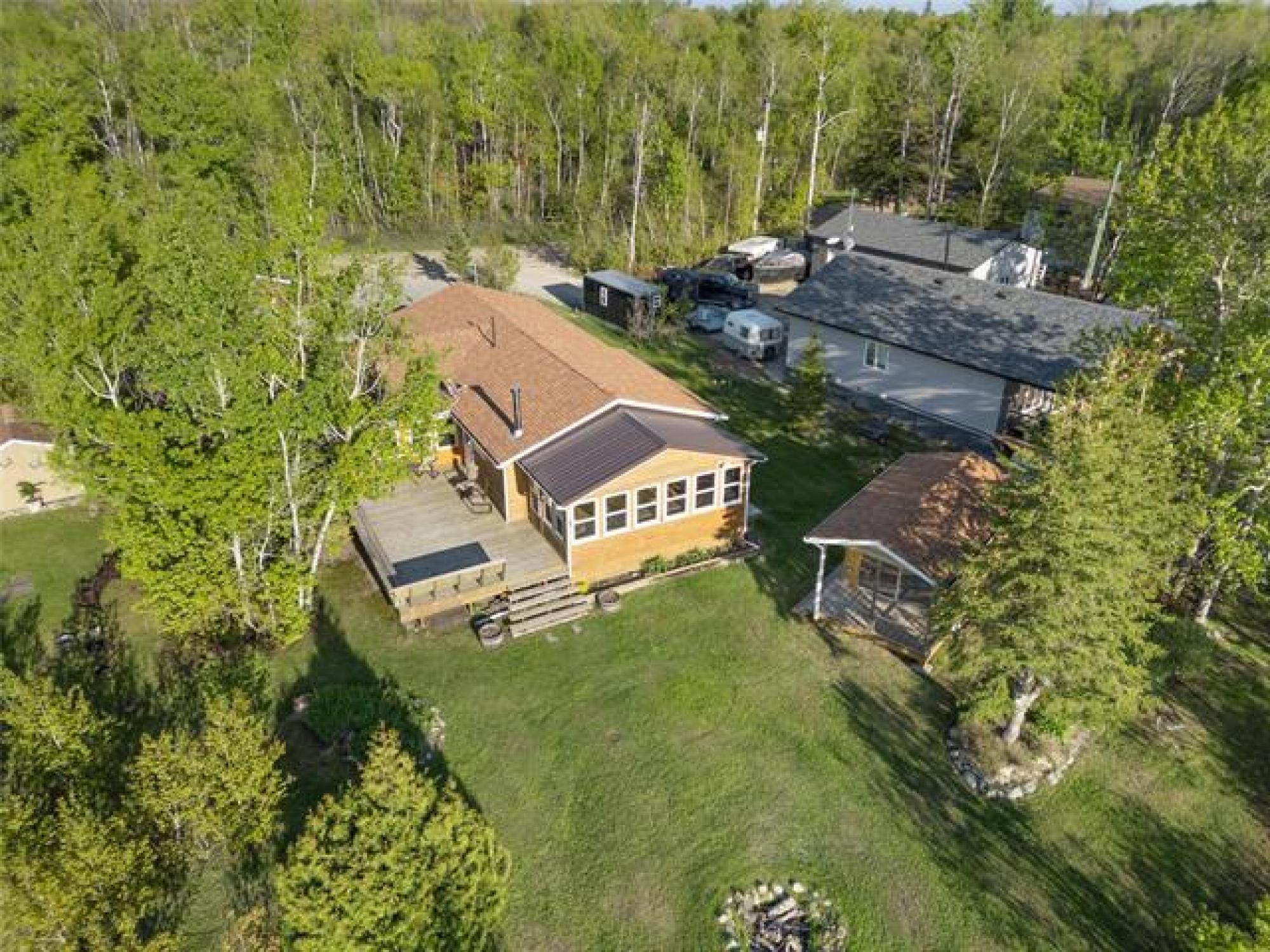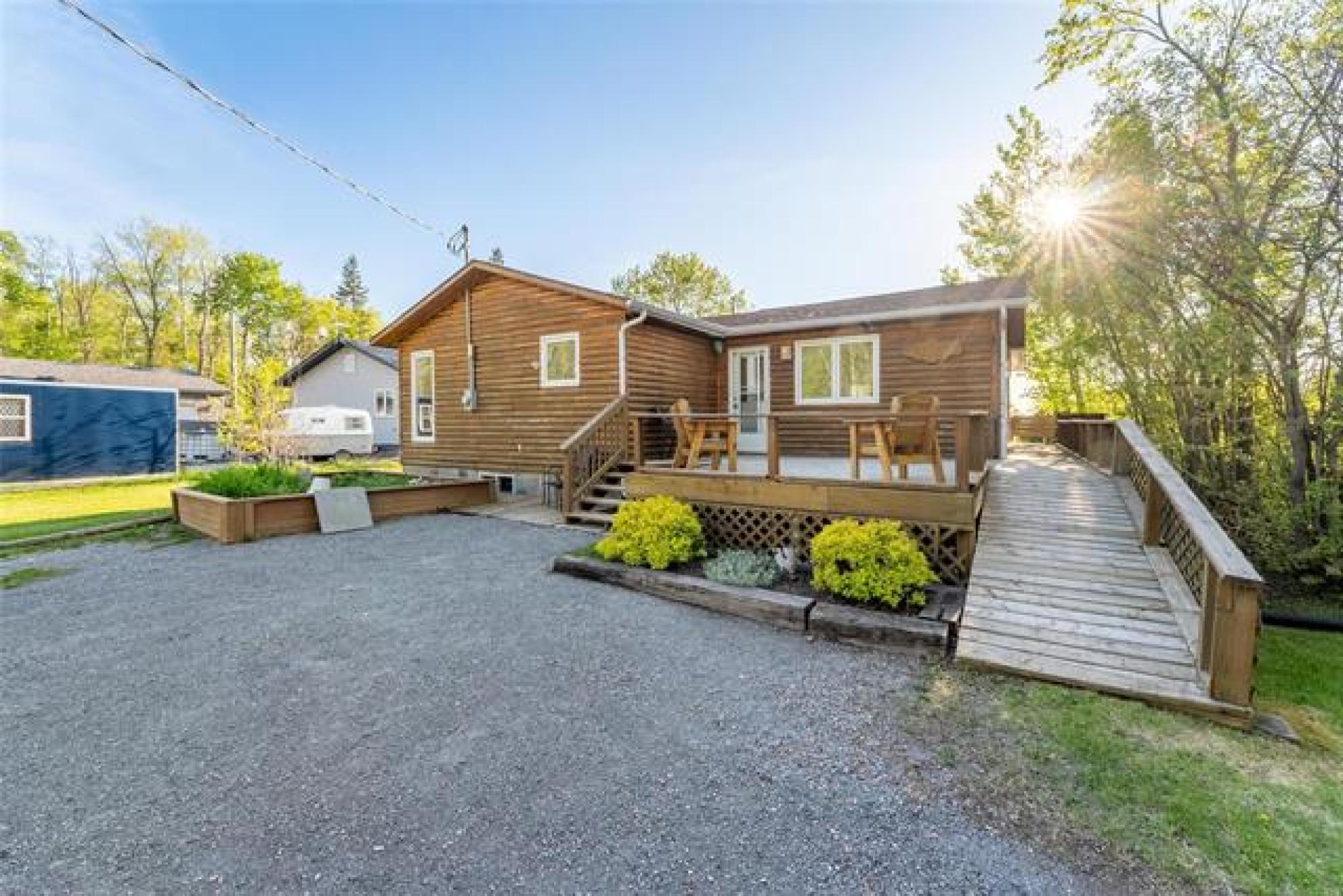Showings start on Sat. 05/28 OH 05/28 2-4 PM. Year-round lakeview living just steps from the sandy path to Island Beach! This 1428 sq ft 3BR, 2 bath cottage / Home offers rustic charm with modern touches. Enjoy 98 ft of lakeview frontage, a gorgeous 16x14 front deck, and a western-facing sunroom addition (2010/11) for stunning sunsets. Interior features include pine ceilings, IKEA kitchen with plenty of storage, electric stove & microwave, 3 distinct living areas including a cozy family room with WETT-certified wood stove, and a mix of tile, cork & laminate flooring. Primary Bedroom features an in-floor heated 4 pce ensuite and walk-In closet. Updated shingles ('15) mostly triple-pane windows, 200 AMP service, PVC plumbing, and electric baseboard heat throughout. Also includes a clawfoot tub bath, laundry room with stacked washer/dryer, 1650-gal cistern, and infrared heater in crawl space. The 22x22 double garage has a concrete floor & sub-panel. Bonus: Lakeview guest cottage/shed & post-and-pad foundation. Steps to the beach, minutes to Grand Beach, and only 30 mins to Selkirk. Life at Island Beach is calling! extra fridge and freezer Incl. Measures +/- Jogs