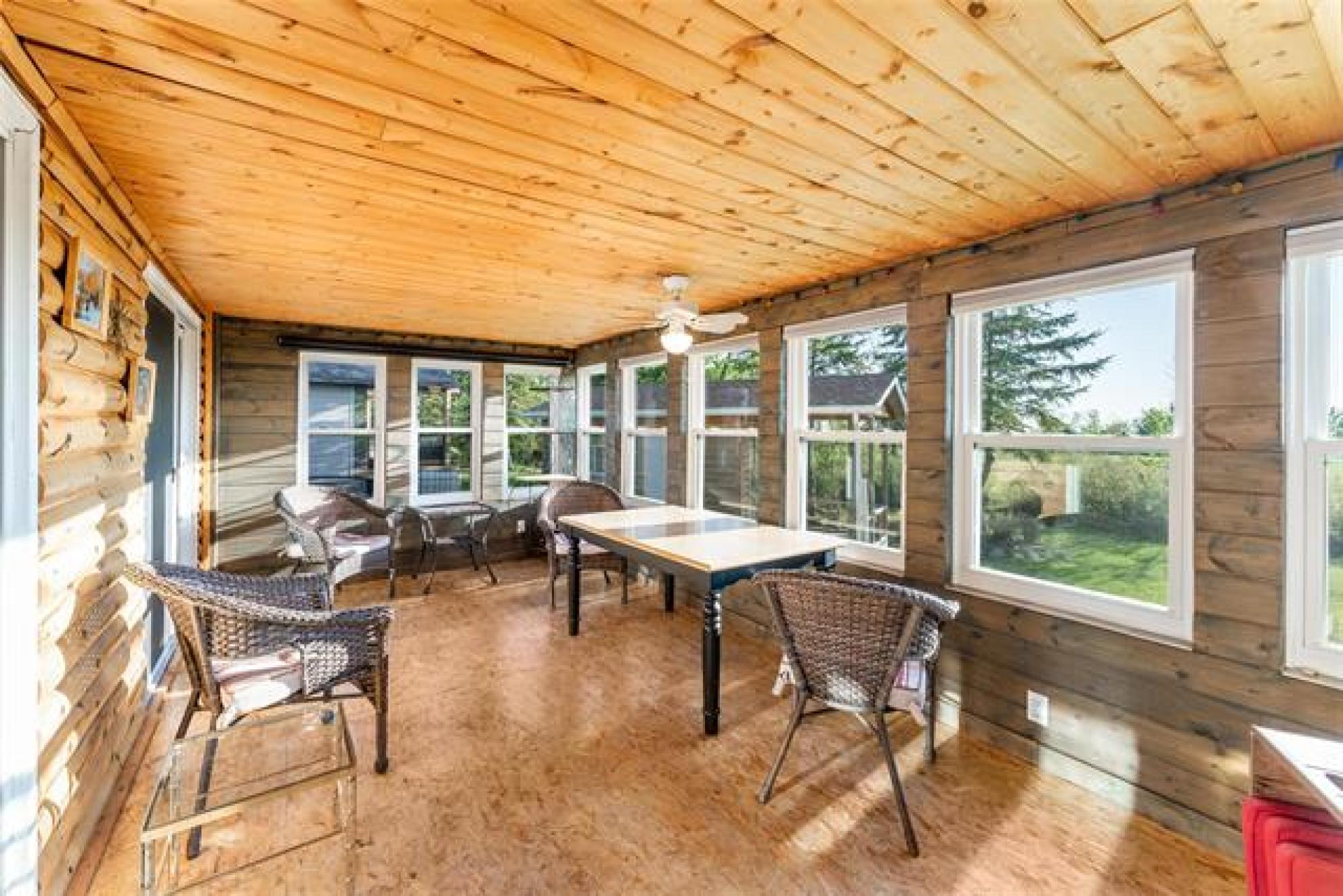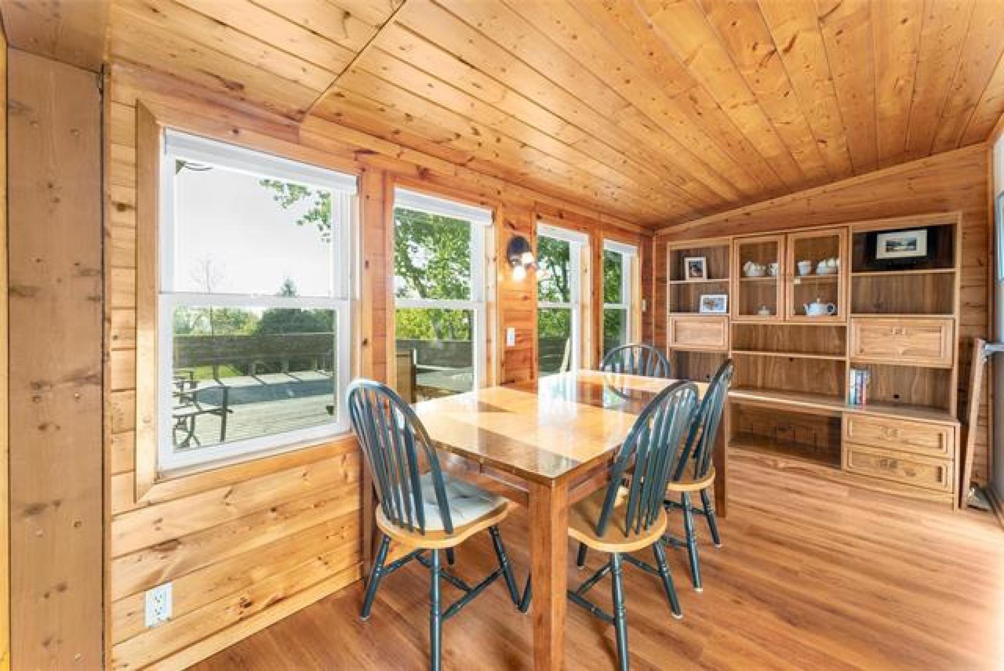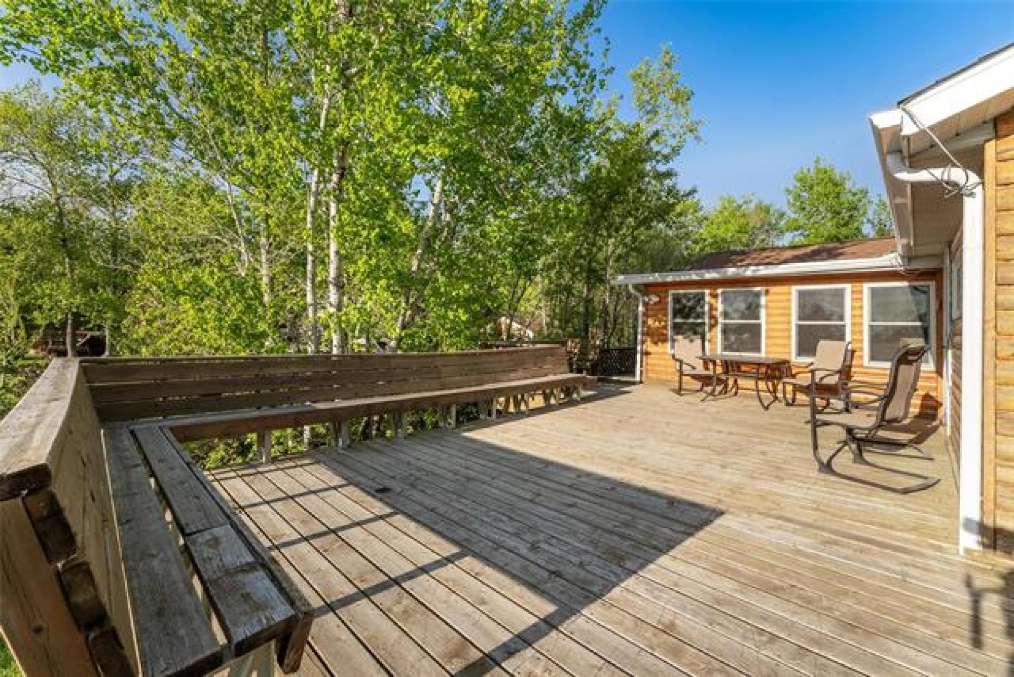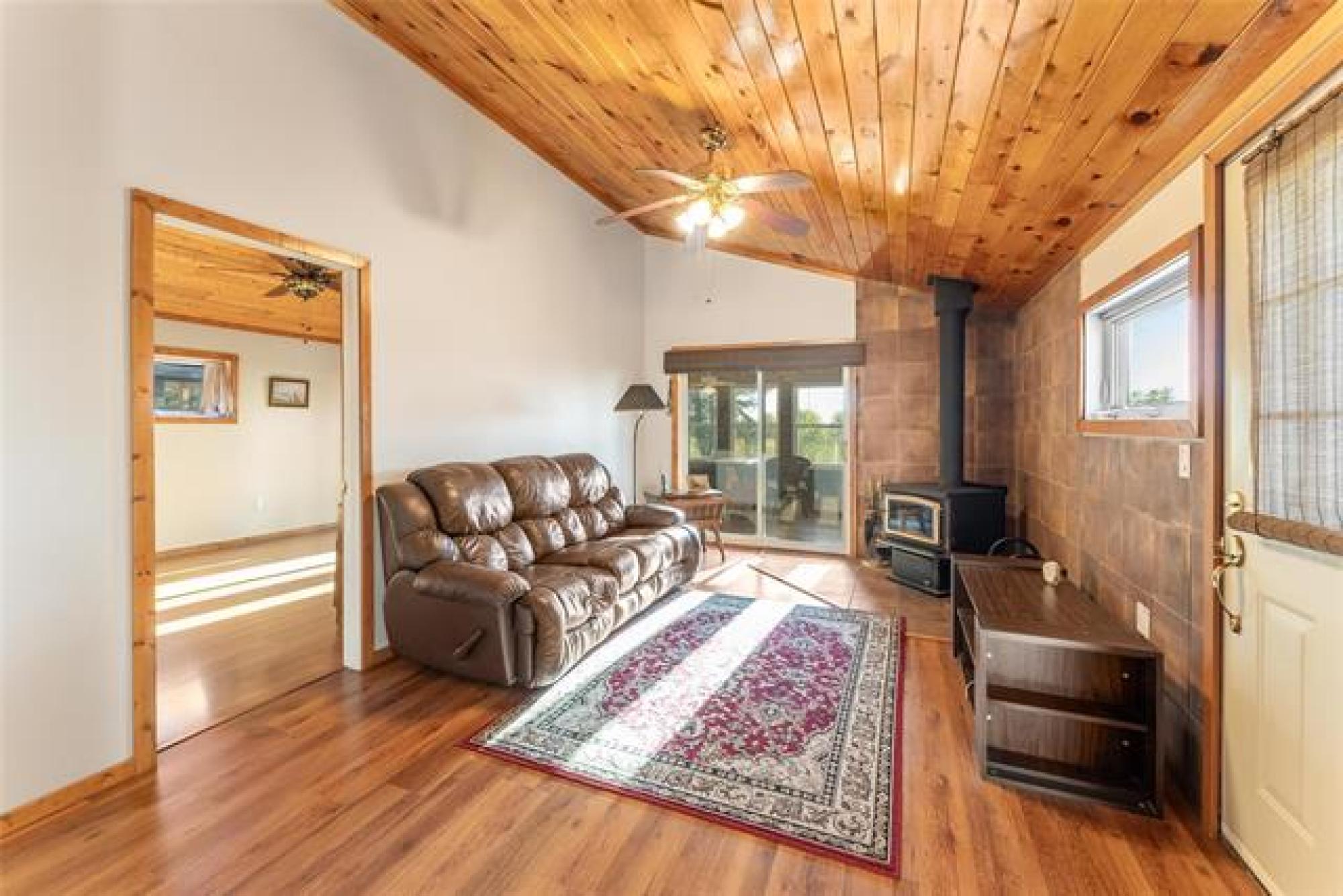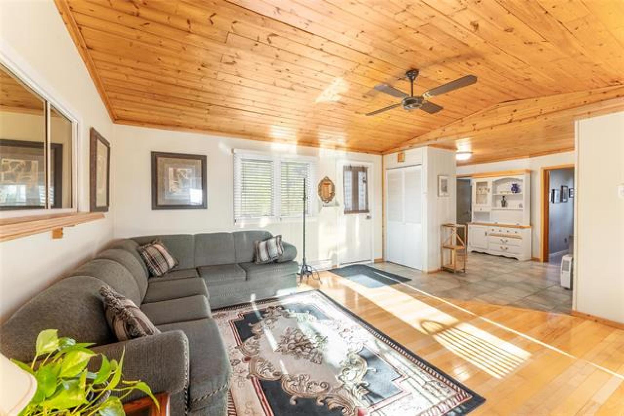 Showings start on Sat. 05/28 OH 05/28 2-4 PM. Year-round lakeview living just steps from the sandy path to Island Beach! This 1428 sq ft 3BR, 2 bath cottage / Home offers rustic charm with modern touches. Enjoy 98 ft of lakeview frontage, a gorgeous 16x14 front deck, and a western-facing sunroom addition (2010/11) for stunning sunsets. Interior features include pine ceilings, IKEA kitchen with plenty of storage, electric stove & microwave, 3 distinct living areas including a cozy family room with WETT-certified wood stove, and a mix of tile, cork & laminate flooring. Primary Bedroom features an in-floor heated 4 pce ensuite and walk-In closet. Updated shingles ('15) mostly triple-pane windows, 200 AMP service, PVC plumbing, and electric baseboard heat throughout. Also includes a clawfoot tub bath, laundry room with stacked washer/dryer, 1650-gal cistern, and infrared heater in crawl space. The 22x22 double garage has a concrete floor & sub-panel. Bonus: Lakeview guest cottage/shed & post-and-pad foundation. Steps to the beach, minutes to Grand Beach, and only 30 mins to Selkirk. Life at Island Beach is calling! extra fridge and freezer Incl. Measures +/- Jogs