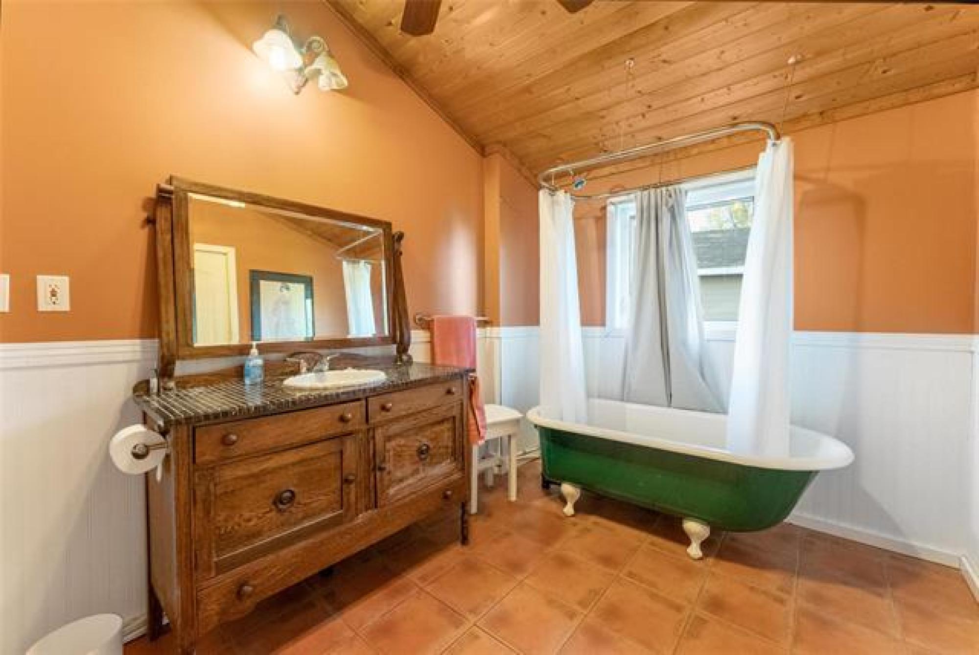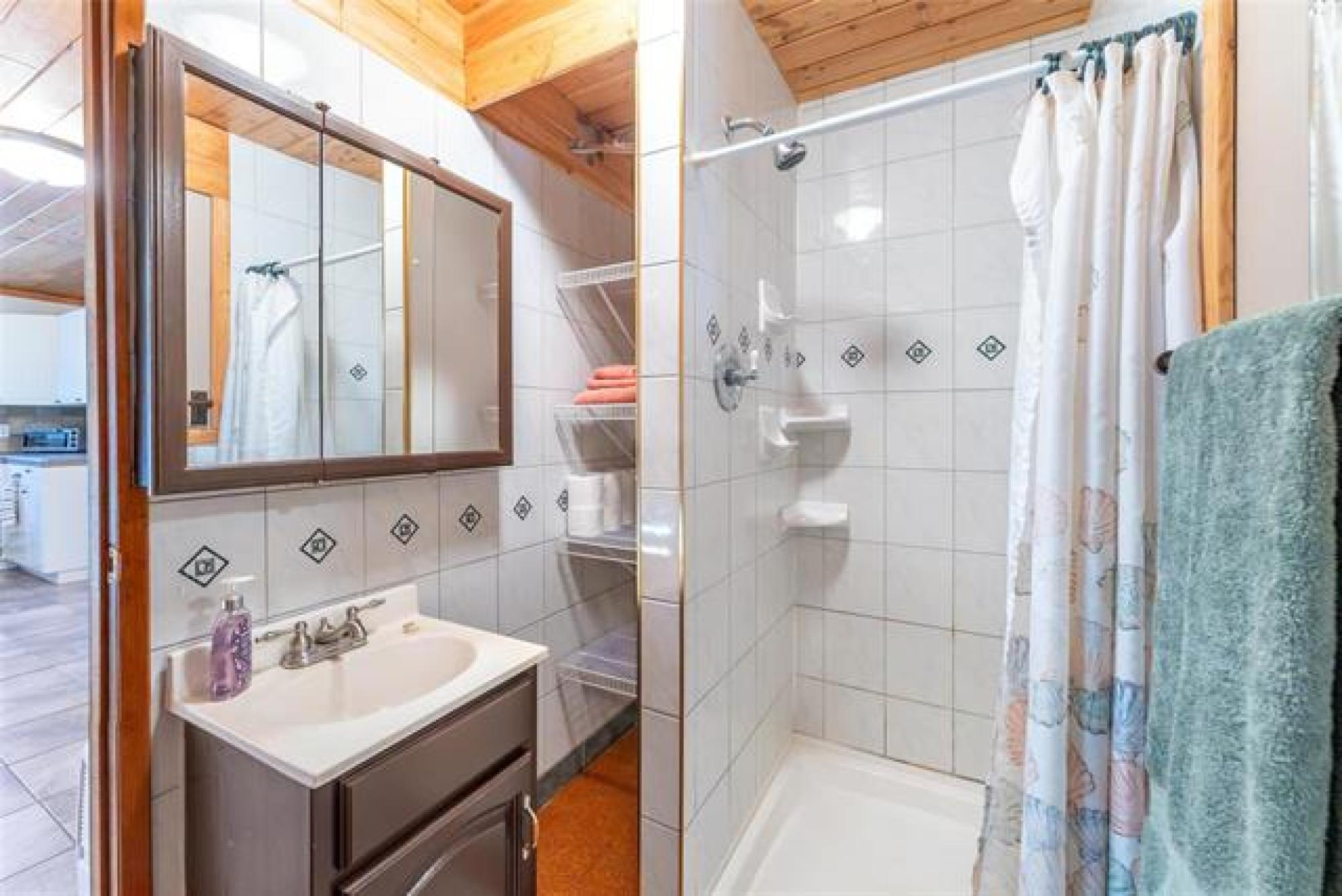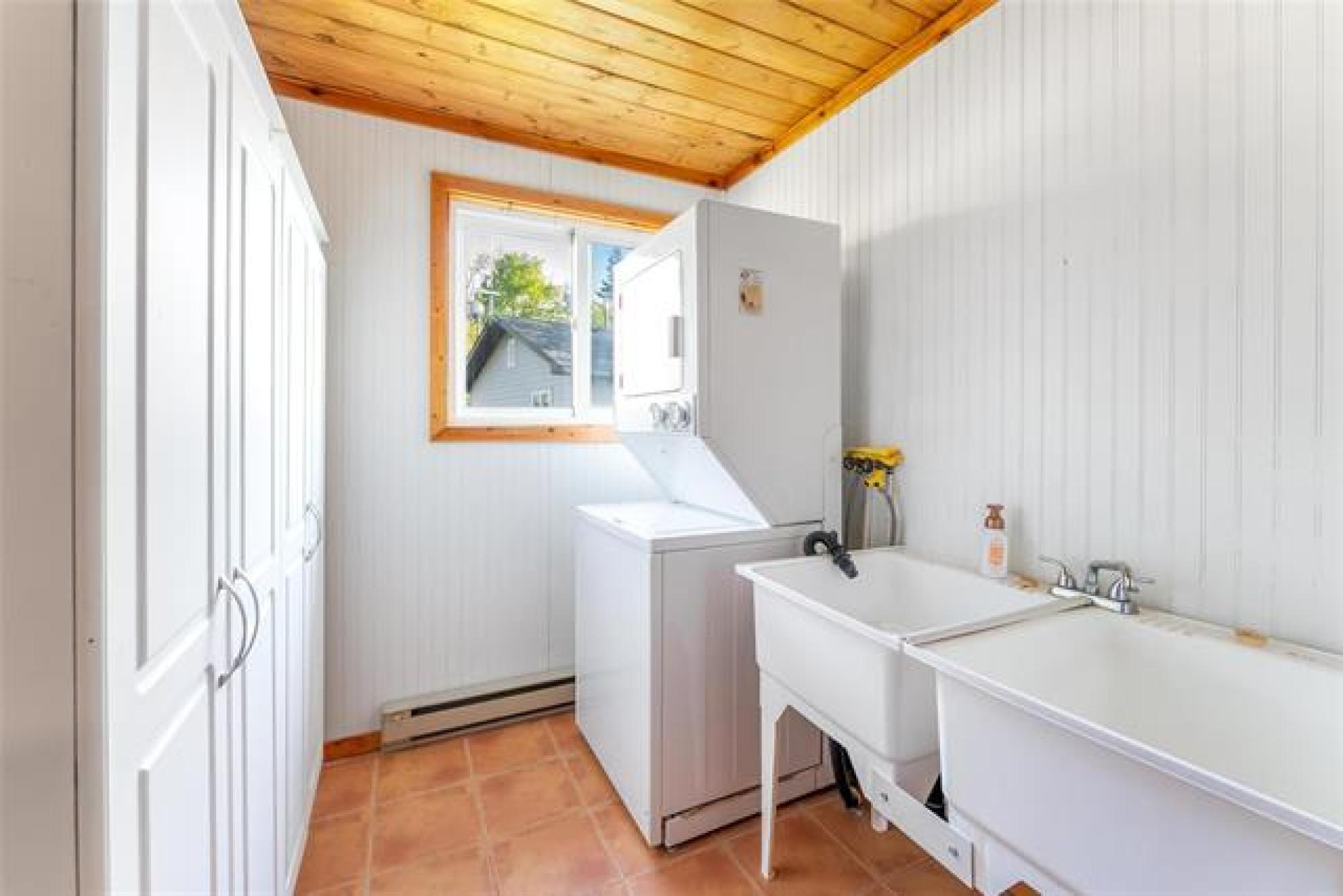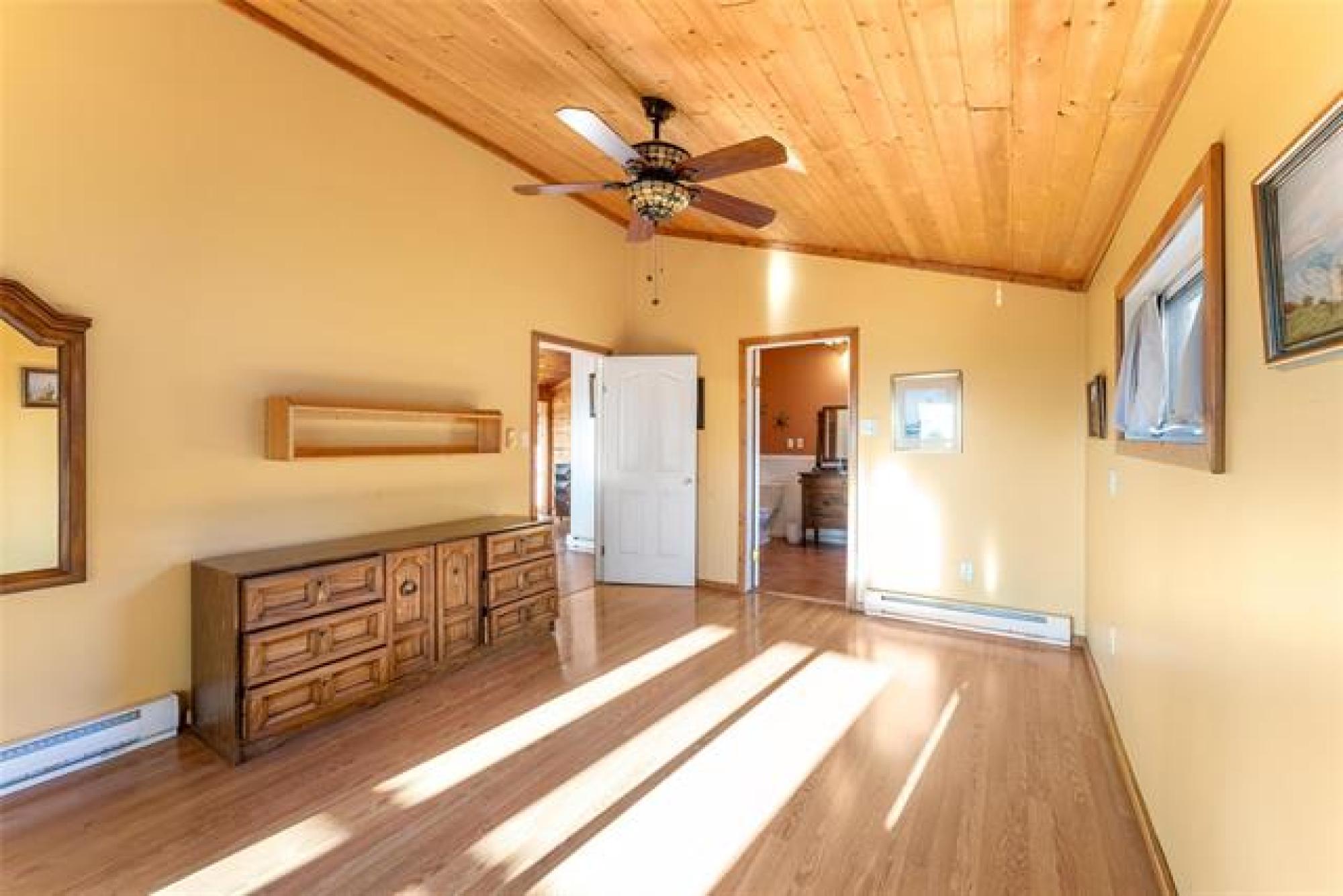 Showings start on Sat. 05/28 OH 05/28 2-4 PM. Year-round lakeview living just steps from the sandy path to Island Beach! This 1428 sq ft 3BR, 2 bath cottage / Home offers rustic charm with modern touches. Enjoy 98 ft of lakeview frontage, a gorgeous 16x14 front deck, and a western-facing sunroom addition (2010/11) for stunning sunsets. Interior features include pine ceilings, IKEA kitchen with plenty of storage, electric stove & microwave, 3 distinct living areas including a cozy family room with WETT-certified wood stove, and a mix of tile, cork & laminate flooring. Primary Bedroom features an in-floor heated 4 pce ensuite and walk-In closet. Updated shingles ('15) mostly triple-pane windows, 200 AMP service, PVC plumbing, and electric baseboard heat throughout. Also includes a clawfoot tub bath, laundry room with stacked washer/dryer, 1650-gal cistern, and infrared heater in crawl space. The 22x22 double garage has a concrete floor & sub-panel. Bonus: Lakeview guest cottage/shed & post-and-pad foundation. Steps to the beach, minutes to Grand Beach, and only 30 mins to Selkirk. Life at Island Beach is calling! extra fridge and freezer Incl. Measures +/- Jogs