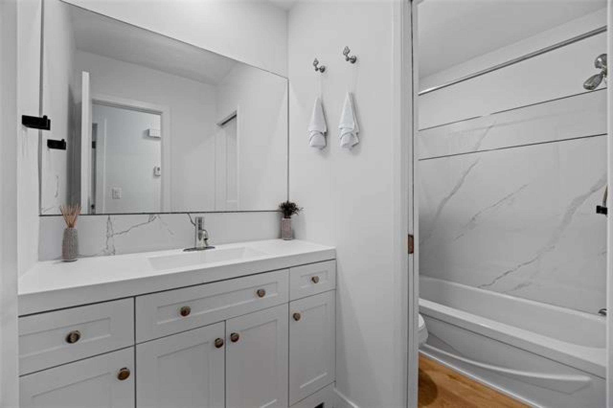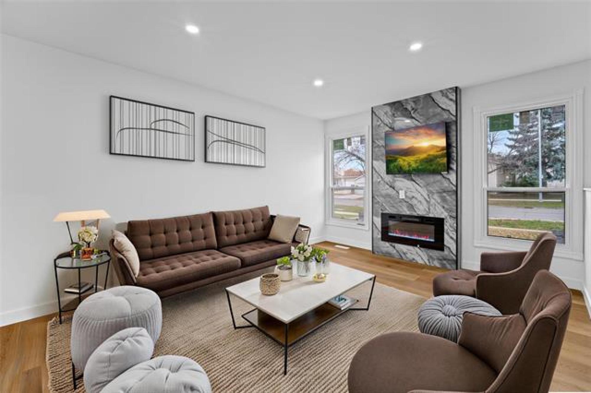SS Now|Offers as Received. Welcome to this STUNNING, MOVE-IN-READY bungalow in St.Norbert that's been fully updated from top to bottom, offering about 1400 sqft of total living space. The main floor offers an open-concept living, dining, and kitchen area with new laminate flooring, pot lighting, and modern fixtures, along with a entertainment wall and electric fireplace (2025). The remodeled kitchen boasts soft-close cabinets, new countertops, dual-bowl sink with pull-down faucet, exhaust hood fan, and dishwasher (2025), while the bathroom has a new vanity, sink, faucet, and shower finishes (2025). Fresh paint, new doors, trims, baseboards & handles complete the main floor (2025). The fully finished lower level includes a spacious rec room, office or study room, with updated modern lighting, carpet, fresh paint (2025), and utility room with a new Barn Door. Additional 2025 updates include BRAND NEW triple-pane windows with 25-year warranty, front door lock, full exterior paint, plumbing, landscaping, professionally cleaned gutters, and hot water tank replaced in 2020. Two storage sheds complete this corner-lot home, CONVENIENTLY LOCATED close to SCHOOLS, TRANSIT, PARKS, and SHOPPING. GREAT BUY!