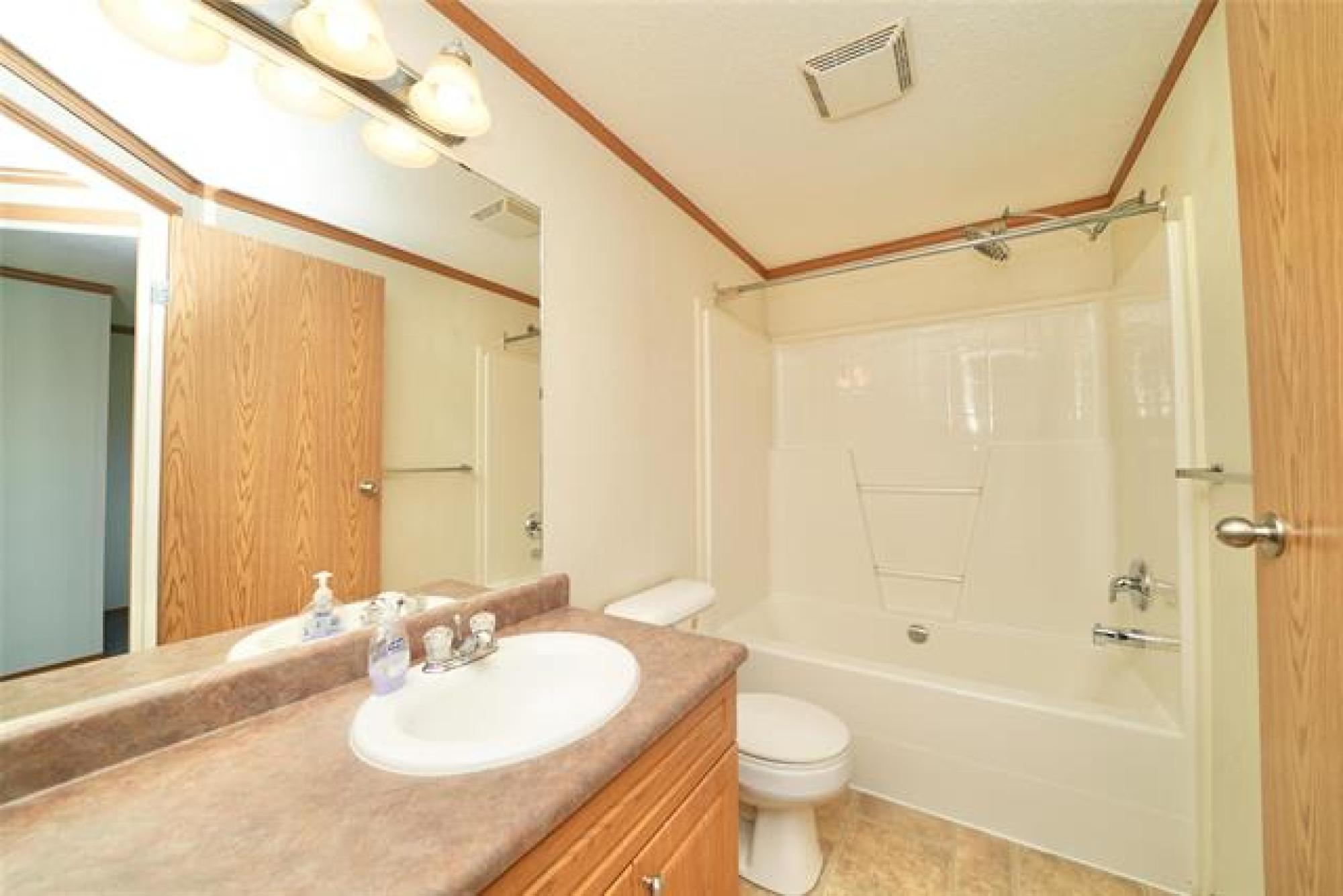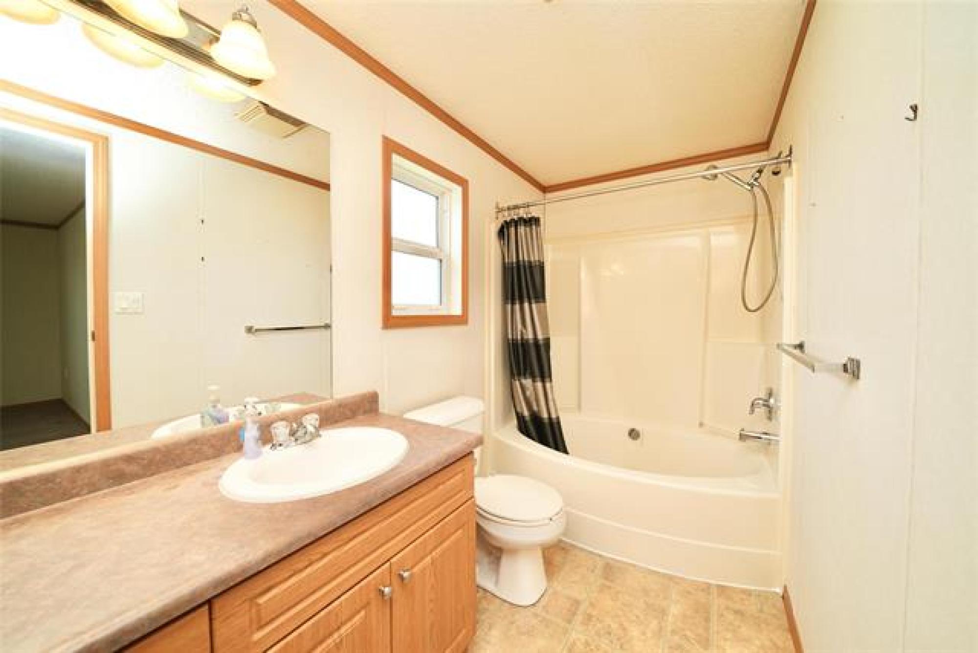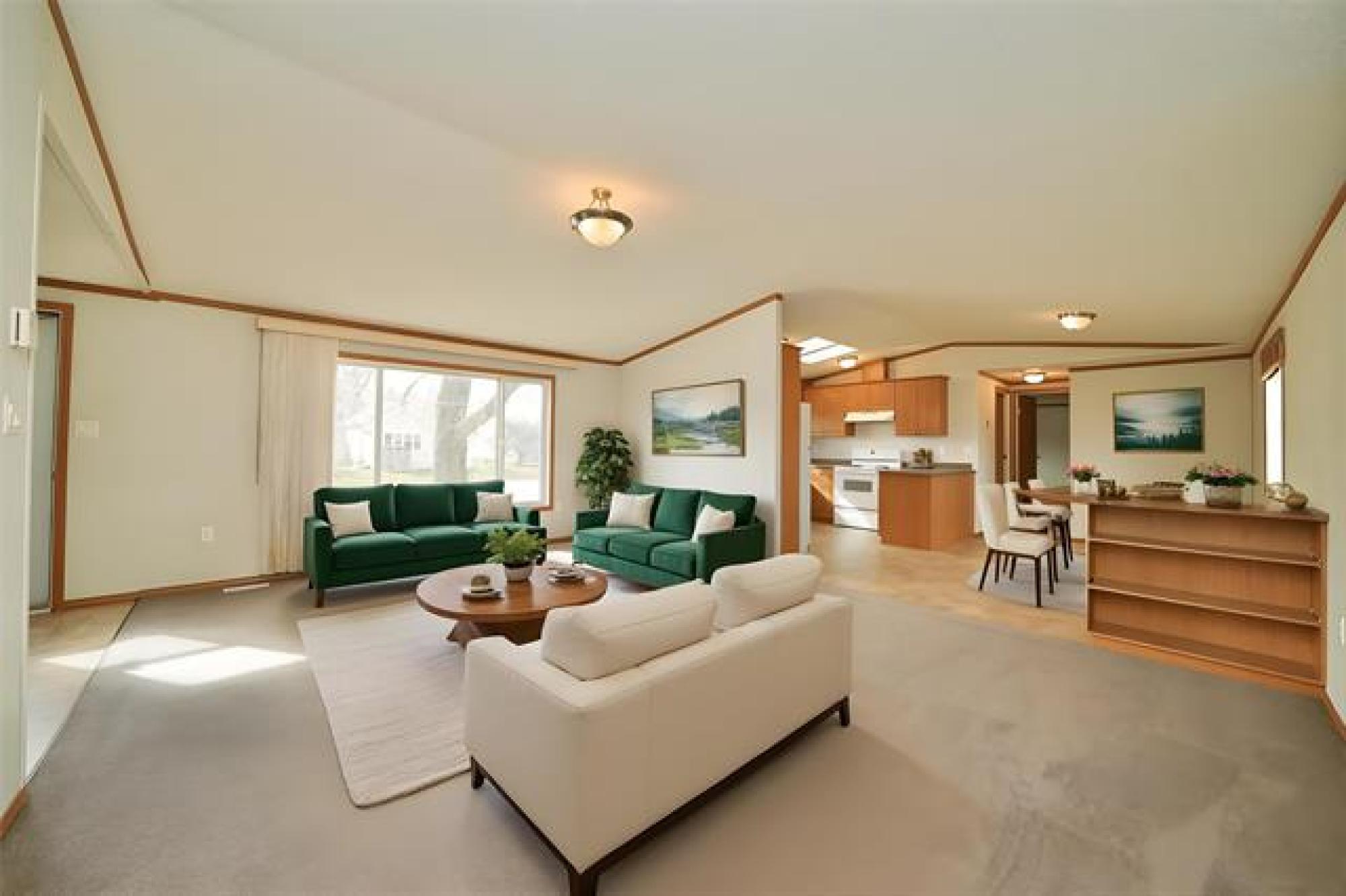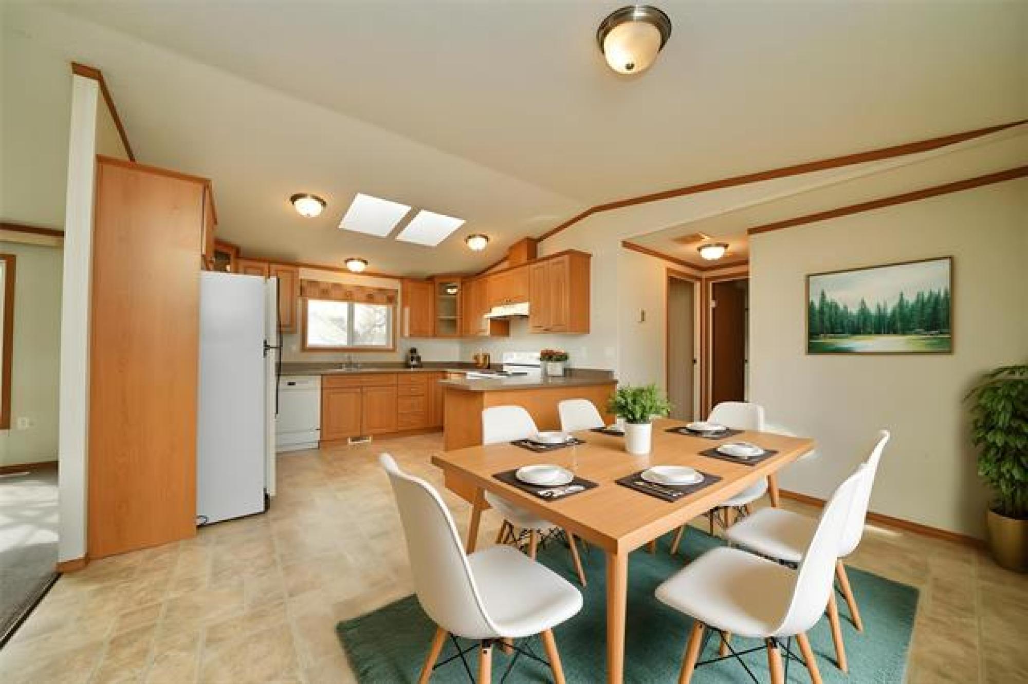 Offers anytime on this 2005 bungalow. 1526 sq/ft 3 bedroom 2 bathroom modular home that offers a sprawling 120x130 yard, Vaulted ceilings to oversized livingroom, dining room, kitchen (w/ skylight), Generous masterbedroom with walkin closet and 4 piece ensuite with royal soaker tub. Utility room with 2nd entrance, laundry, furnace, newer HWT and electrical panel. On the opposite wing you will find 2 additional bedrooms, a second 4 piece bathroom and a large flexroom perfect for a play area, home office or den. Yard offers large garden, fruit bushes and trees and wide open green spaces. Insulated crawlspace. Building is on concrete piles with hurricane straps. Connected to municipal water and low pressure sewer system. Brunkild offers a beautiful community owned park and rec centre, paved roads, sidewalks, a post office/MLCC and corner store only 16mins from the south perimeter. Call your realtor to book your viewing today. This property wont last long!