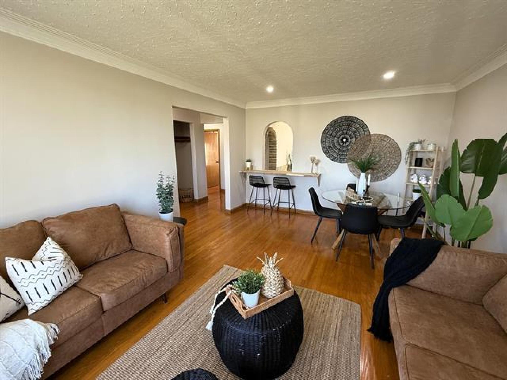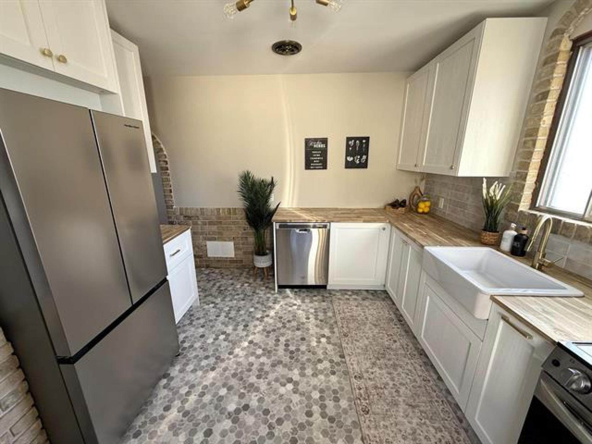 Better look at me! This 3 plus bedroom, 2 bathroom home is sure to impress! Enter the bright and spacious living room and dining room combo with hardwood floors, cove ceilings, pot lighting, sit-up coffee bar open to fully remodeled kitchen. Newer stainless steel appliances, tile back-splash, brick accents, hood fan and more! Primary bedroom with walk-in closet, fully remodeled main floor bath. Finished lower level with rec-room, office/den, laundry and storage rooms, fully remodeled 3pc bath, carpet 2025. Fenced yard with paved parking and/or patio, detached garage with opener. C/air, hi-eff furnace, mostly PVC windows, tastefully upgraded and remodeled with designer decor throughout, 6 appliances included, this one shines!