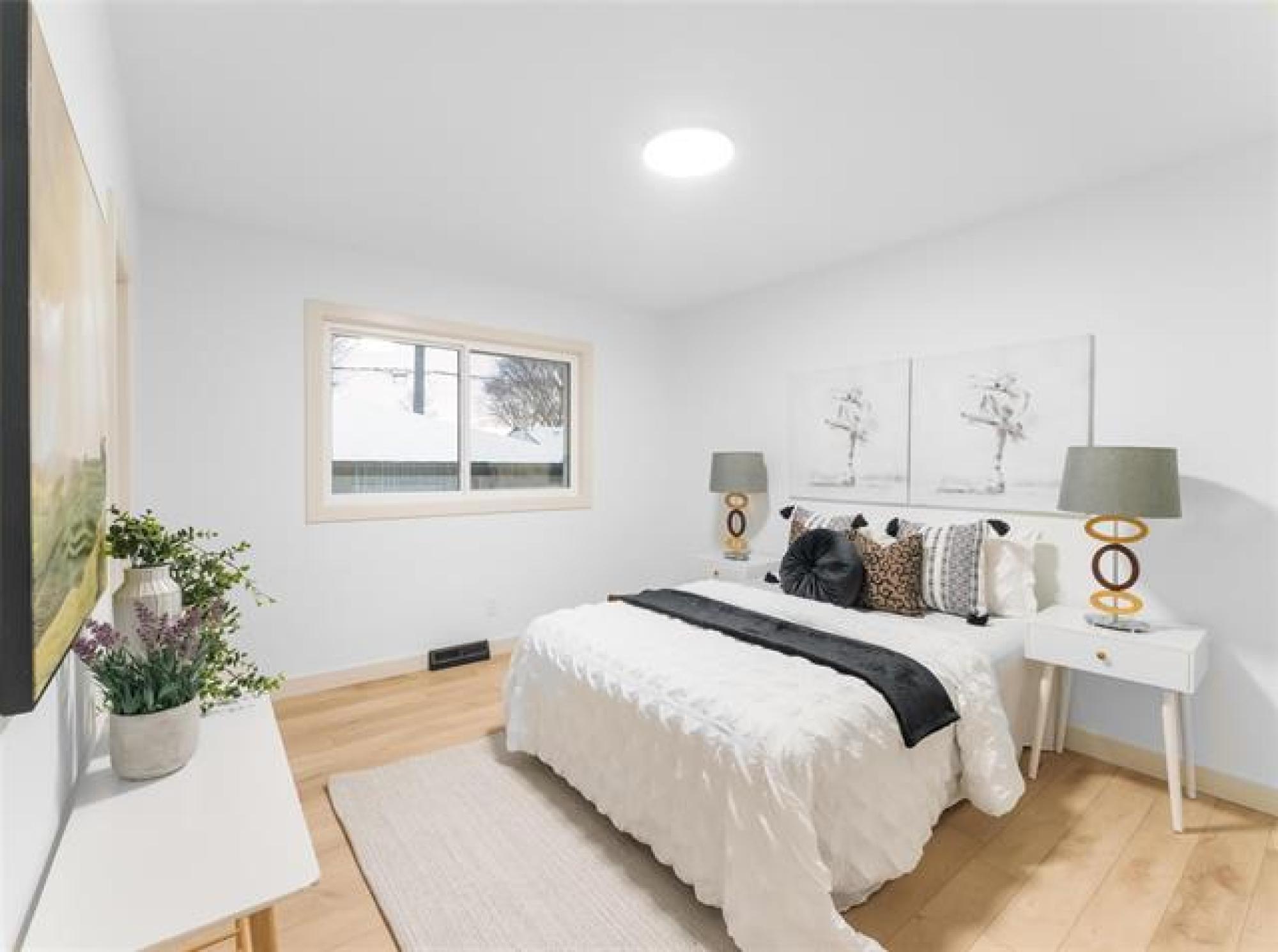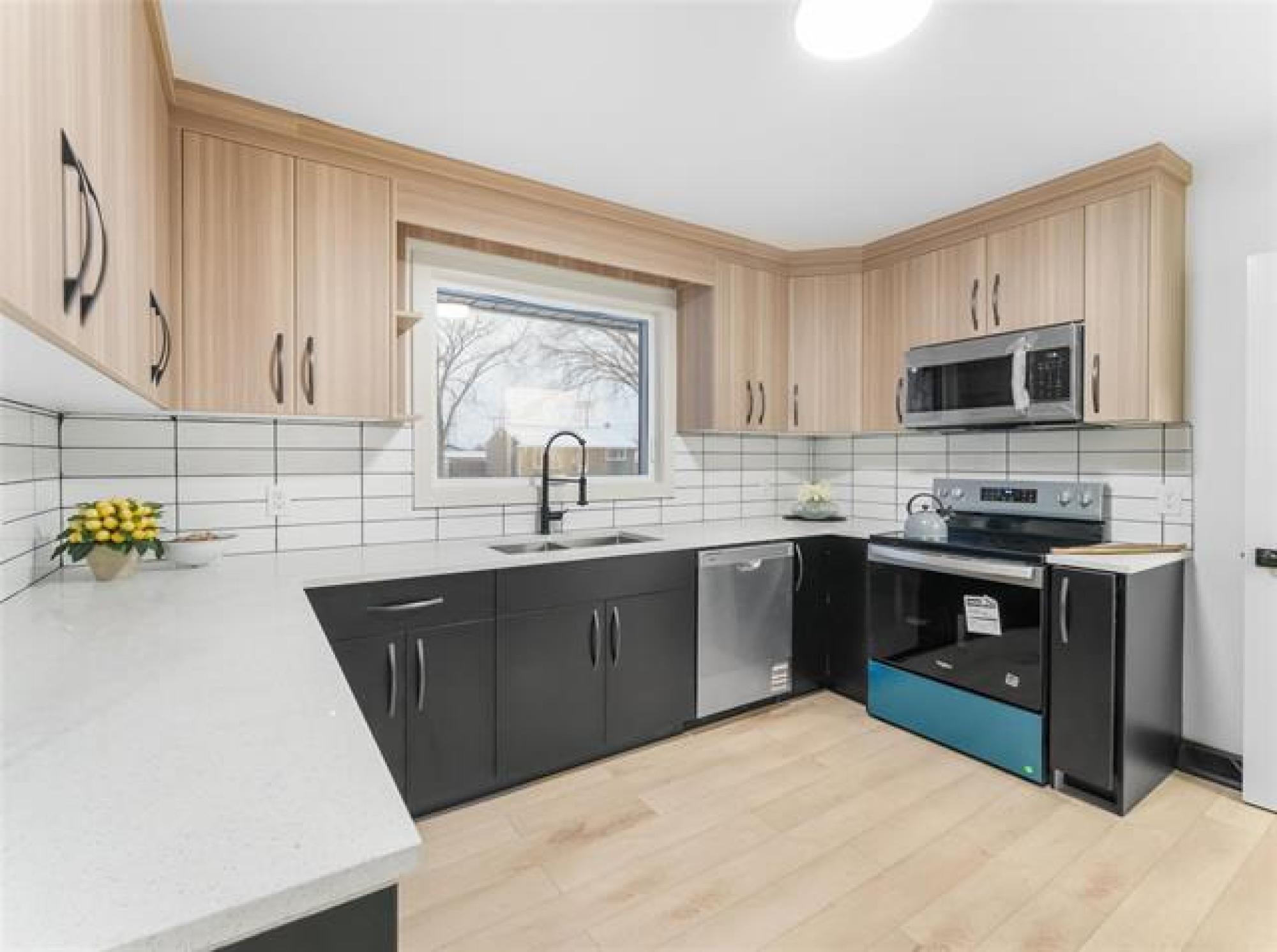 SS Now, Offers as Received. Open House Sat & Sun Dec 20 & 21, 2 pm - 4 pm. Welcome to this tastefully renovated bungalow in heart of MYNARSKI. This 1075 sq ft bungalow comes with three bedrooms, two full bathrooms, fully finished basement. Main front door welcomes to spacious living area with a dining area in one corner, Fully remodeled kitchen, a huge primary bedroom and two more spacious bedrooms and a fully remodeled tiled bathroom. Side entrance leads to the fully finished remodeled basement with a spacious den, huge rec room and a three piece bathroom with tiled shower and a kitchenette/wet bar area. Fully fenced with a single garage at the back. House is completely remodeled with updated exterior, Brand new Windows(2025), New Shingles, new soffit fascia(2025), All new appliances (2025), Fully remodeled Dual Tone kitchen with quartz countertops and tiled backsplash(2025) Fully remodeled both bathrooms with tiled showers & Tiled flooring(2025), New LVP flooring through out the house(2025), All plumbing fixtures(2025), All lightning fixtures(2025). Public transportation, public park and all level of schools are nearby.