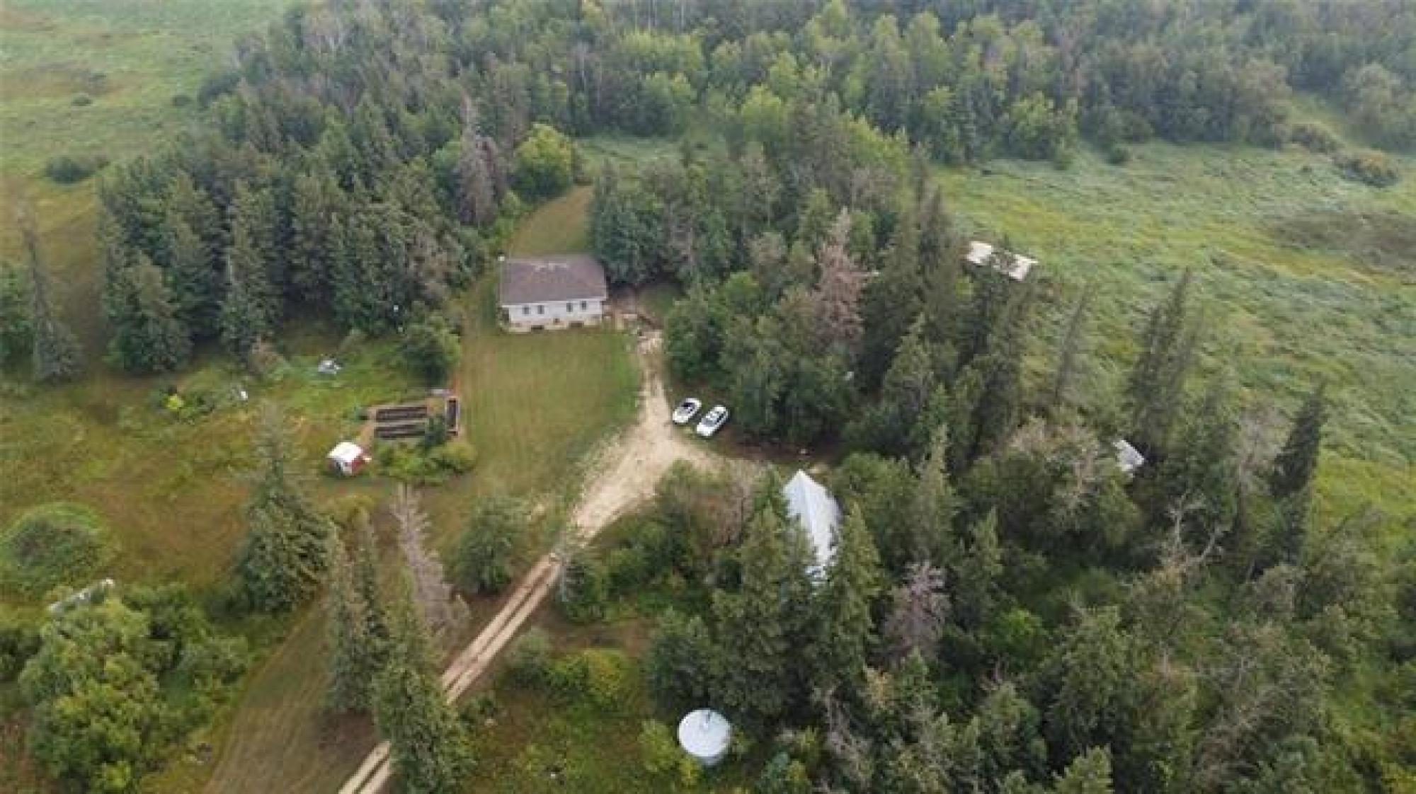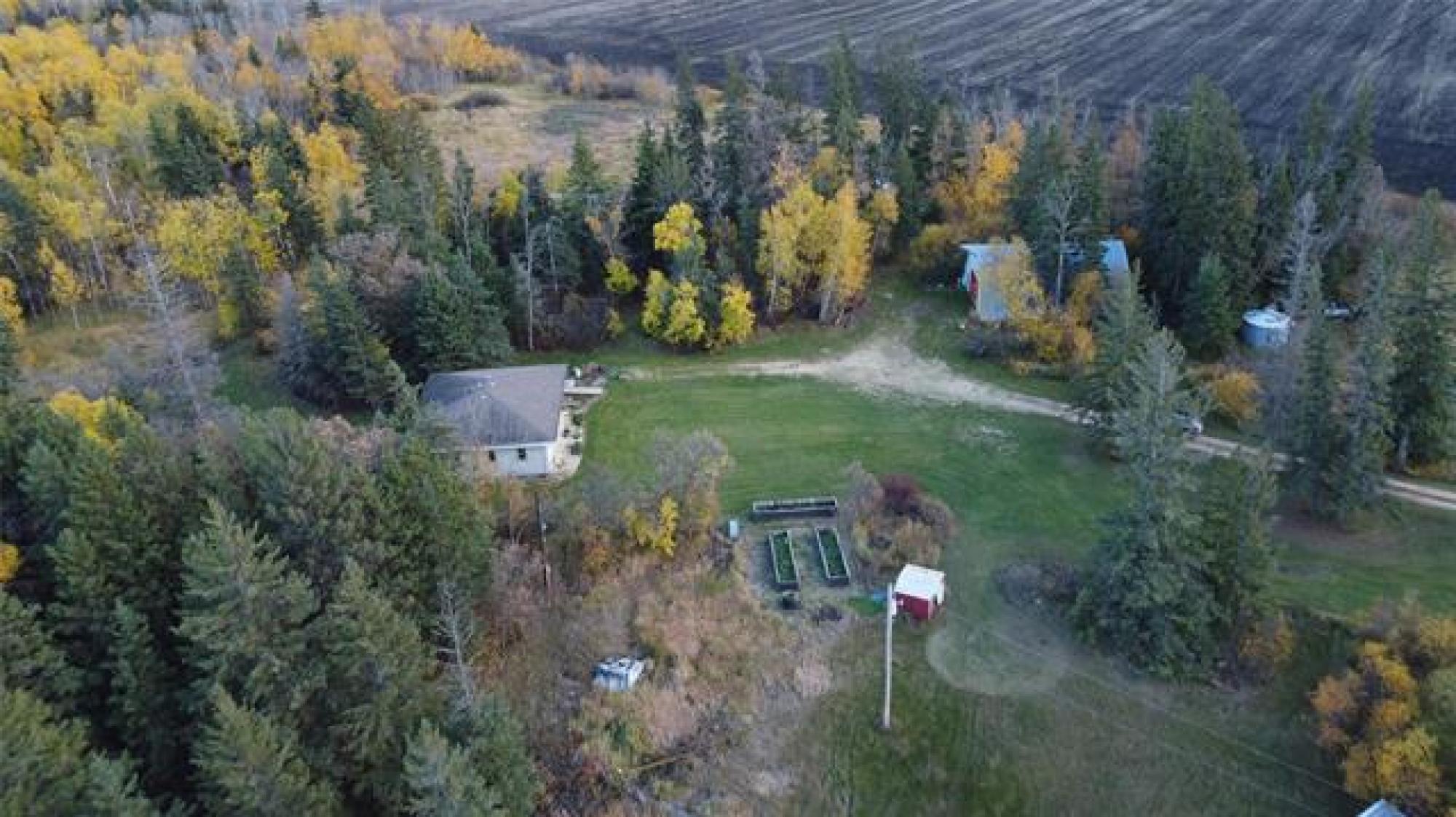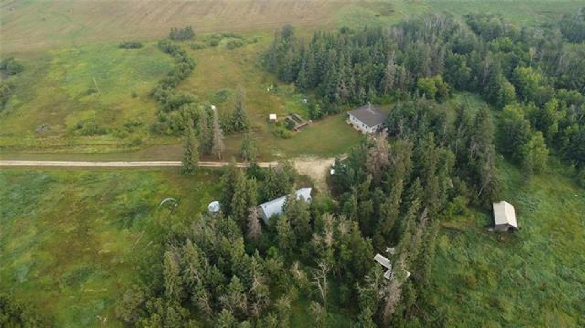 Country life awaits.. A great location to settle down on acreage and start a hobby farm or possibilities of living at the home and renting the land. 1435 sq.ft. large spacious 3 bed 1 bath bungalow - Making your way into the home you have a large open kitchen / dining area (10' x 26' to paint a picture of the size) you can have family gatherings or dinner with a large table and not feel congested - garden doors lead you out to the outdoor patio. The home has been refreshed with laminate flooring in the main living areas. There is a spacious 4 piece bath as well as large laundry room with an abundance of storage. On your 156.35 acres of land there is a 47x31 shop - 220v wiring with a back mezzanine level (wood stove in lower area). A large barn area as well as chicken coop and other storage buildings on the property. THE GARDEN - 3 large raised planters which will produce amazing vegetables and easy to maintain. The remaining land - there is bush as well as approximately 35 acres of hayland that is currently being cut. There is some existing fencing (condition unknown), 2 dugouts, as well as treed land. Measurements +/- jogs. Information deemed accurate but should be independently verified.