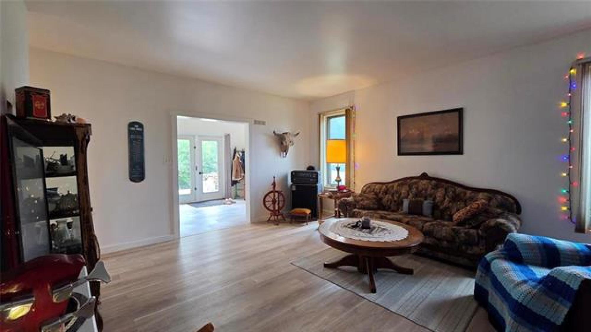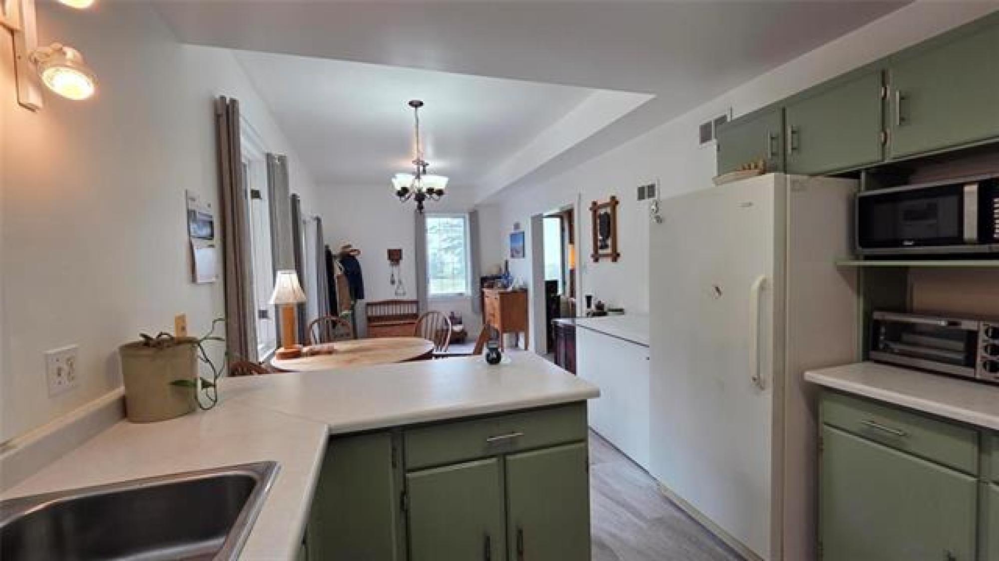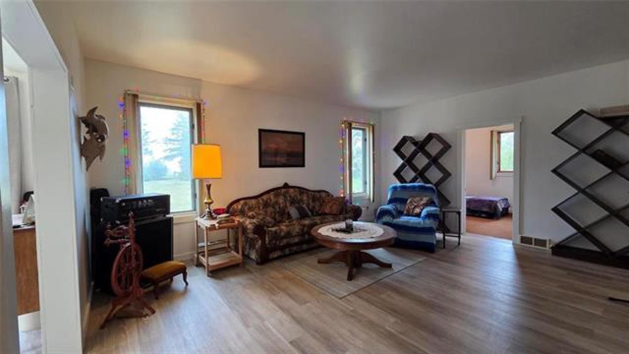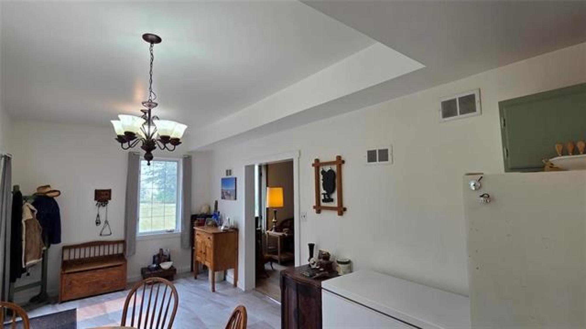 Country life awaits.. A great location to settle down on acreage and start a hobby farm or possibilities of living at the home and renting the land. 1435 sq.ft. large spacious 3 bed 1 bath bungalow - Making your way into the home you have a large open kitchen / dining area (10' x 26' to paint a picture of the size) you can have family gatherings or dinner with a large table and not feel congested - garden doors lead you out to the outdoor patio. The home has been refreshed with laminate flooring in the main living areas. There is a spacious 4 piece bath as well as large laundry room with an abundance of storage. On your 156.35 acres of land there is a 47x31 shop - 220v wiring with a back mezzanine level (wood stove in lower area). A large barn area as well as chicken coop and other storage buildings on the property. THE GARDEN - 3 large raised planters which will produce amazing vegetables and easy to maintain. The remaining land - there is bush as well as approximately 35 acres of hayland that is currently being cut. There is some existing fencing (condition unknown), 2 dugouts, as well as treed land. Measurements +/- jogs. Information deemed accurate but should be independently verified.
