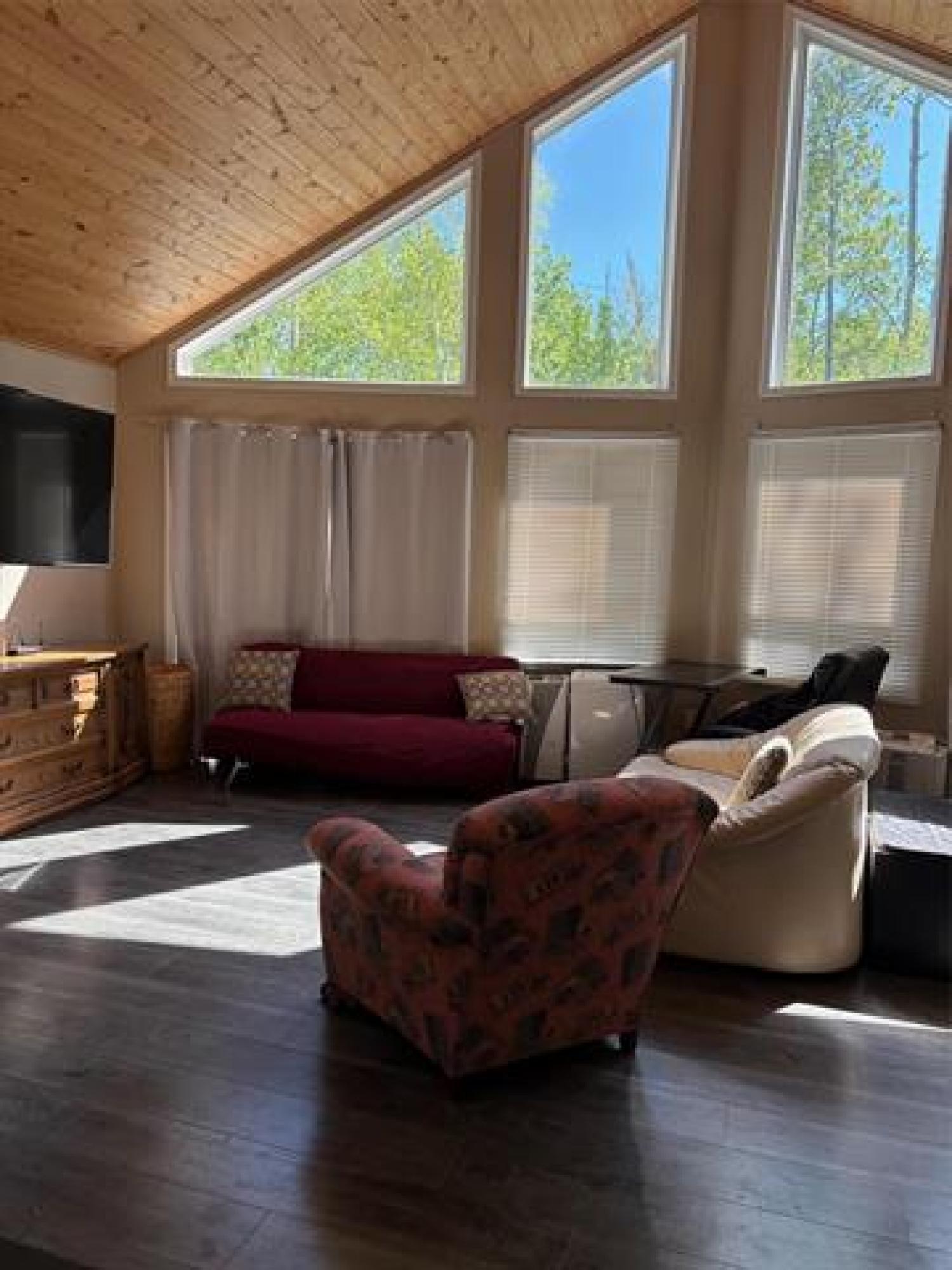 Welcome to your four season getaway in charming Grindstone Provincial Park on Lake Winnipeg. Tucked among mature trees, this inviting cottage features three cozy bedrooms, a full bath, and a tranquil sunroom. The airy living area boasts soaring ceilings and walls of windows, bringing the outdoors in. Located on leased land—an ideal retreat for nature lovers and outdoor adventurers alike!