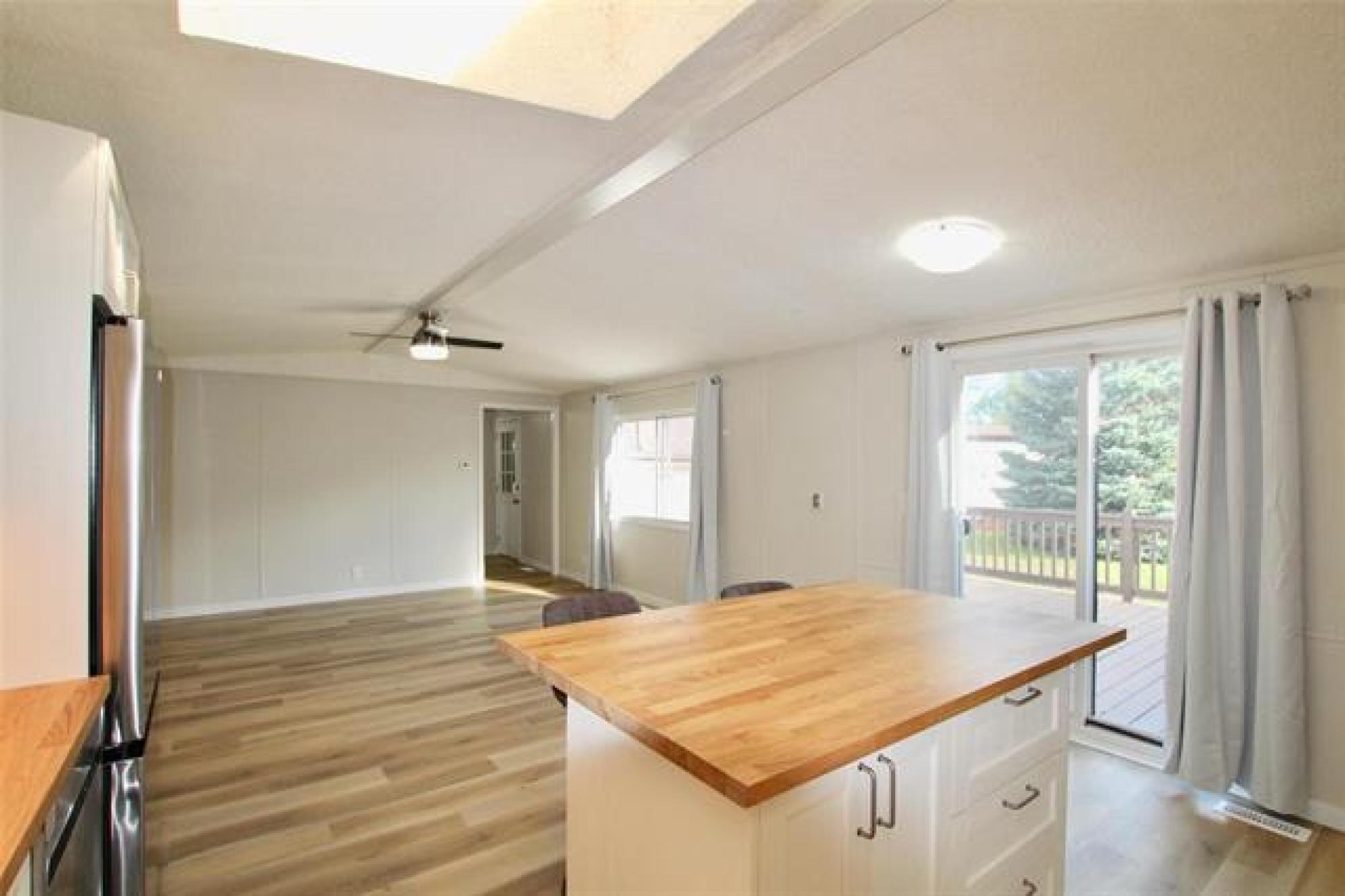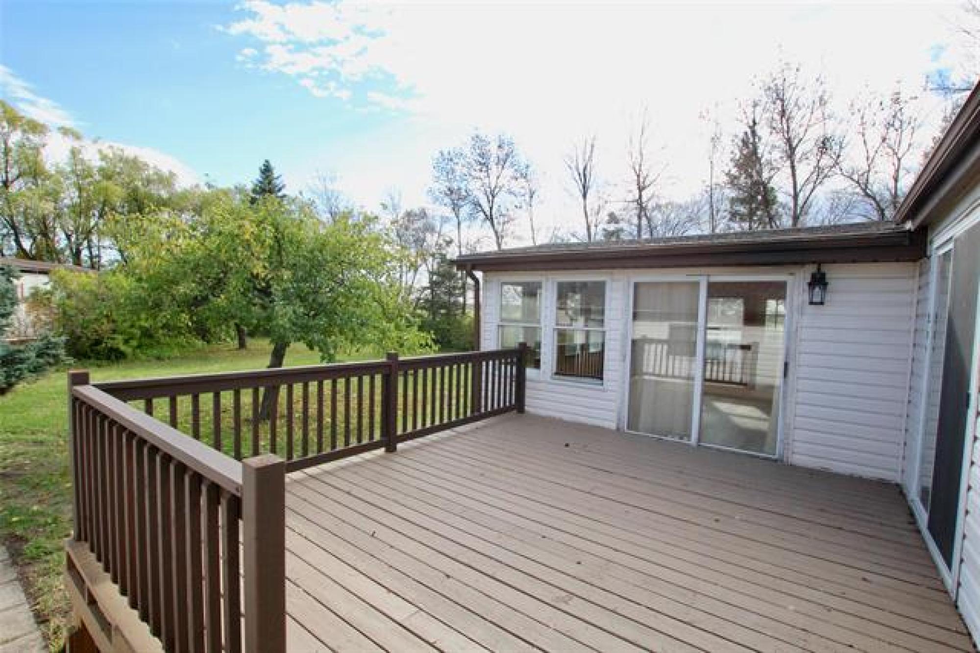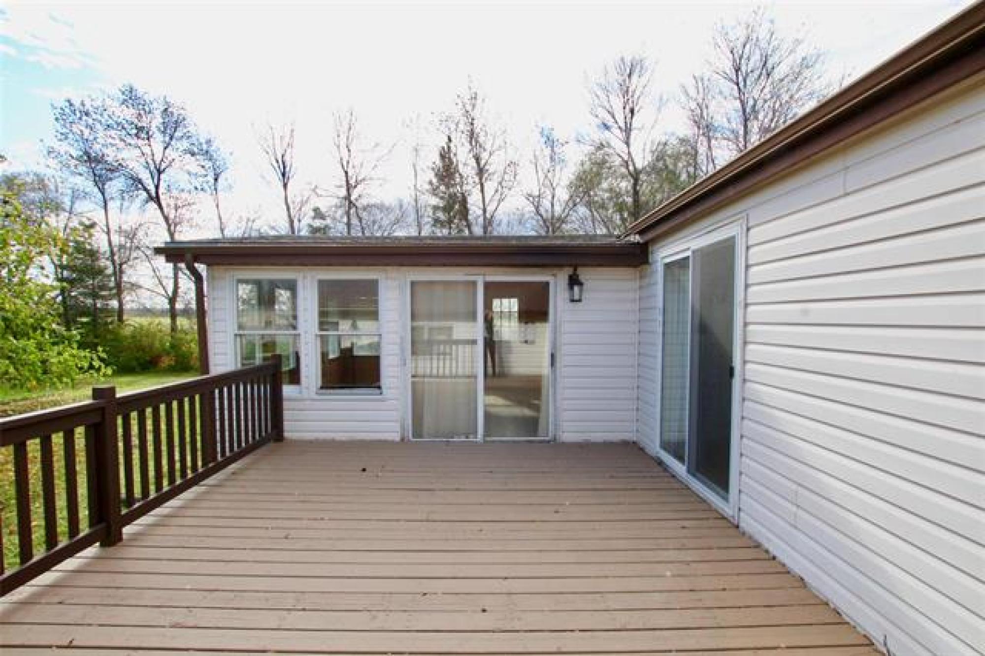 Move-in ready and beautifully updated! This 3 bedroom, 2 bathroom home has been tastefully renovated throughout, featuring new flooring and fresh paint. You’ll love the brand new white, classic-style kitchen complete with butcher block countertops, tiled backsplash, a large island, and stainless steel appliances. The spacious great room offers plenty of natural light with patio doors leading to a large deck, plus access to a massive three-season sunroom — perfect for relaxing or entertaining. Both bathrooms have been updated, adding to the home’s modern appeal. Enjoy the convenience of an oversized single attached garage that’s insulated, heated, and connected by a breezeway. All set on a massive yard with a storage shed included — plenty of space for kids, pets, and outdoor hobbies! Lot fee is $533 a month which includes sewer, water, garabage and snow removal.