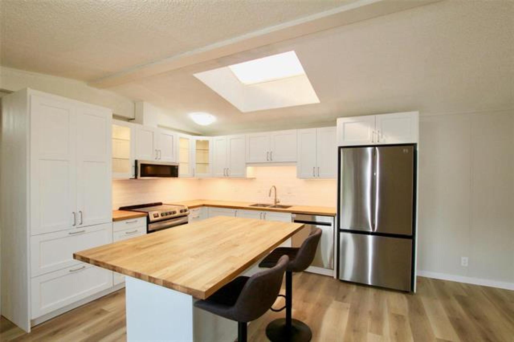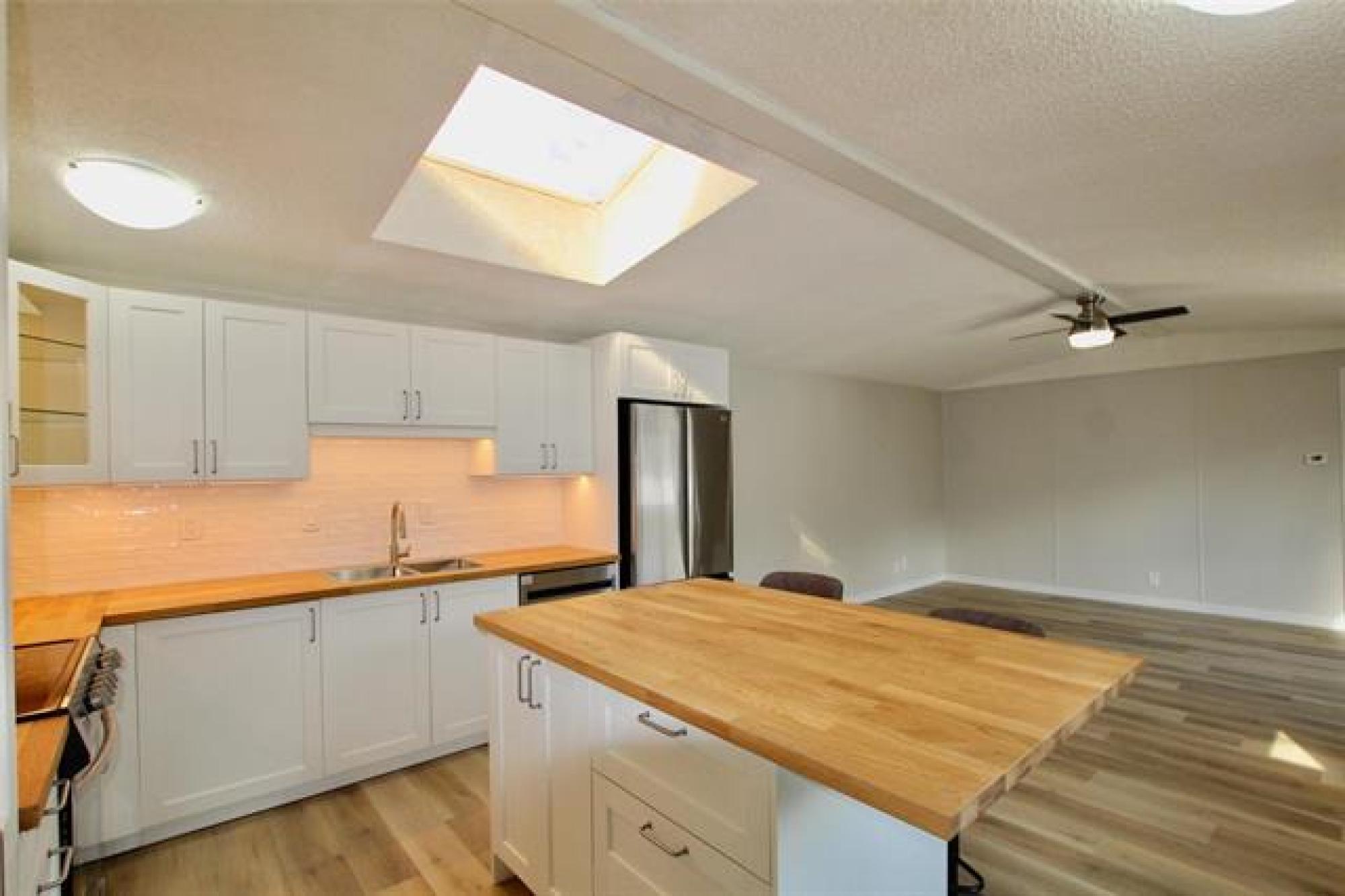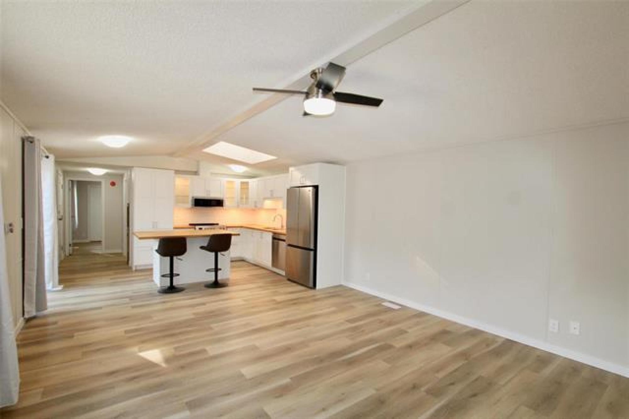 Move-in ready and beautifully updated! This 3 bedroom, 2 bathroom home has been tastefully renovated throughout, featuring new flooring and fresh paint. You’ll love the brand new white, classic-style kitchen complete with butcher block countertops, tiled backsplash, a large island, and stainless steel appliances. The spacious great room offers plenty of natural light with patio doors leading to a large deck, plus access to a massive three-season sunroom — perfect for relaxing or entertaining. Both bathrooms have been updated, adding to the home’s modern appeal. Enjoy the convenience of an oversized single attached garage that’s insulated, heated, and connected by a breezeway. All set on a massive yard with a storage shed included — plenty of space for kids, pets, and outdoor hobbies! Lot fee is $533 a month which includes sewer, water, garabage and snow removal.