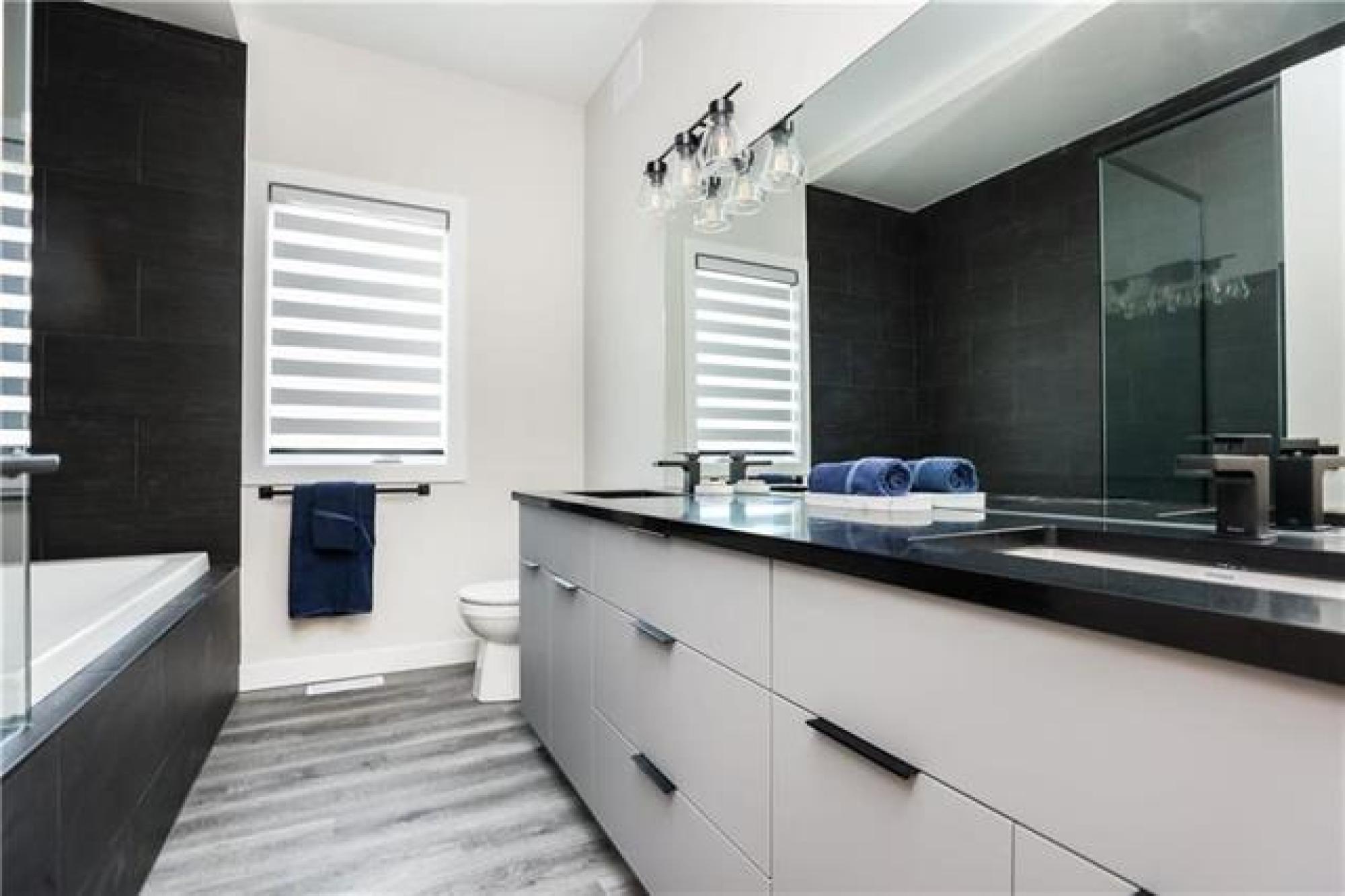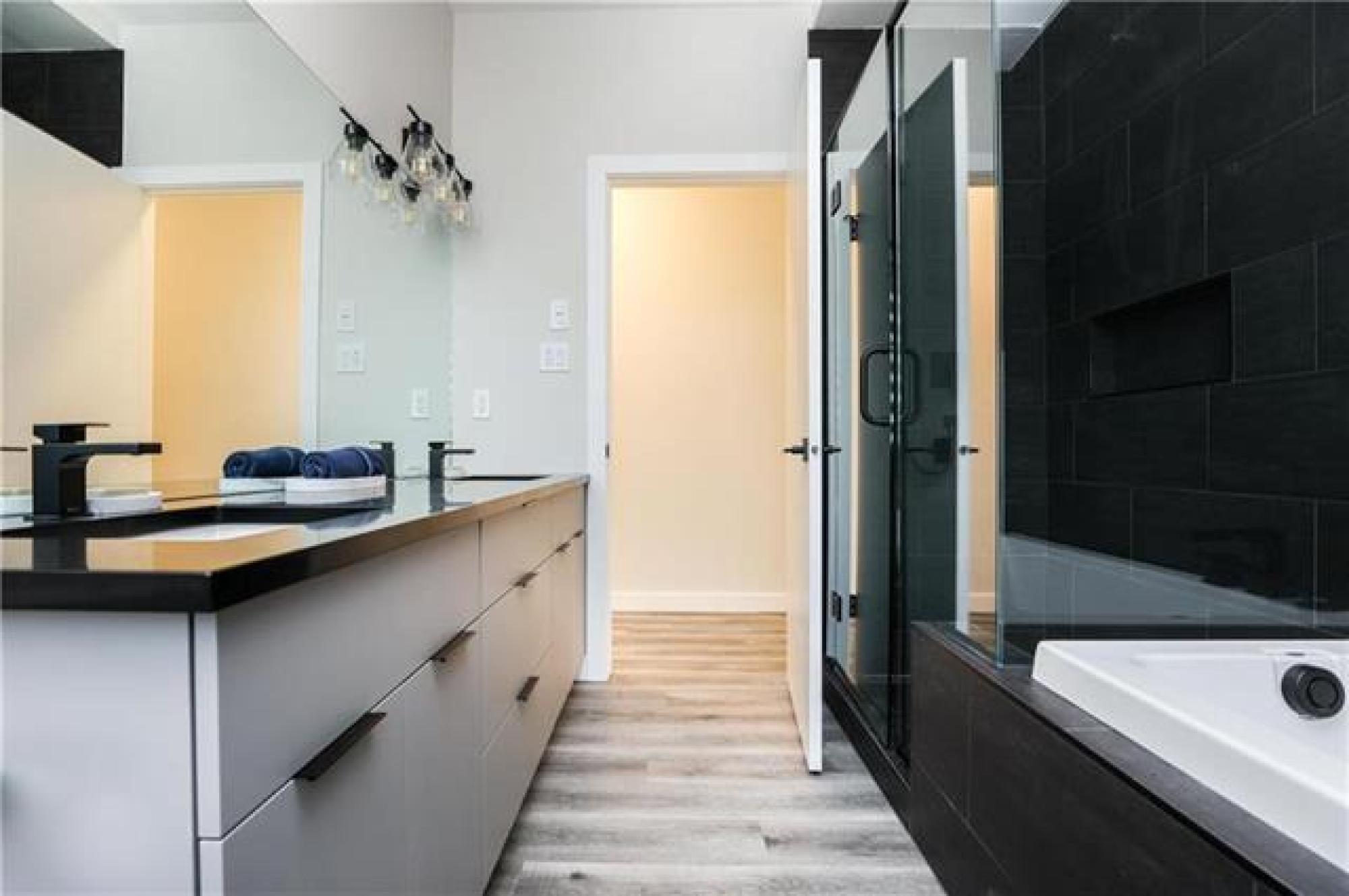 Welcome to this stunning Signature Homes show home in St. Adolphe! This Capilano Model bungalow features 9 ft ceilings on both the main floor and basement, SPC flooring (except bedrooms 2 & 3), and triple pane windows. The open concept layout includes a kitchen with quartz countertops, upgraded 40.5” soft close cabinets, under cabinet LED lighting, and stainless steel appliances, plus a washer and dryer. The bathrooms and dry bar also feature quartz countertops with upgraded black plumbing fixtures. The primary bedroom offers a walk-in closet and a luxurious en-suite with a tiled tub, tiled shower with a glass door, and premium finishes. Two additional bedrooms are spacious and bright. Additional features include black stair railings, pot lights, LED lighting, and finished front landscaping. AAA condition with numerous upgrades—book your private showing today!