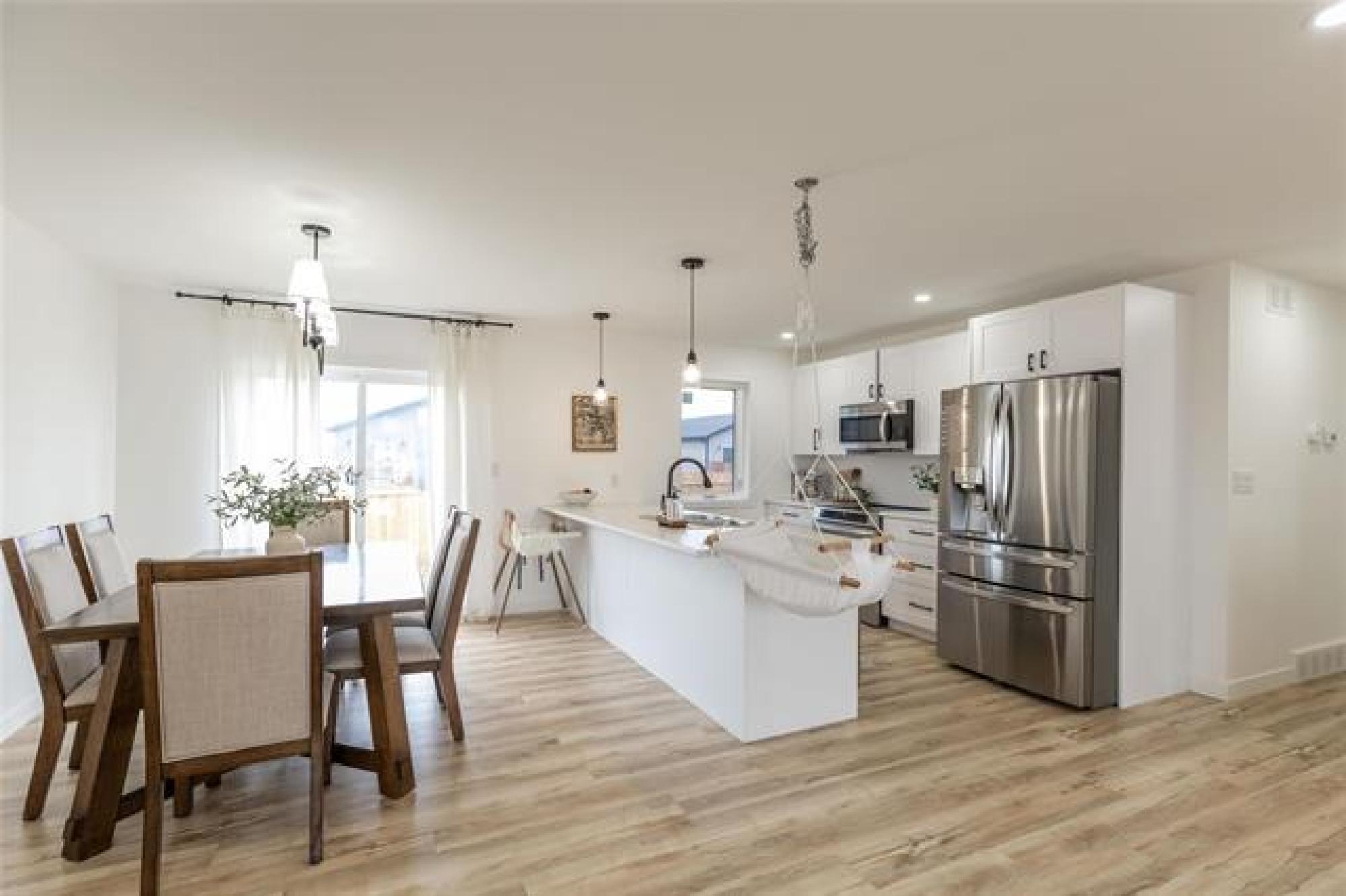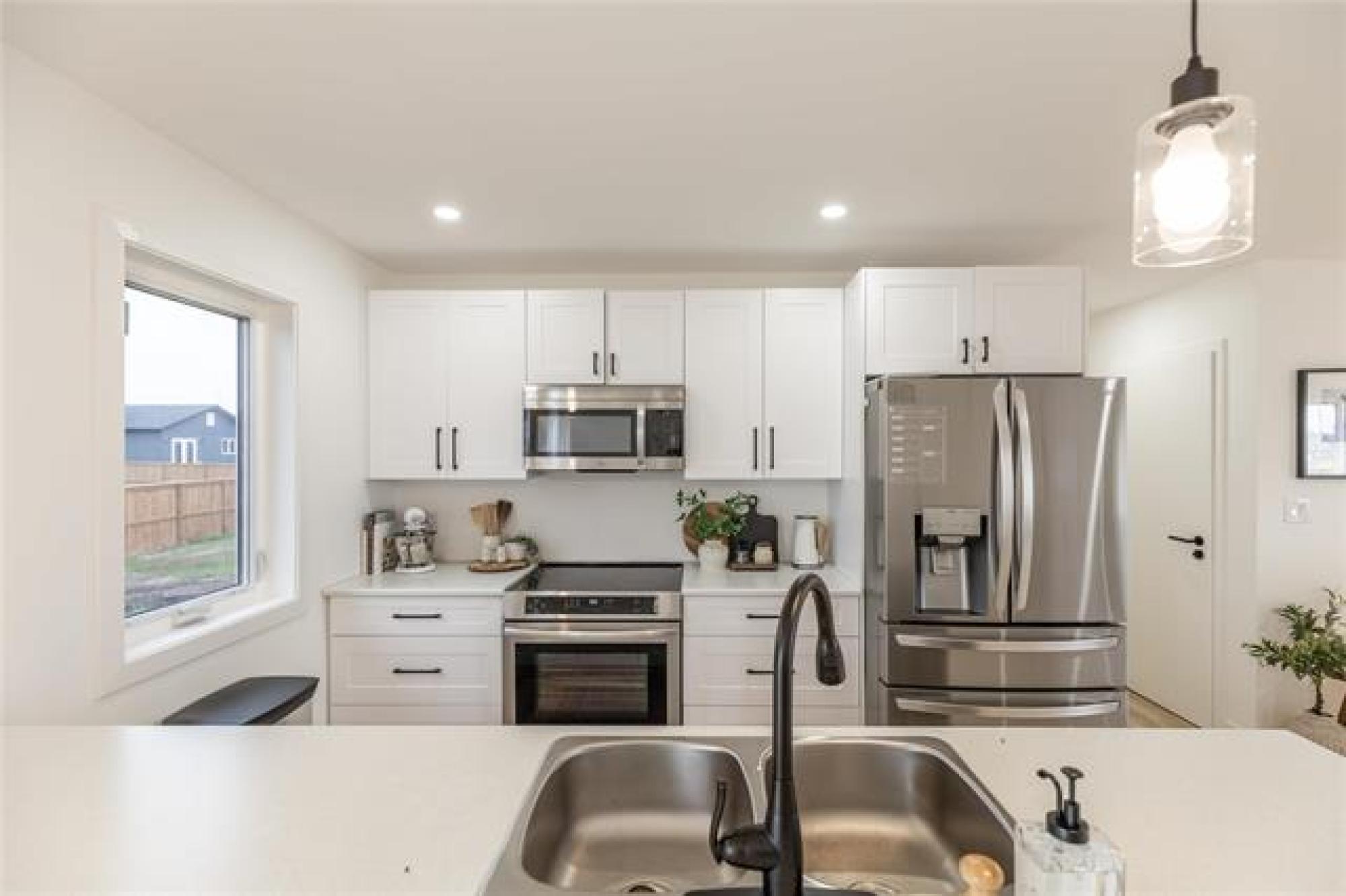 Charming & bright 2025-built home in the welcoming community of Ste Anne, offering 1,120 SF of thoughtfully designed living space. From the moment you arrive, you’ll be greeted by a beautifully landscaped front yard that adds to the home’s curb appeal. Step inside to be greeted by a light-filled living room that radiates warmth and comfort, making it the perfect spot to gather with family or entertain guests. The dining area features a garden door leading to your backyard, inviting you to enjoy summer BBQs or watch the kids play. The modern white shaker-style kitchen is both stylish and functional, boasting a convenient peninsula with seating. You’ll love the pristine stainless steel appliances that perfectly complement the crisp, clean cabinetry. The spacious primary bedroom offers a peaceful retreat, complete with a walk-in closet and a walk-through 5 pc bathroom. Two additional bedrooms on the main level provide space for family, guests or a home office. Downstairs, the full basement is ready for your personal finishing touch—create a rec room, home gym, or whatever suits your lifestyle. This home combines modern comfort with small-town charm, making it the perfect place to start your next chapter.