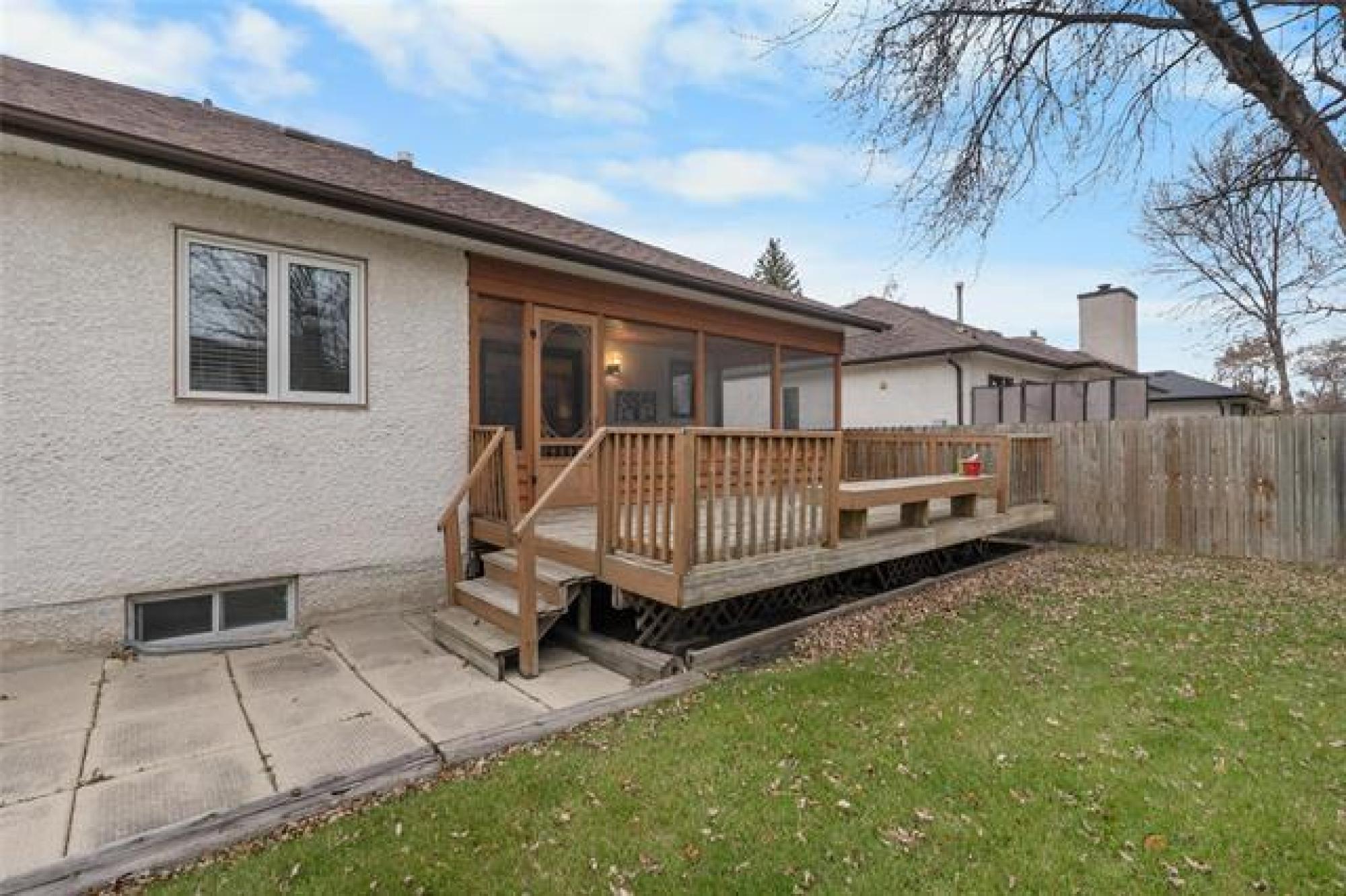 Showings start Nov 19, Open House Fri 4:00-5:00, Sat, Nov 22, 2-4, Sun Nov 23, 1-3 pm. Offers Nov 25. Beautifully maintained 1,393 sq. ft. bungalow offering a bright, open-concept living and dining room featuring a cozy gas fireplace and a French door leading to the spacious eat-in kitchen. From here, step into the inviting 3-season sunroom overlooking the large fenced backyard with deck—perfect for relaxing or entertaining. This home includes 3 bedrooms, with a generous primary suite featuring an updated 3-piece ensuite and walk-in closet. Enjoy updated windows, no stippled ceilings, and well-kept carpeting throughout. The fully finished basement offers a huge rec room, 3-piece bathroom, 2 extra rooms for office or hobby use, and 200-amp electrical service. A double attached garage with double doors, newer washer and dryer, and a wide 60x148 ft lot complete this wonderful property—offering space, comfort, and great value. Quick poss available. Close to Bunn’s Creek path.
