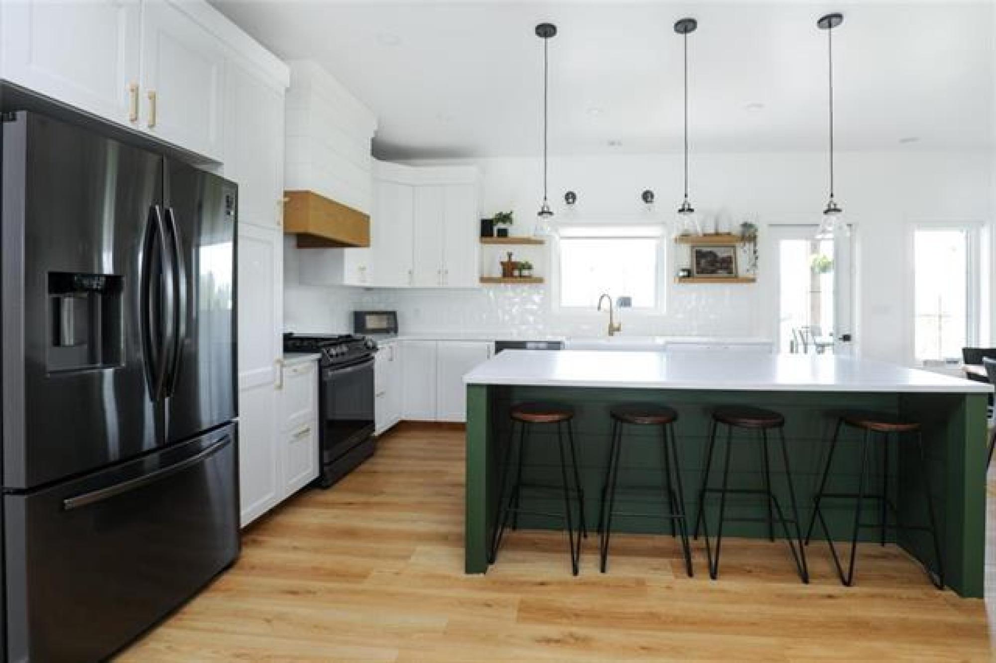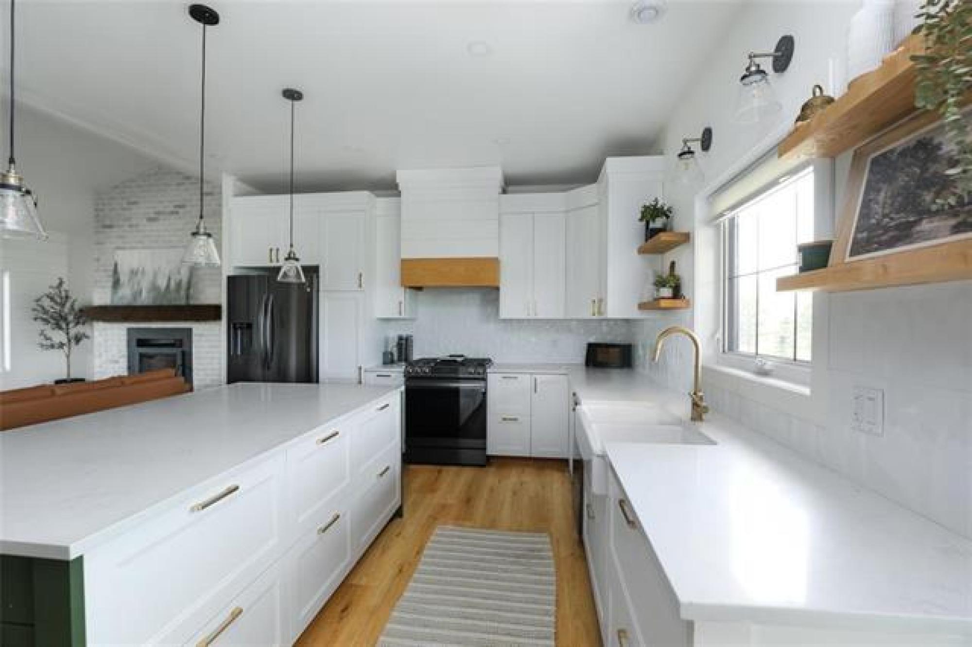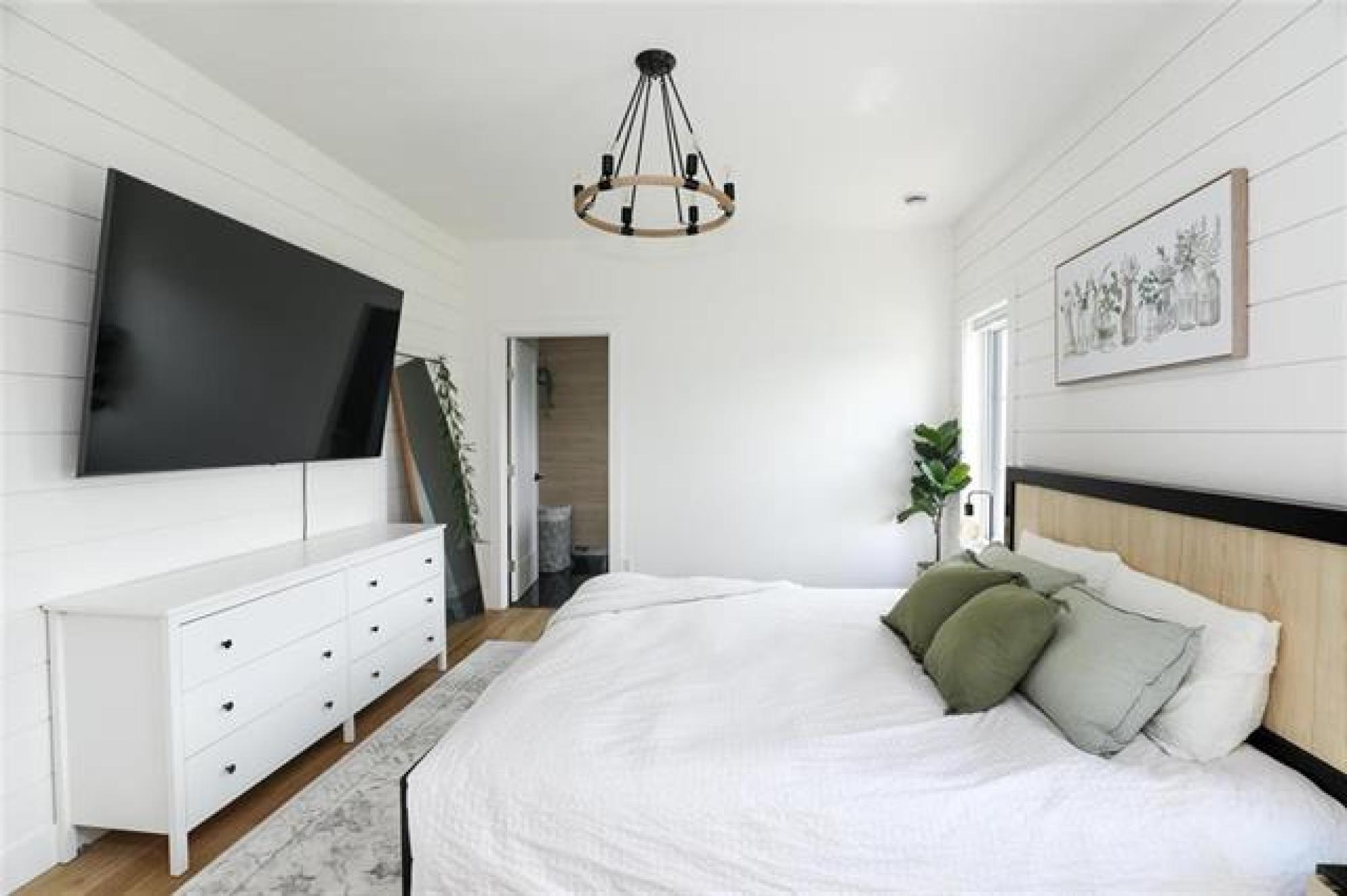 Welcome to this beautiful 3-bedroom, 2-bathroom home on the edge of peaceful Marchand. You'll love the curb appeal with its stone front patio and charming water feature. Inside, enjoy a bright open-concept layout with vinyl plank flooring throughout the main areas and tile in the bathrooms and mudroom. The kitchen features white cabinetry, a bold accent island, quartz countertops, and a pantry just down the hall. The cozy living room offers a wood-burning fireplace with an elegant brick surround. The spacious primary bedroom includes a walk-in closet and a 5-piece ensuite with dual sinks and a rainfall shower. With two more bedrooms and a large mudroom with laundry and built-in storage provides extra convenience, there's lots of room for your family! Step outside to a well-landscaped yard with garden boxes, a stone patio, and an underground sprinkler system to keep everything green. Don’t miss your chance to own this wonderful home—book your private showing today!