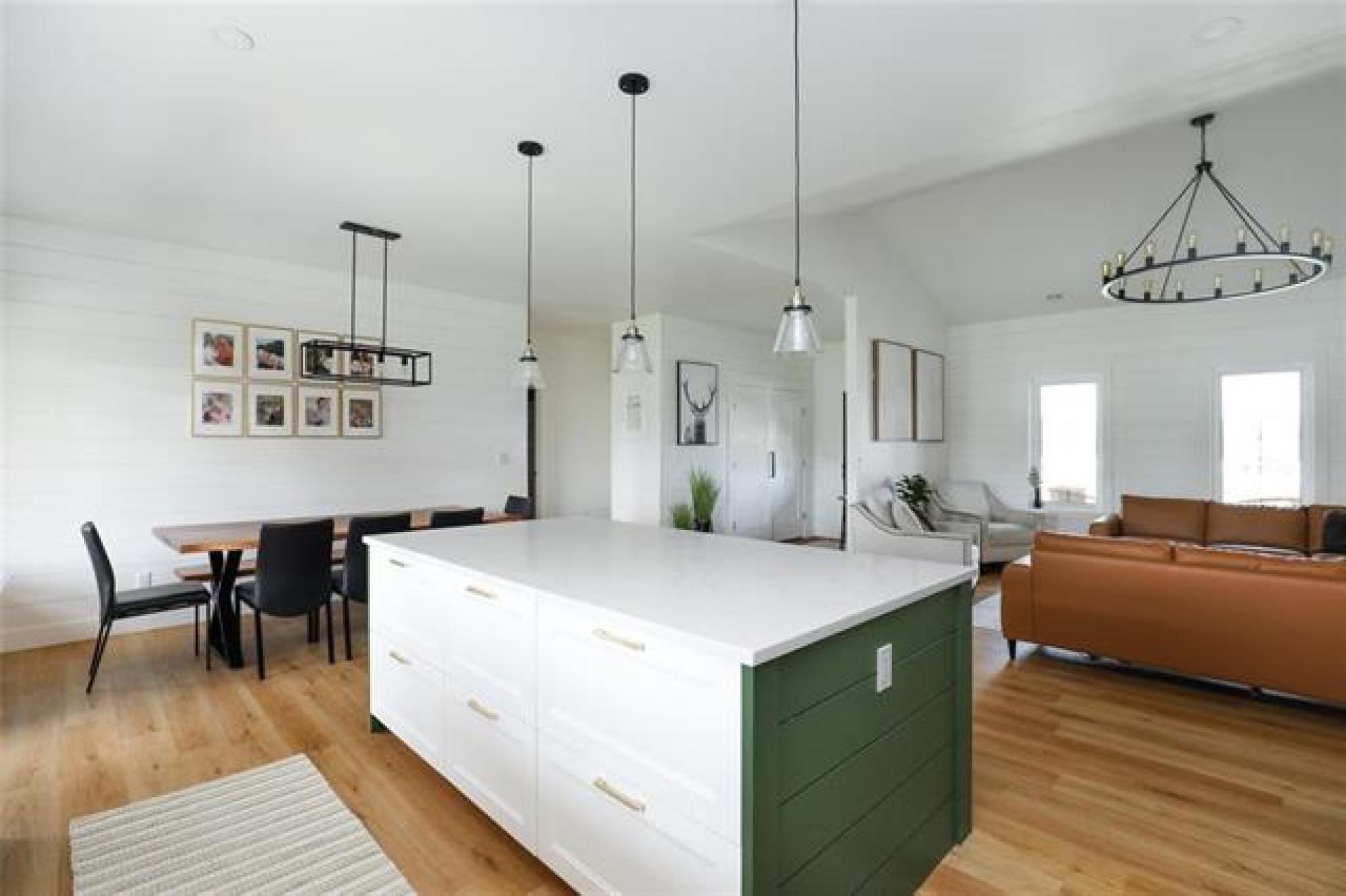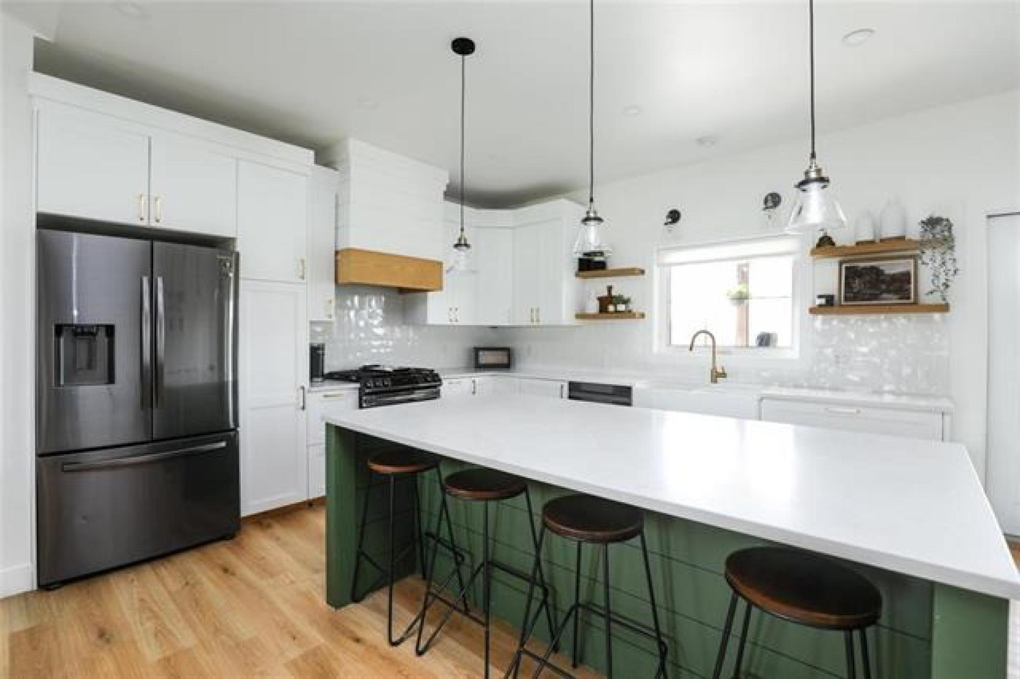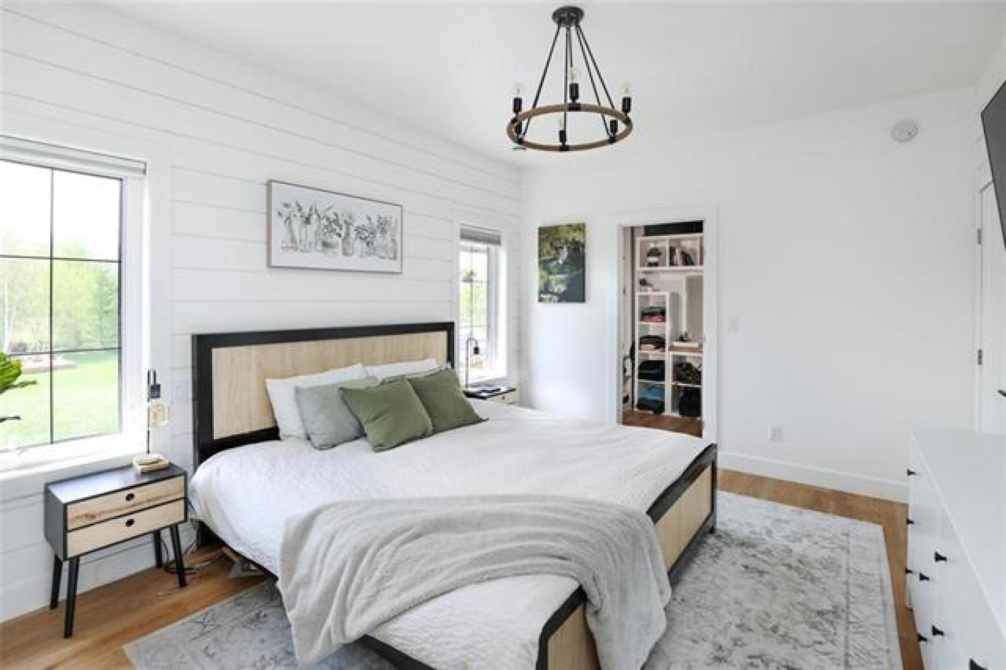 Welcome to this beautiful 3-bedroom, 2-bathroom home on the edge of peaceful Marchand. You'll love the curb appeal with its stone front patio and charming water feature. Inside, enjoy a bright open-concept layout with vinyl plank flooring throughout the main areas and tile in the bathrooms and mudroom. The kitchen features white cabinetry, a bold accent island, quartz countertops, and a pantry just down the hall. The cozy living room offers a wood-burning fireplace with an elegant brick surround. The spacious primary bedroom includes a walk-in closet and a 5-piece ensuite with dual sinks and a rainfall shower. With two more bedrooms and a large mudroom with laundry and built-in storage provides extra convenience, there's lots of room for your family! Step outside to a well-landscaped yard with garden boxes, a stone patio, and an underground sprinkler system to keep everything green. Don’t miss your chance to own this wonderful home—book your private showing today!