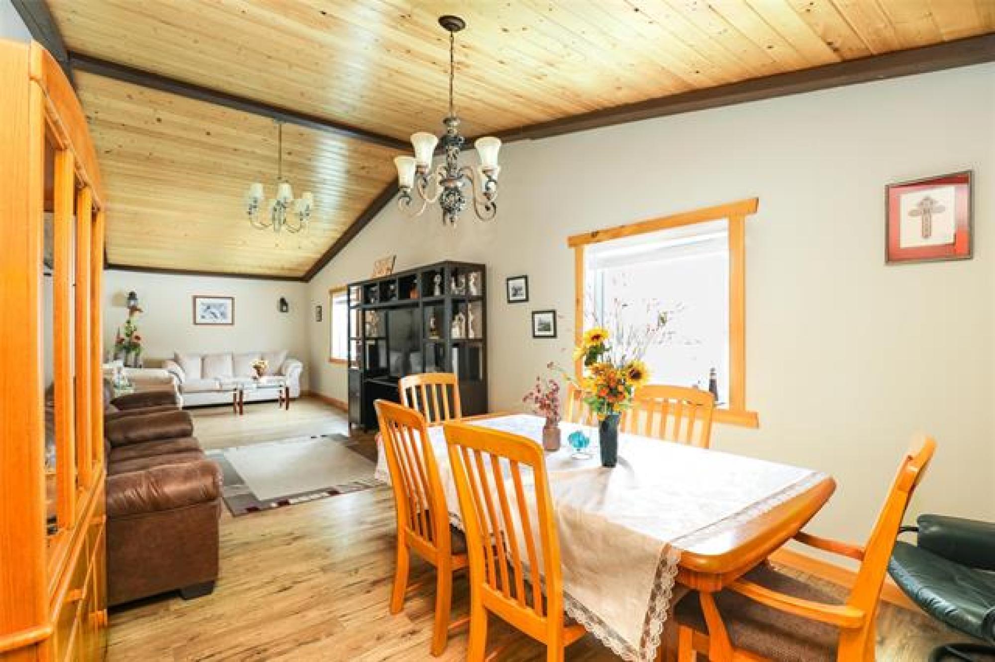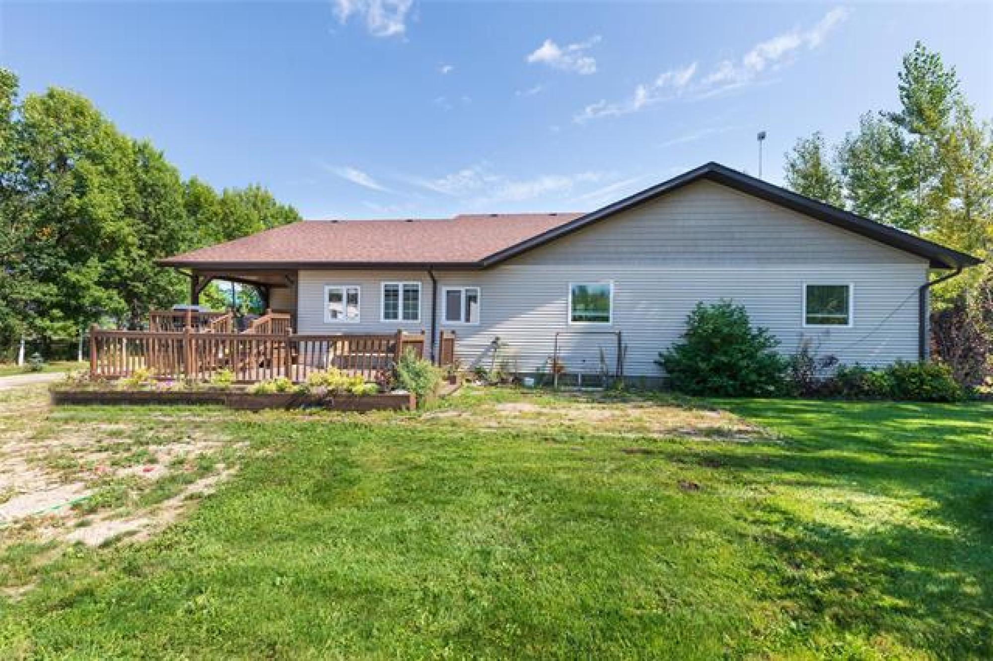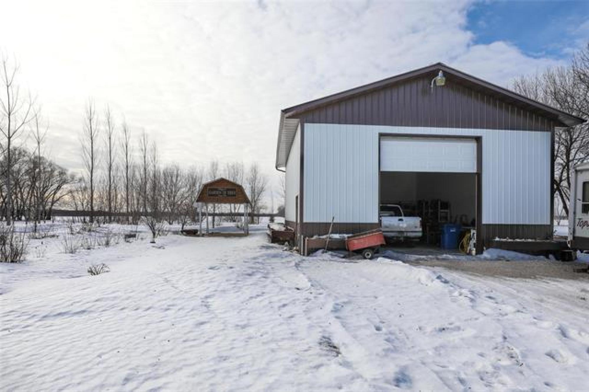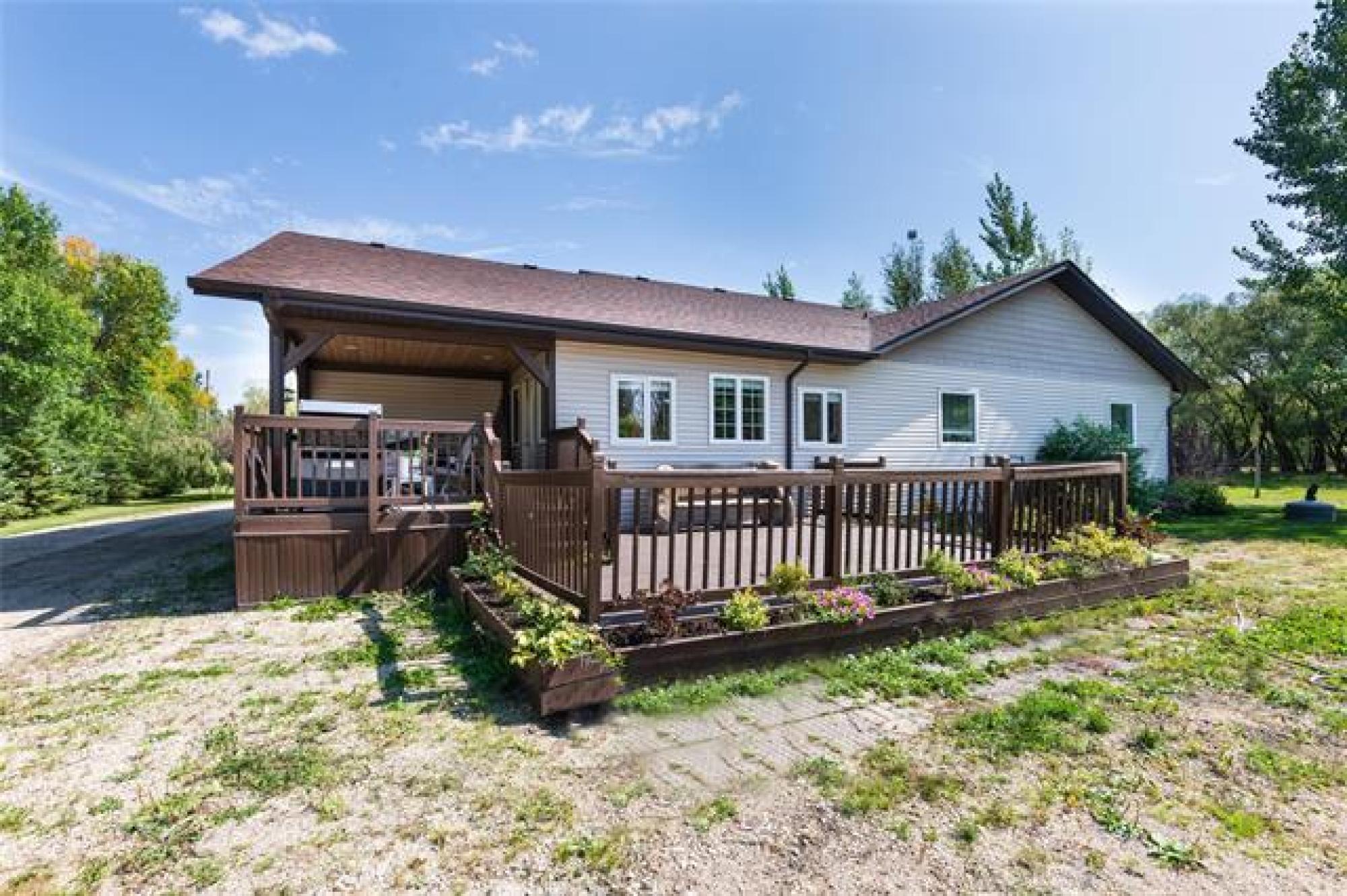 Pavement all the way to this peaceful 5 acre property with a spacious home, a 30' x40' shop, and large garden area! Only 20 minutes from Steinbach, this country gem offers the space and privacy you’ve been looking for! The home impresses with an open-concept layout, perfect for everyday living and enough room for gathering with family or friends. The living room features a large picture window and sleek electric fireplace. The kitchen features two-tone custom Alderwood cabinetry, granite countertops, high-end gas stove, stainless steel appliances, tile backsplash and spacious island. The oversized dining area features a sliding barn door that opens into a warm, inviting family room with vaulted wood ceilings and a 2nd fireplace. From there, step into the cozy 4-season sunroom with rich wood paneling and access to the covered back deck. The primary suite offers a walk-in closet and ensuite. Two more bedrooms, a 4-piece bath, and a large mudroom with laundry and storage complete the floor plan. Need more space? With an extra wall, this home could easily convert to 4 or even 5 bedrooms! Location and features are ideal for home business or a growing family - or both!