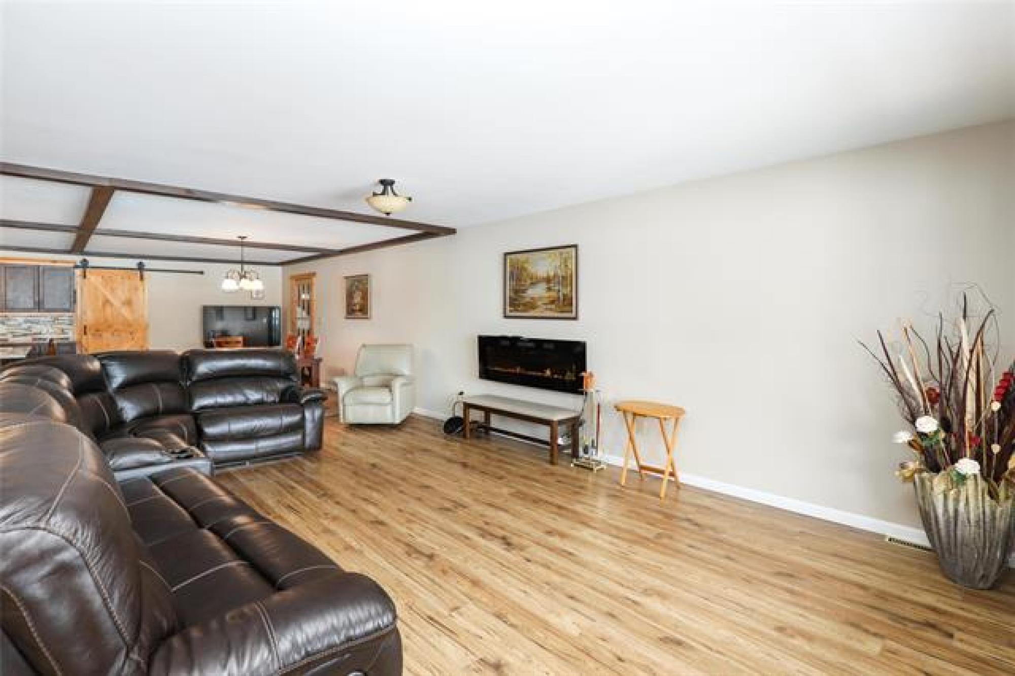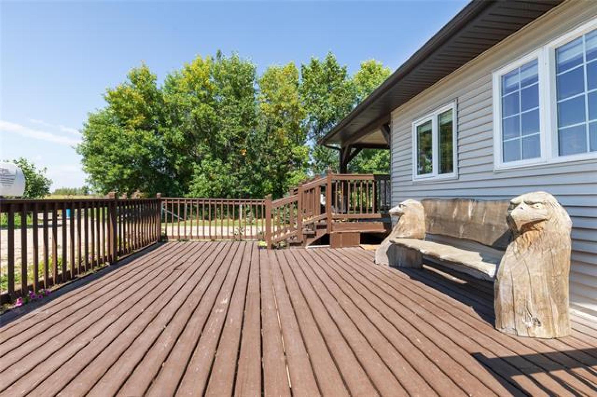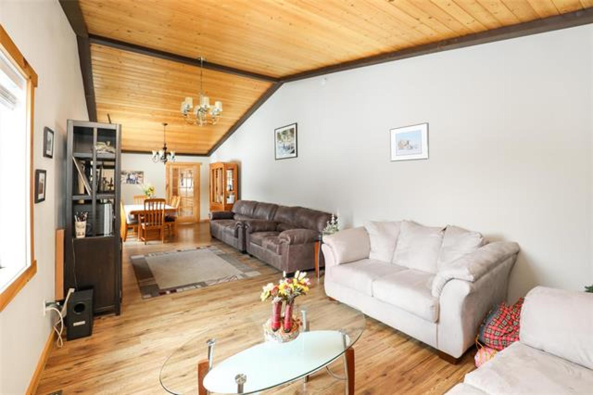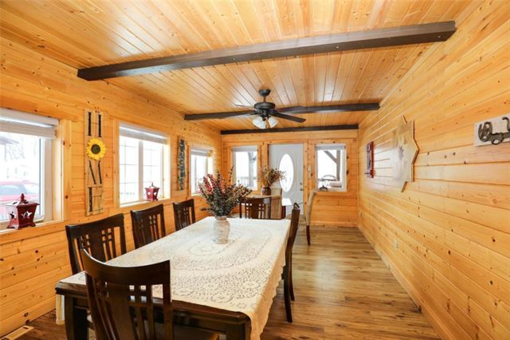 Pavement all the way to this peaceful 5 acre property with a spacious home, a 30' x40' shop, and large garden area! Only 20 minutes from Steinbach, this country gem offers the space and privacy you’ve been looking for! The home impresses with an open-concept layout, perfect for everyday living and enough room for gathering with family or friends. The living room features a large picture window and sleek electric fireplace. The kitchen features two-tone custom Alderwood cabinetry, granite countertops, high-end gas stove, stainless steel appliances, tile backsplash and spacious island. The oversized dining area features a sliding barn door that opens into a warm, inviting family room with vaulted wood ceilings and a 2nd fireplace. From there, step into the cozy 4-season sunroom with rich wood paneling and access to the covered back deck. The primary suite offers a walk-in closet and ensuite. Two more bedrooms, a 4-piece bath, and a large mudroom with laundry and storage complete the floor plan. Need more space? With an extra wall, this home could easily convert to 4 or even 5 bedrooms! Location and features are ideal for home business or a growing family - or both!