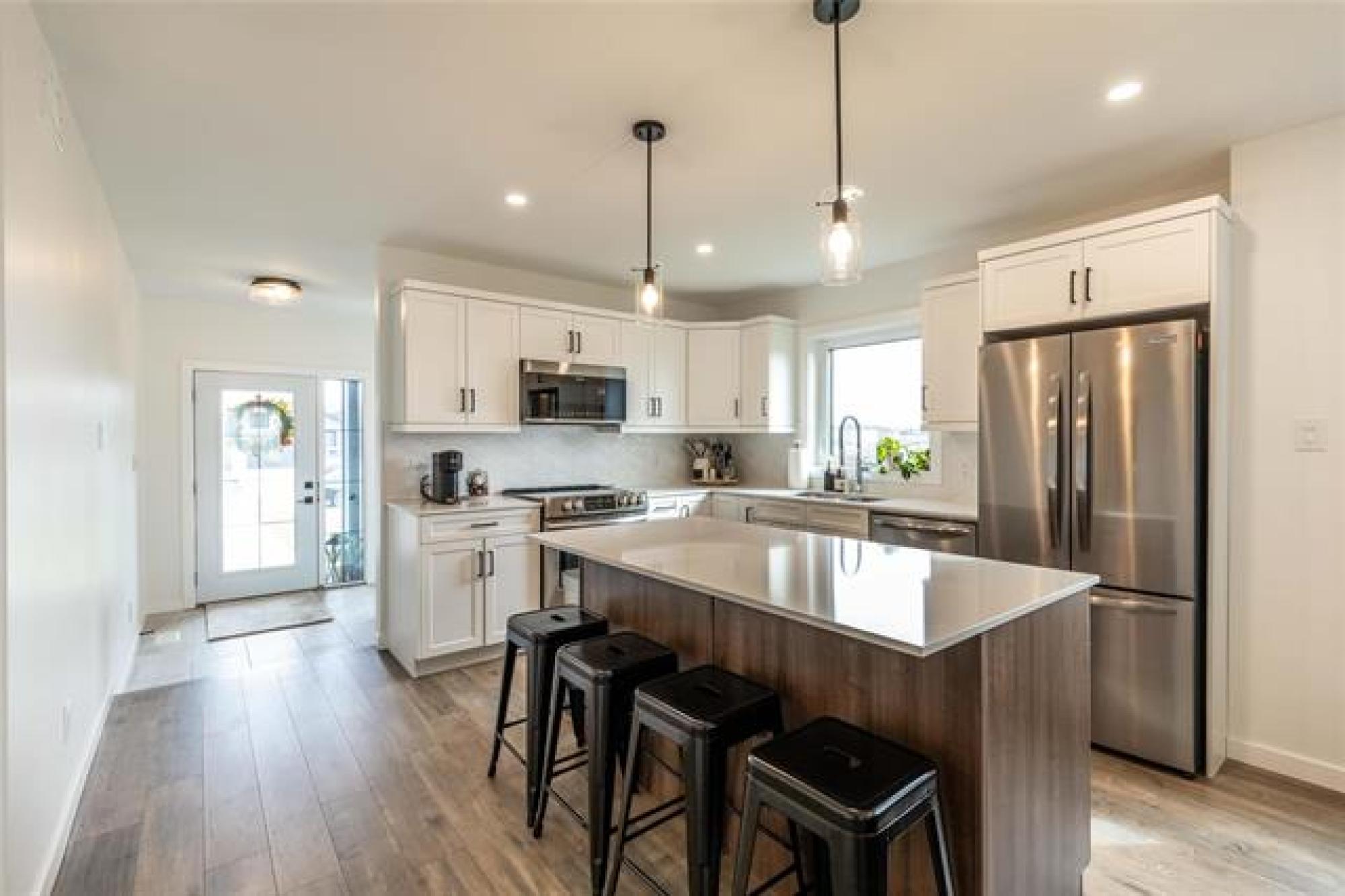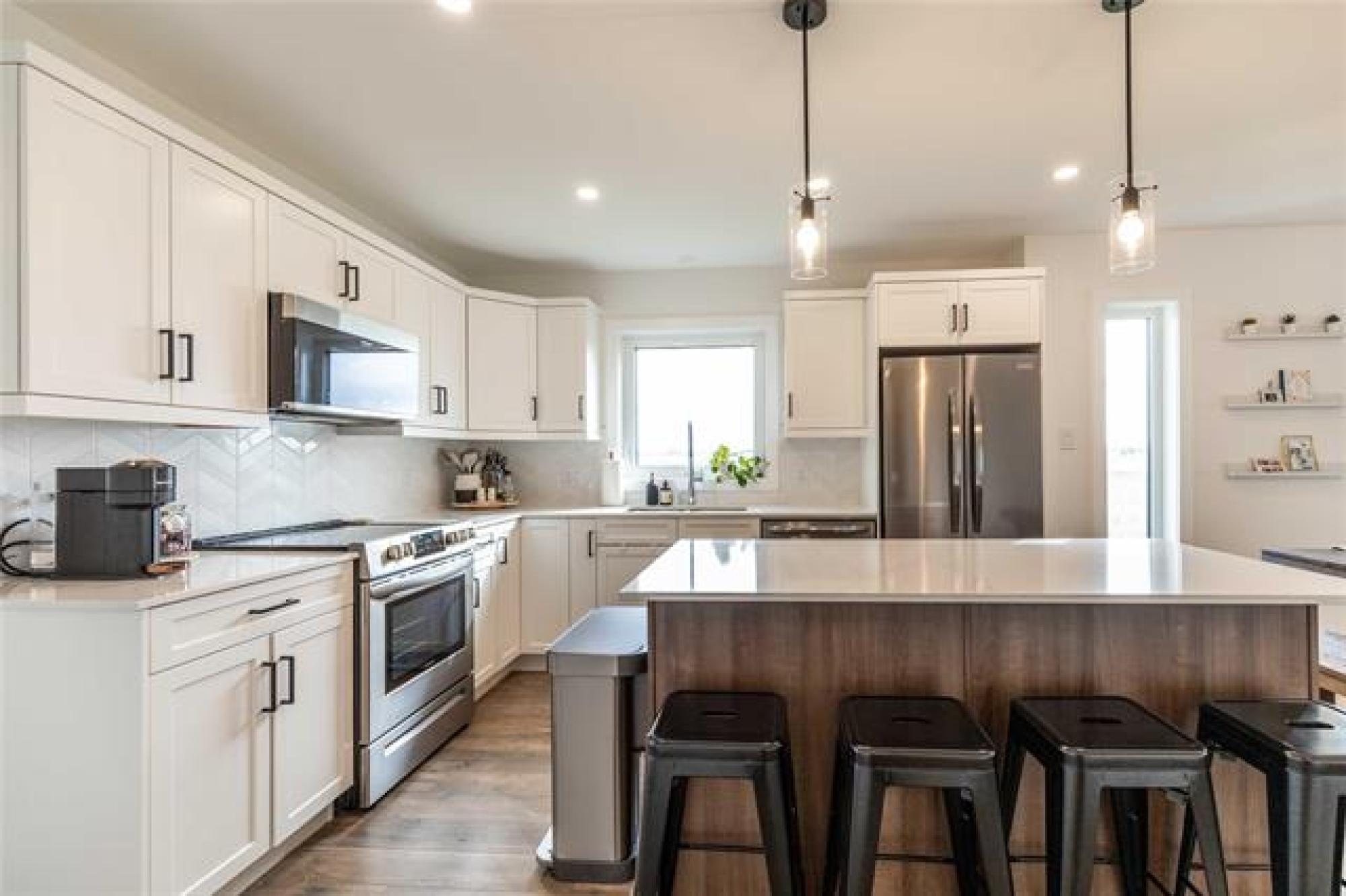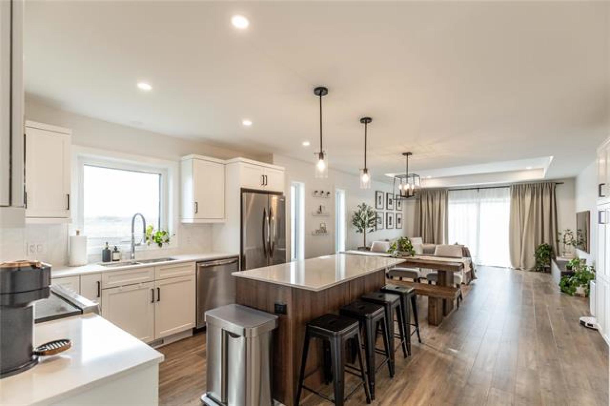 Classy, elegant, and move-in ready! This 1,290 SF 3 bedroom home combines style and function in one of Steinbach’s most desirable neighbourhoods. Step inside to a spacious entrance leading to a dream kitchen featuring crisp white cabinetry, quartz countertops, tile backsplash, stainless steel appliances, and an island with seating — perfect for family gatherings or entertaining. The dining area includes custom built-ins for added storage and functionality, while the cozy living room boasts a stylish tray ceiling and garden doors that open to your back deck. The primary bedroom is a relaxing retreat, featuring a walk-in closet and a beautiful ensuite with a custom tile shower. Two additional bedrooms, a 4 pc bathroom and convenient main floor laundry make this home as practical as it is polished. Downstairs, a full basement offers endless potential for future development — whether you envision a family rec room, home gym or extra bedrooms. Outside, enjoy the private, partially fenced backyard and relax on your deck in comfort and style. With quality finishes, great curb appeal, and a prime location close to schools, parks, and amenities, this home truly has it all.