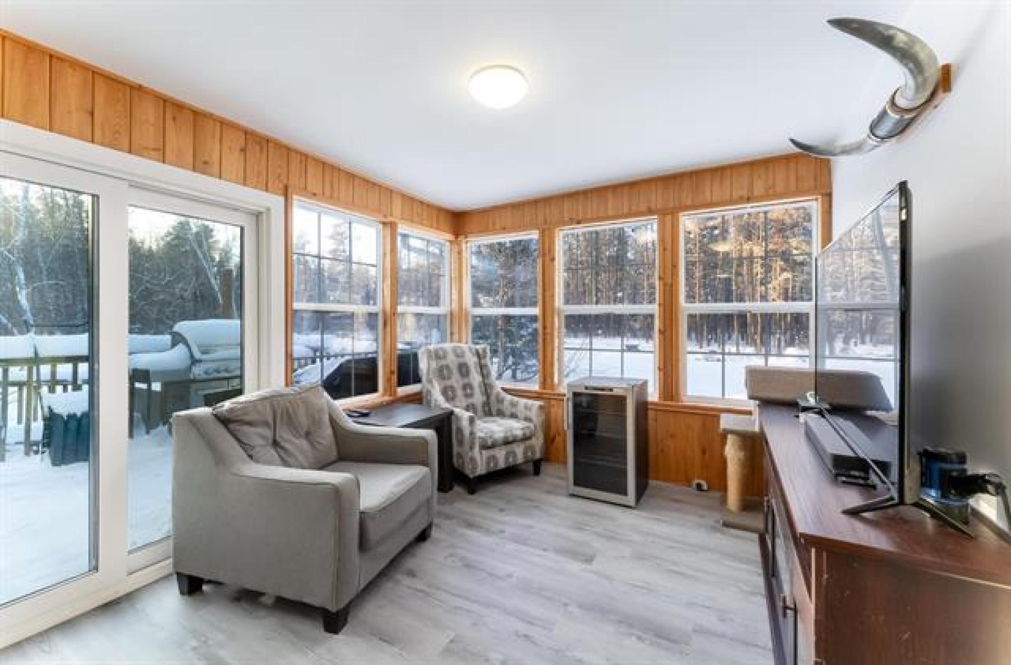 Charming warm and inviting 1620 square-foot bungalow in BelAir offers the perfect blend of comfort and nature, nestled in mature trees on a beautifully landscape 2 acre property surrounded by forest. With three bedrooms and two bathrooms, this home features a four season sunroom that invites plenty of natural light, a sunken formal living room with large windows, and a formal dining area perfect for entertaining. The welcoming large entry greets you with sunshine filled warmth, and a sense of spaciousness. Recently updated this home includes new flooring throughout, new light fixtures, ceiling, fans, gorgeous, new front door, sliding patio doors onto your wraparound deck, zebra power blinds, and they foyer and living room. New blinds in the bedrooms, dining room and kitchen. New Central air unit and electric for air furnace, Insurance and Comfort year-round. Enjoy this wraparound deck that enhances your outdoor living, offering a perfect spot to enjoy tranquillity of country life. Bring your RV this property offers RV parking area with its own 50 amp plug-in. R