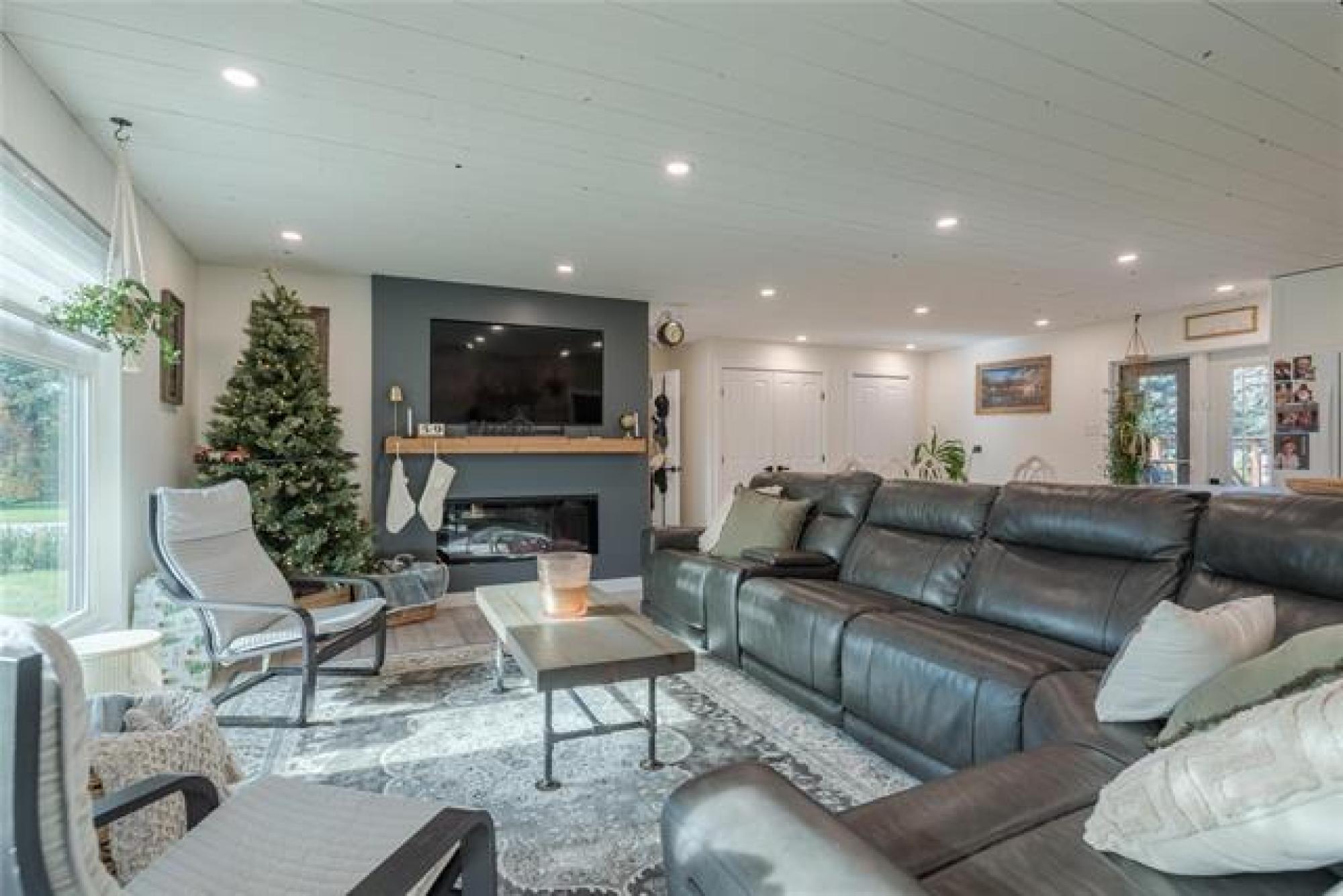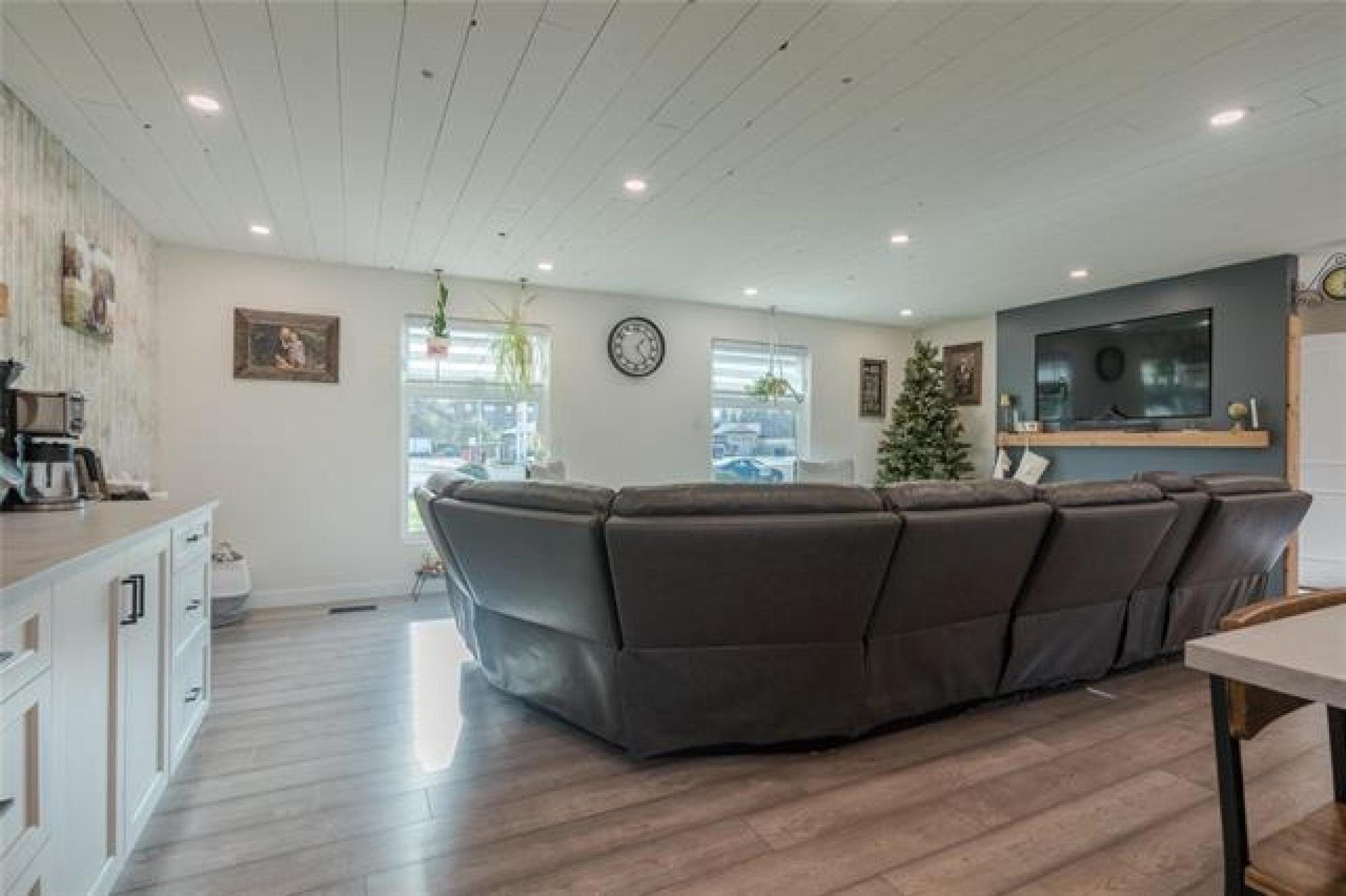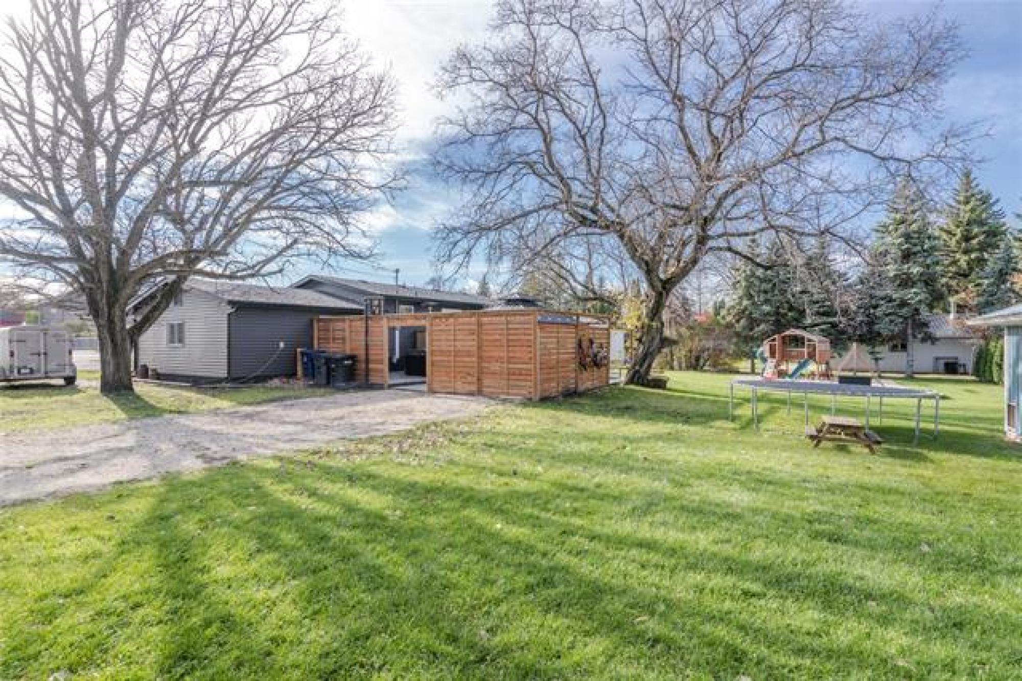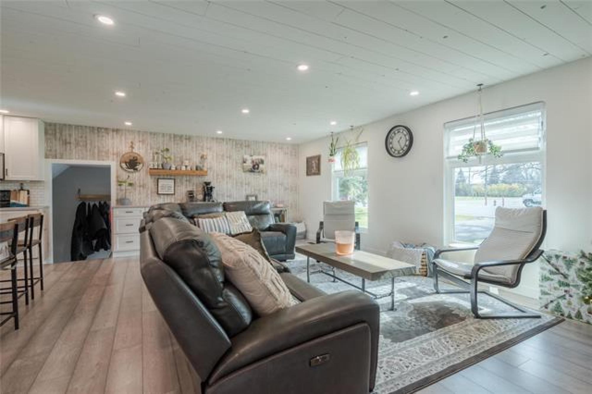 This beautifully updated 1250 sq ft bungalow offers modern style, comfort, and functionality in an unbeatable location within walking distance to school and close to all conveniences. Professionally renovated from top to bottom, this home truly shines inside and out. Step inside to a spacious open-concept living, kitchen, and dining area featuring new luxury vinyl plank flooring, a cozy fireplace, and an abundance of natural light. The upgraded kitchen is sure to impress with new countertops, a large island, and a built-in coffee bar - perfect for both everyday living and entertaining. The main floor offers a large front entrance, main floor laundry, and a generous primary bedroom with a walk-in closet and a 5 pc ensuite. A stylish 2 pc main bath completes the level. The fully finished lower level includes a spacious rec room, 2 additional bdrms, 4 pc bath, and a dedicated caning room. Recent mechanical upgrades include a new HW tank and a high-e gas furnace. Enjoy the outdoors in your beautifully landscaped backyard, featuring double garden doors leading to a large deck, a nice stone patio, a gazebo area. Att garage, home has all new windows and exterior finishes.