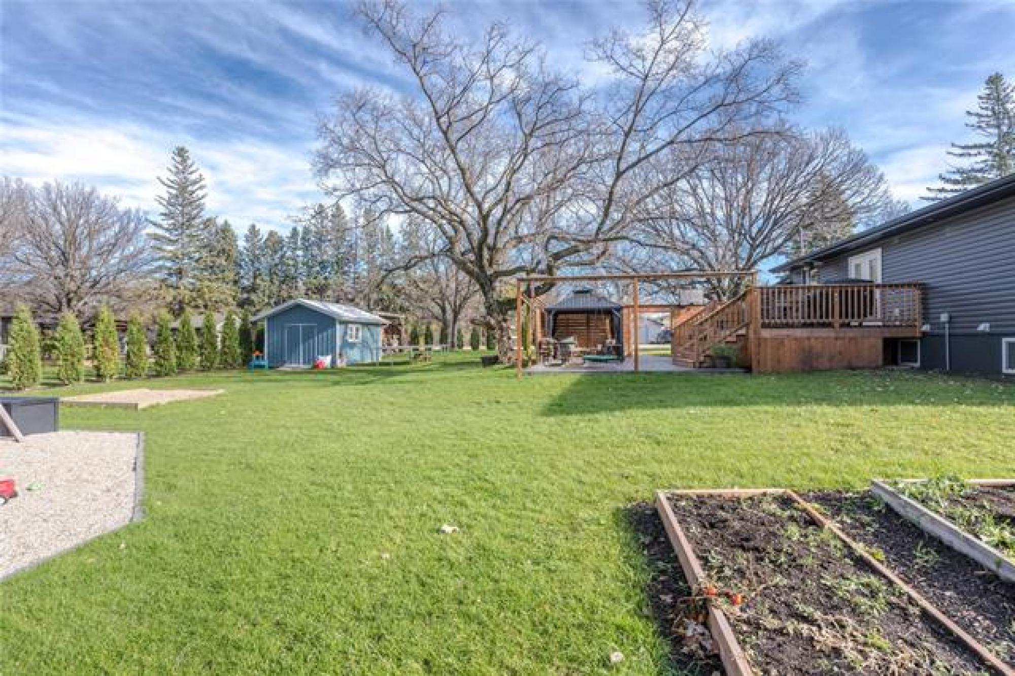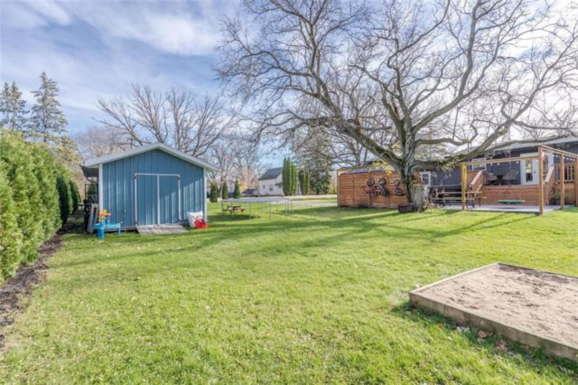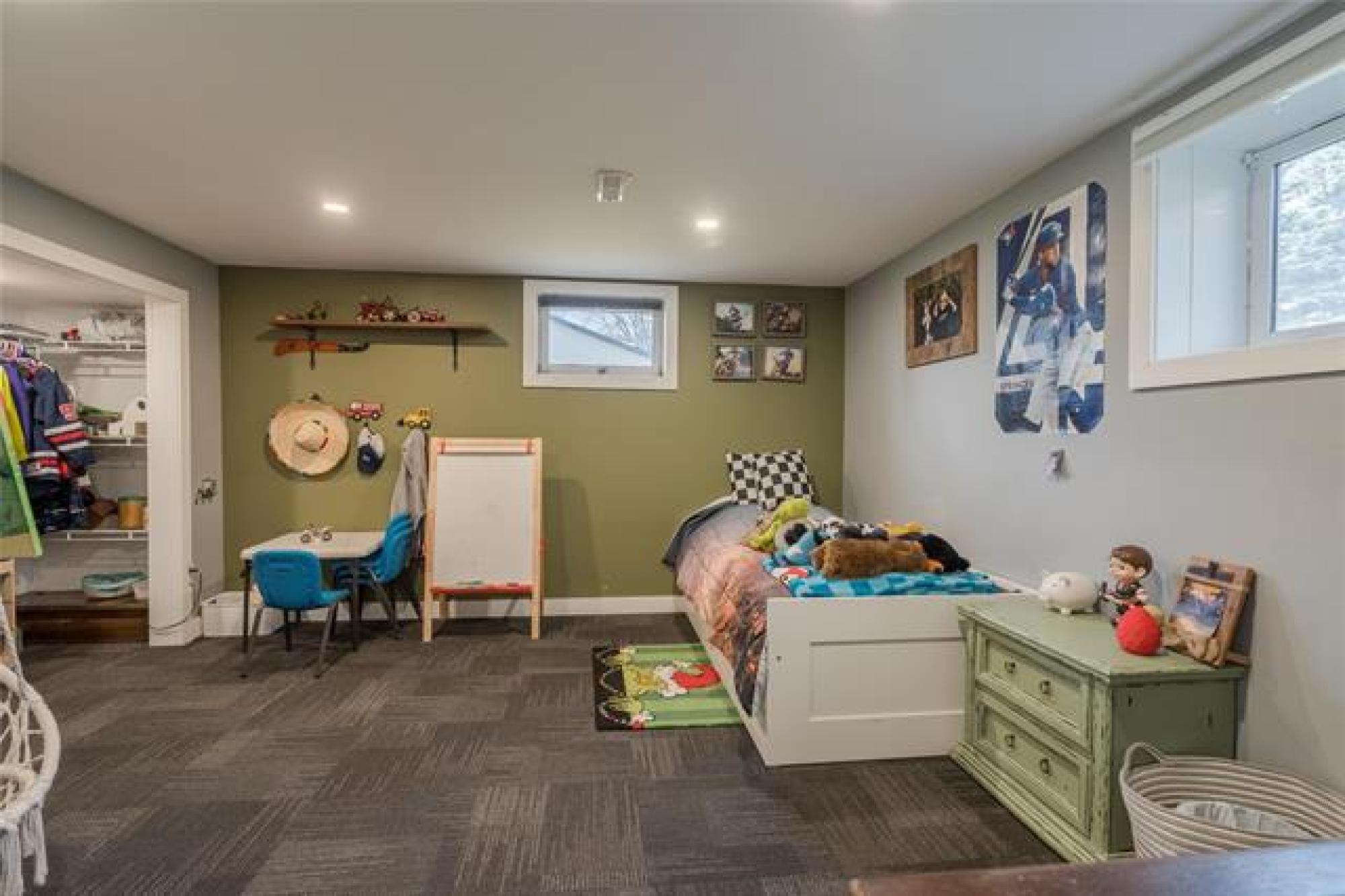 This beautifully updated 1250 sq ft bungalow offers modern style, comfort, and functionality in an unbeatable location within walking distance to school and close to all conveniences. Professionally renovated from top to bottom, this home truly shines inside and out. Step inside to a spacious open-concept living, kitchen, and dining area featuring new luxury vinyl plank flooring, a cozy fireplace, and an abundance of natural light. The upgraded kitchen is sure to impress with new countertops, a large island, and a built-in coffee bar - perfect for both everyday living and entertaining. The main floor offers a large front entrance, main floor laundry, and a generous primary bedroom with a walk-in closet and a 5 pc ensuite. A stylish 2 pc main bath completes the level. The fully finished lower level includes a spacious rec room, 2 additional bdrms, 4 pc bath, and a dedicated caning room. Recent mechanical upgrades include a new HW tank and a high-e gas furnace. Enjoy the outdoors in your beautifully landscaped backyard, featuring double garden doors leading to a large deck, a nice stone patio, a gazebo area. Att garage, home has all new windows and exterior finishes.