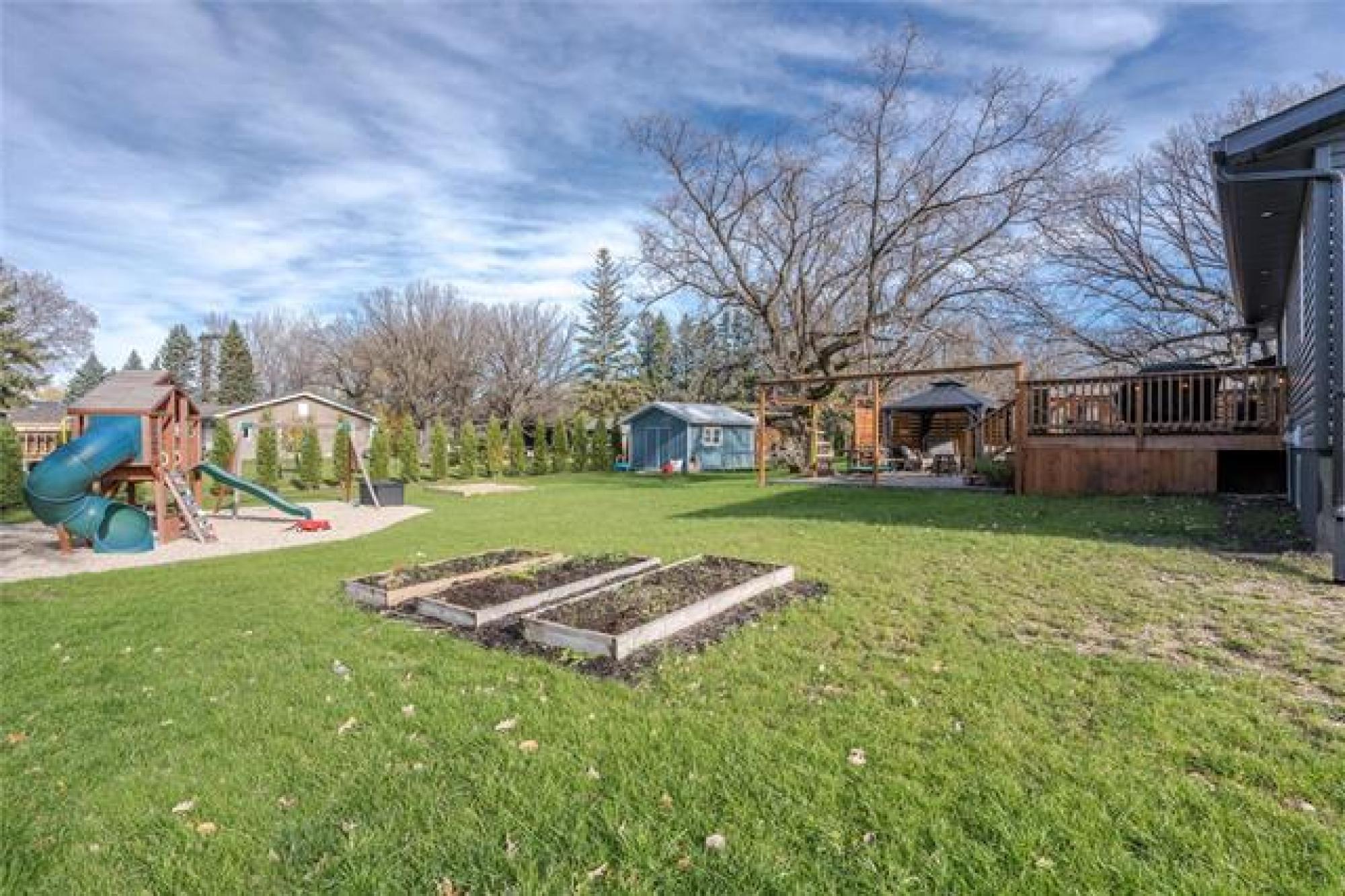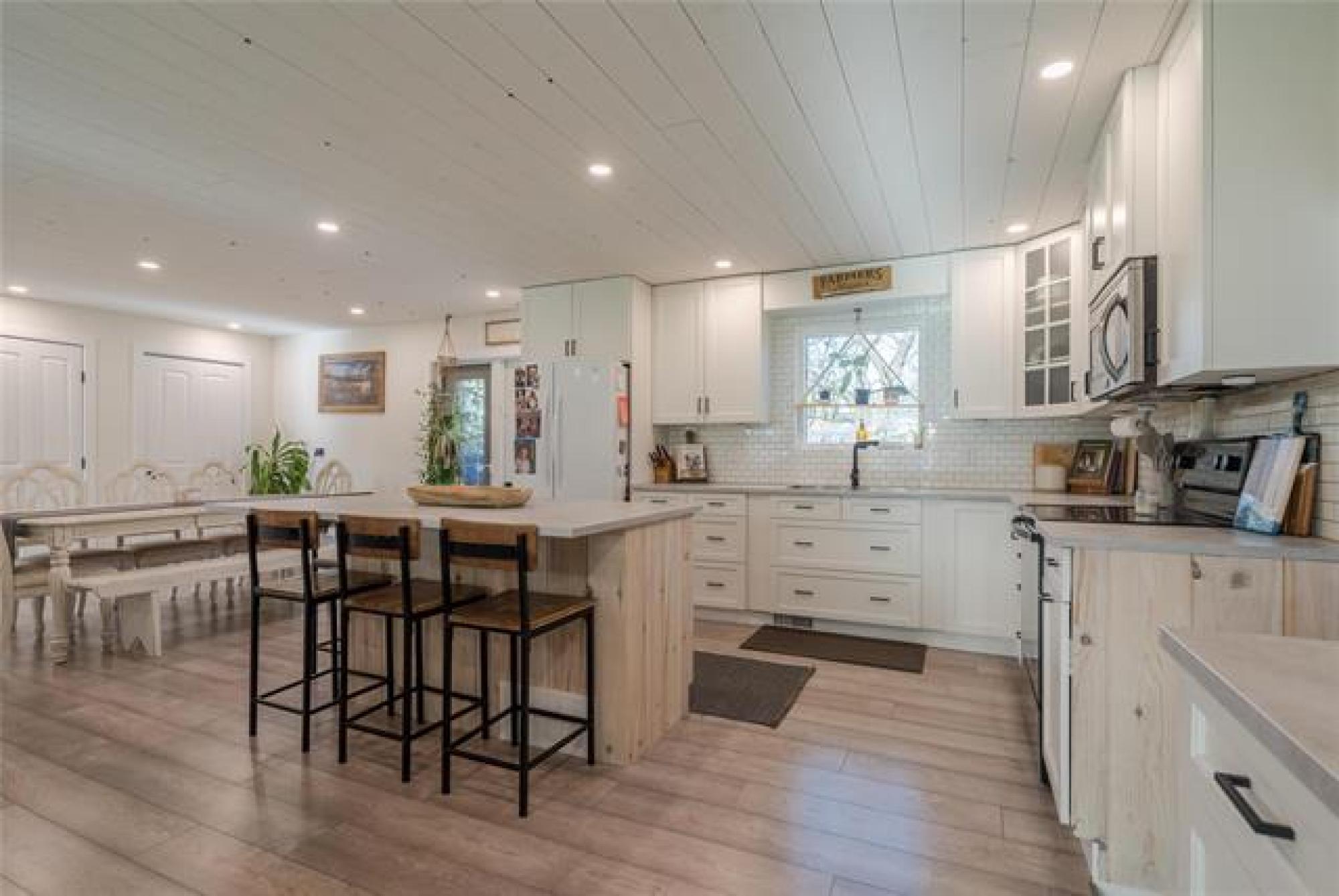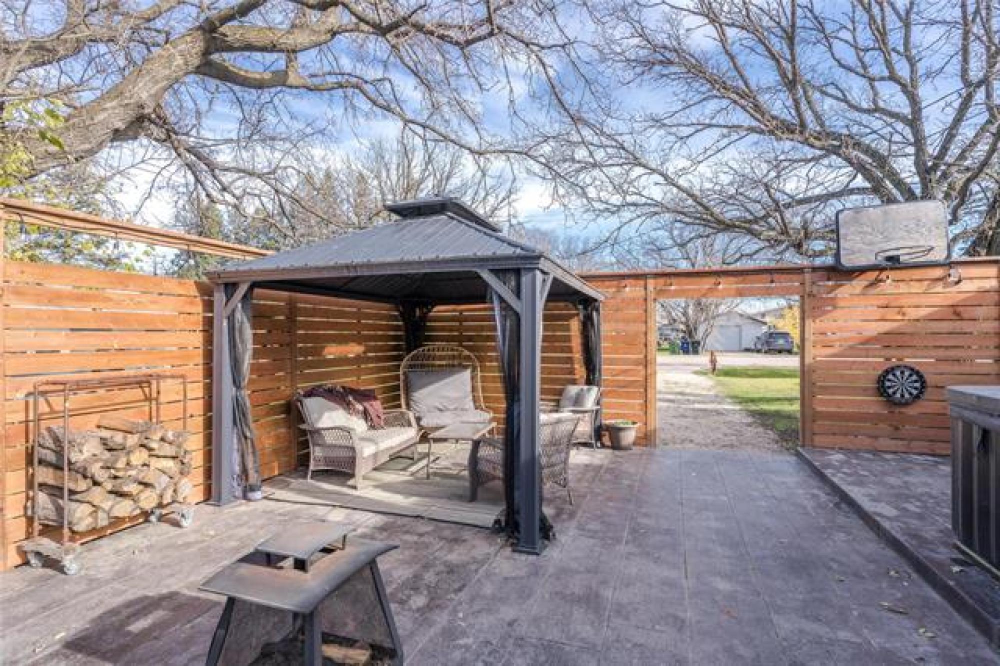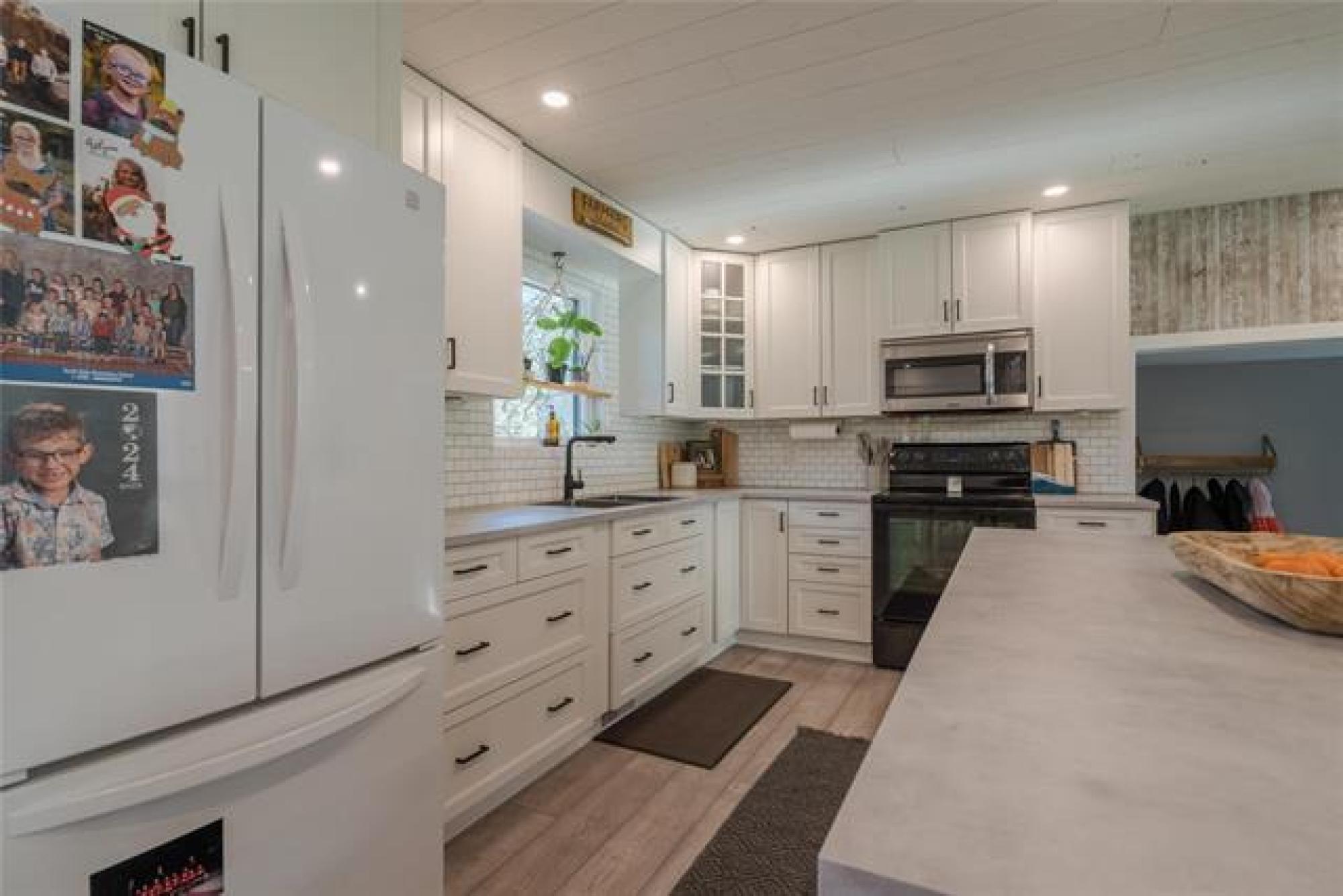 This beautifully updated 1250 sq ft bungalow offers modern style, comfort, and functionality in an unbeatable location within walking distance to school and close to all conveniences. Professionally renovated from top to bottom, this home truly shines inside and out. Step inside to a spacious open-concept living, kitchen, and dining area featuring new luxury vinyl plank flooring, a cozy fireplace, and an abundance of natural light. The upgraded kitchen is sure to impress with new countertops, a large island, and a built-in coffee bar - perfect for both everyday living and entertaining. The main floor offers a large front entrance, main floor laundry, and a generous primary bedroom with a walk-in closet and a 5 pc ensuite. A stylish 2 pc main bath completes the level. The fully finished lower level includes a spacious rec room, 2 additional bdrms, 4 pc bath, and a dedicated caning room. Recent mechanical upgrades include a new HW tank and a high-e gas furnace. Enjoy the outdoors in your beautifully landscaped backyard, featuring double garden doors leading to a large deck, a nice stone patio, a gazebo area. Att garage, home has all new windows and exterior finishes.