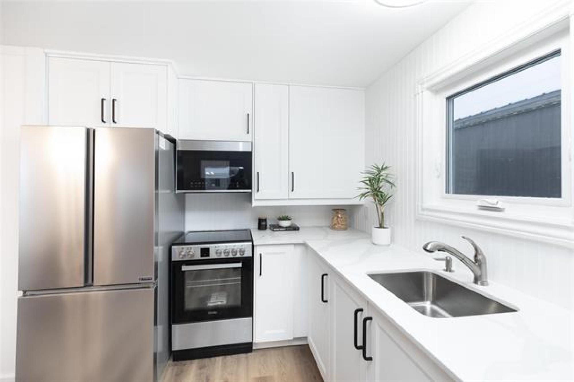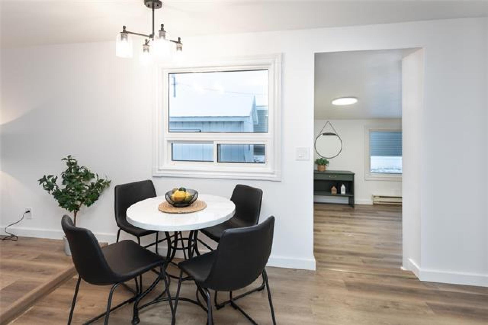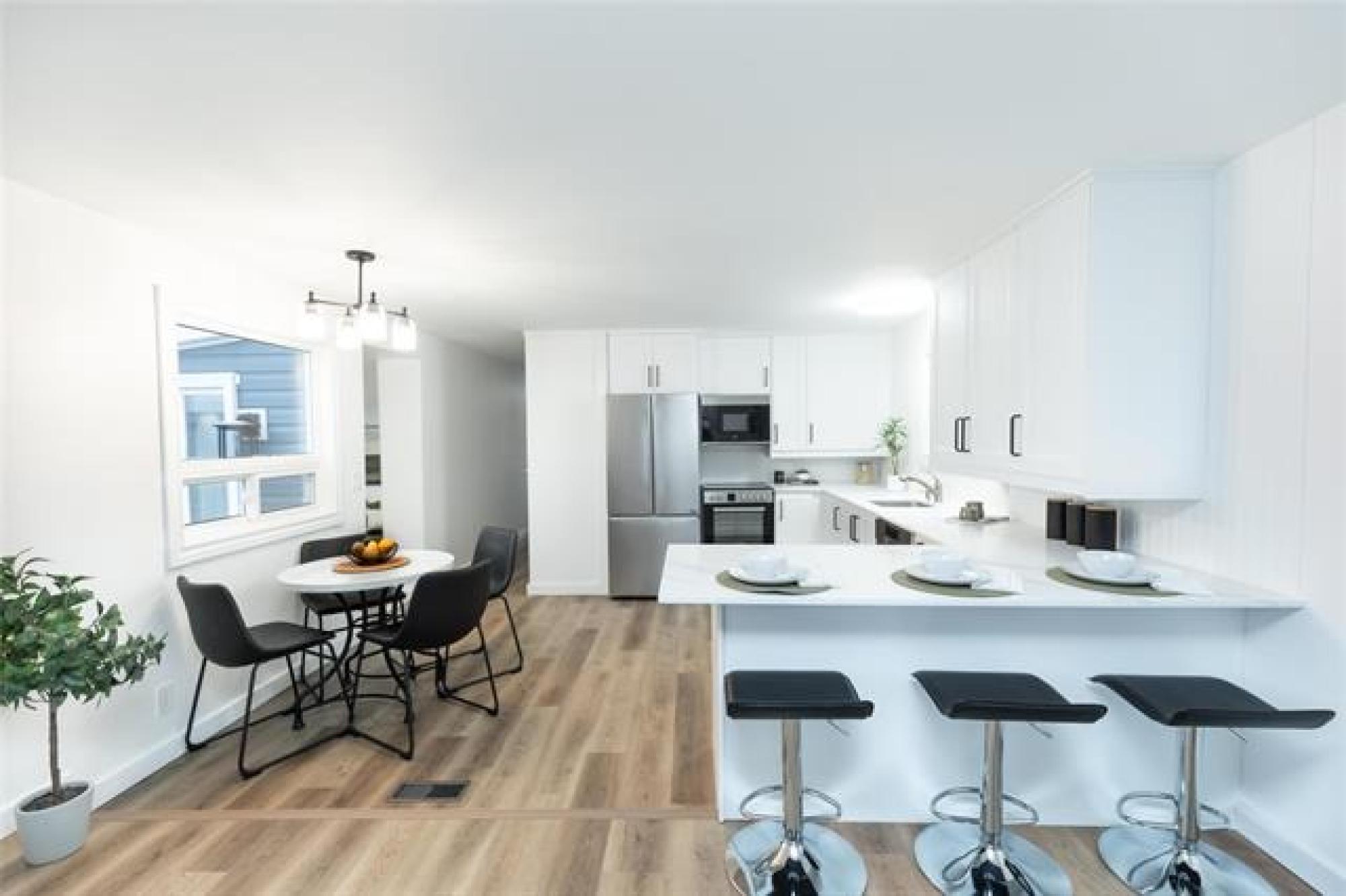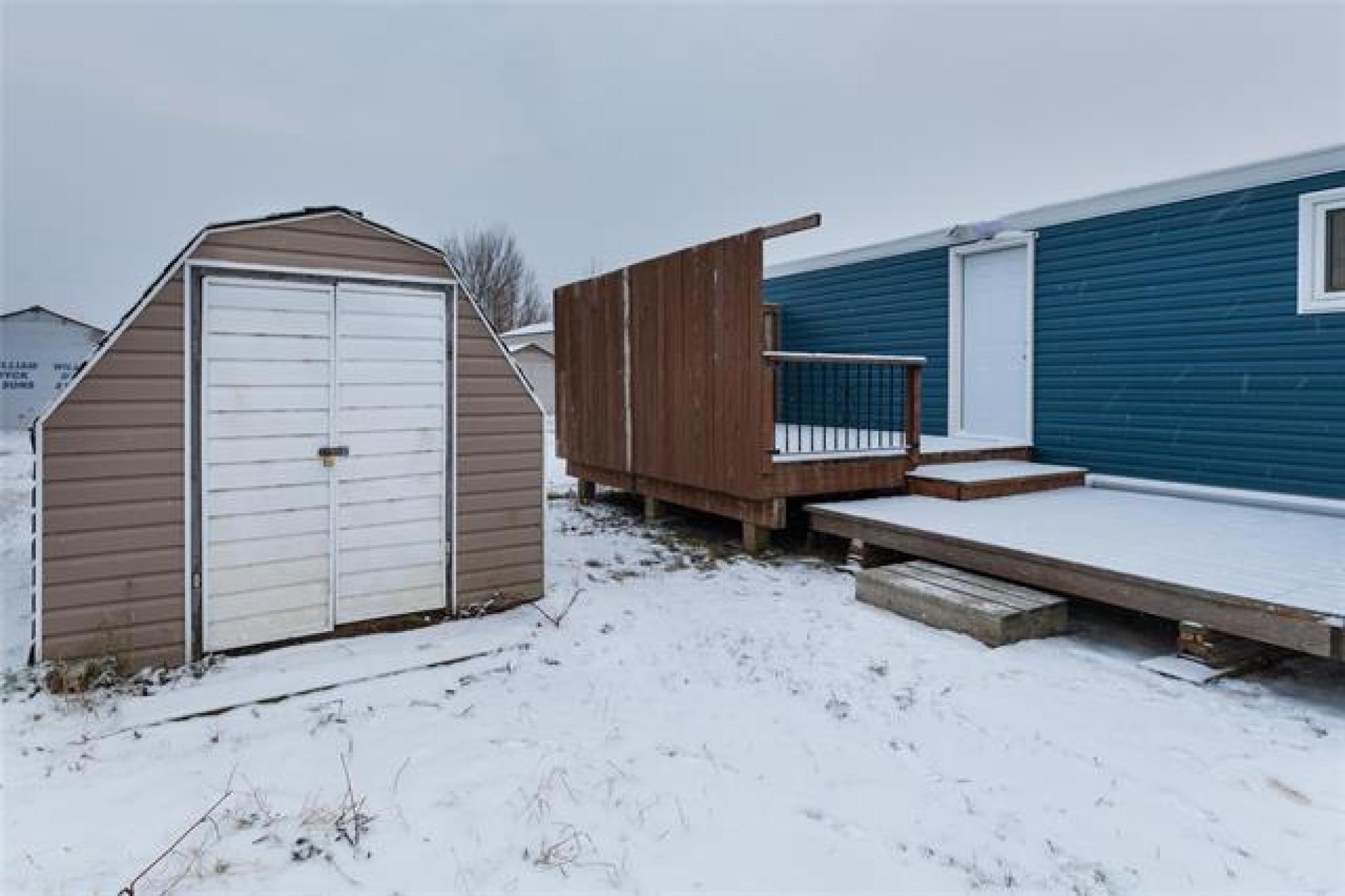 Open House Saturday and Sunday, 1-3pm. Offers presented at 1pm on Dec. 10th. Welcome to this fully renovated home - so many upgrades that it's like new! Enjoy energy efficiency with triple pane windows, spray foam plus Halo Exterra graphite insulation, new siding, and insulated skirting with automatic venting. Step into a spacious entrance to find new luxury vinyl plank flooring, drywall and paint, and all new appliances! The kitchen features quartz countertops and white cupboards with unique pull-out lazy susans to maximize corner space. You will appreciate the extra seating at the peninsula. The living room is bright and welcoming with two large windows. Down the hall, you'll find 3 comfortable bedrooms, a laundry area, and a roomy bathroom with dual sinks. Your back door leads to a 2-tiered deck with privacy screening. 8x12 storage shed is perfect for yard tools & toys, and you can use the garage as a workshop or for indoor parking this winter! Located close to the school and recreation centre. Don't miss this one - call today to book your personal tour.