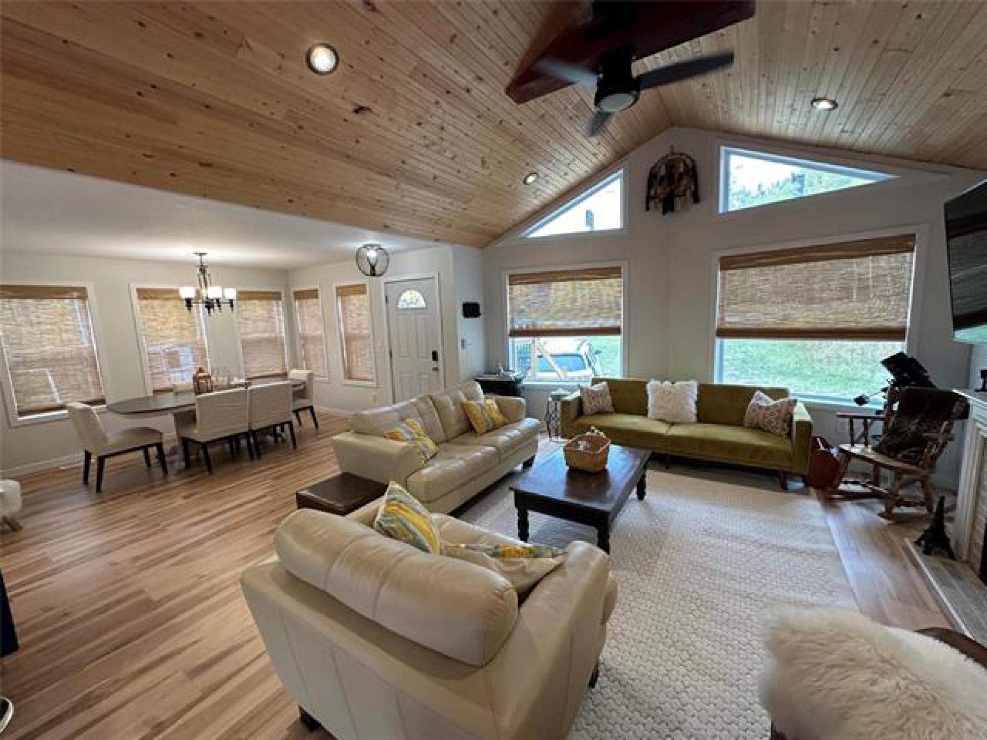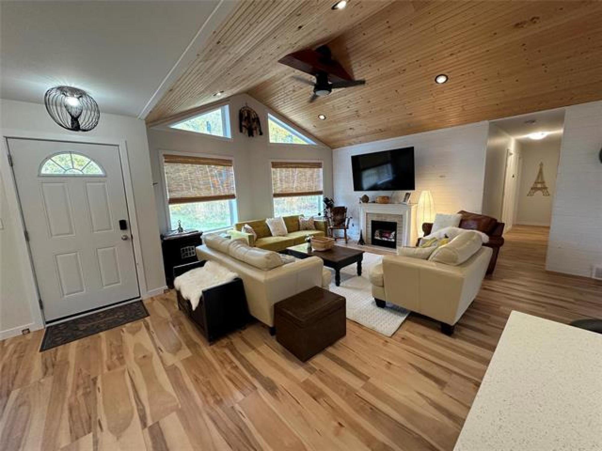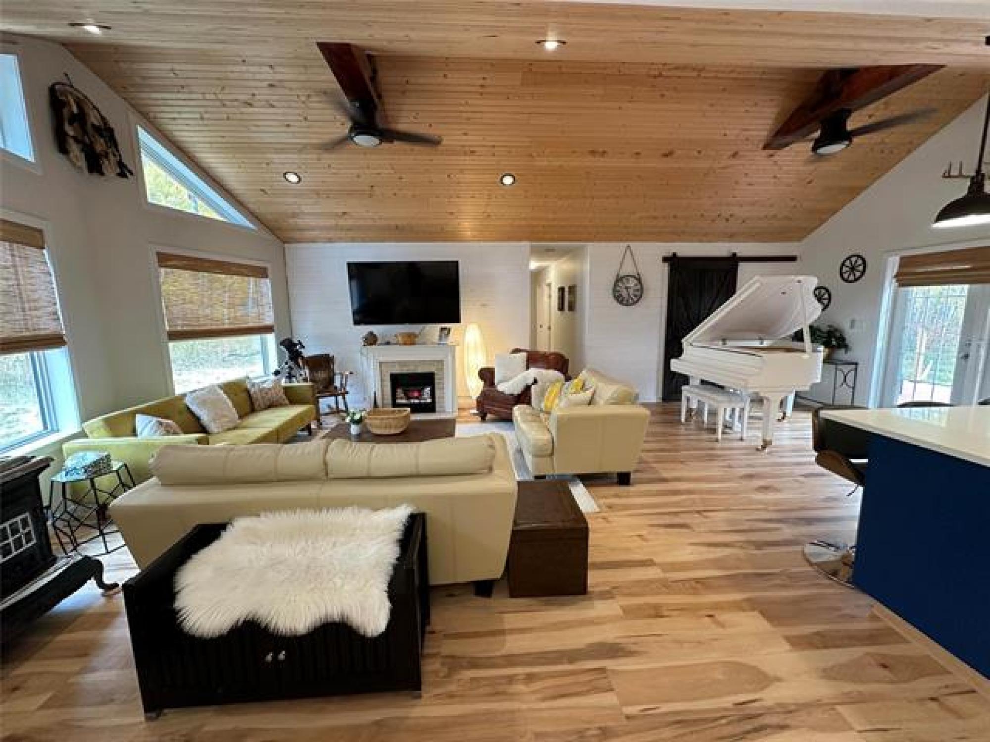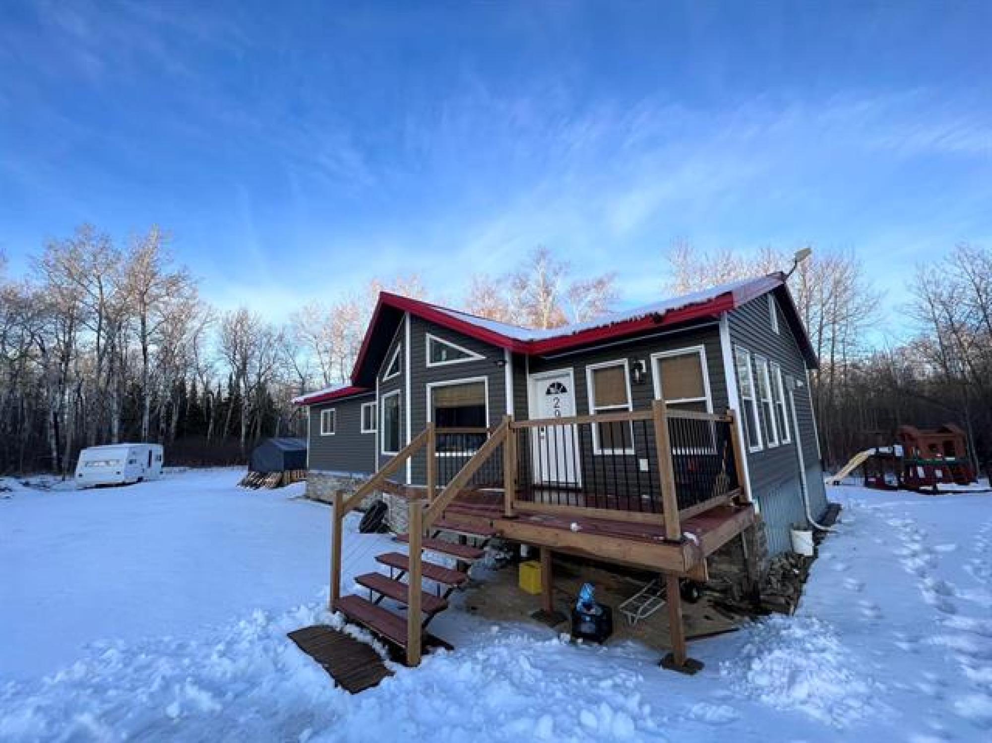 Just like new! Started in 2018, but just completed recently!! Absolutely gorgeous, with vaulted pine ceilings and quartz countertops. Built to code on a poured concrete footing, with 2x6 construction, Drilled Well, Steel roof, Forced air Furnace and Central A/C. This 1200 square foot, 3 bedroom, 2 bath home or cottage features a wide open plan with a sunroom/ entrance that opens in to the Living/Dining Room and Kitchen, and Garden doors to the Huge Composite deck and spacious rear yard, complete with kids play equipment and Firepit area. Did I mention that this is a one acre corner property only 1 block from the lake??!! Theres a composite deck on the front as well, wired overflow parking for an RV or 2 if company shows up! So Much Value! A Must See!!