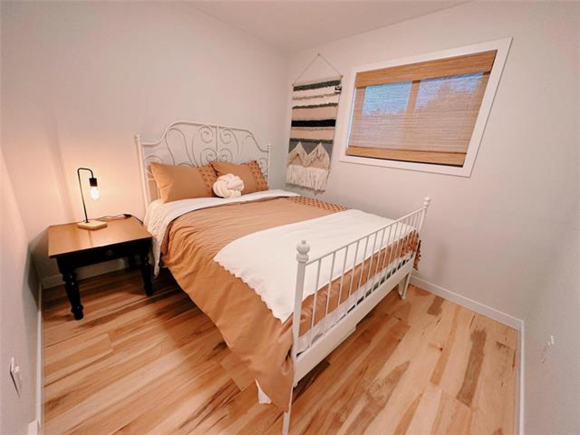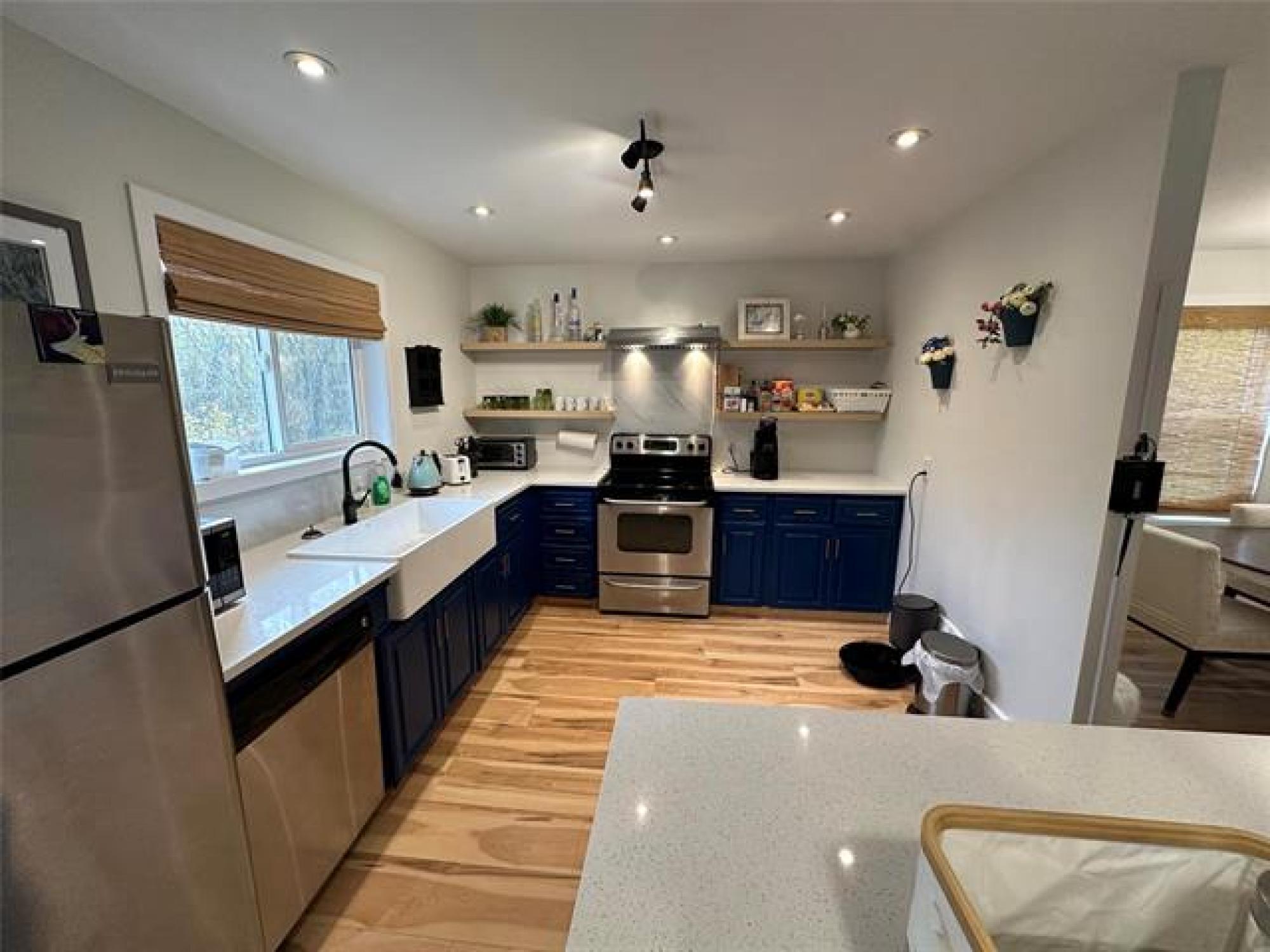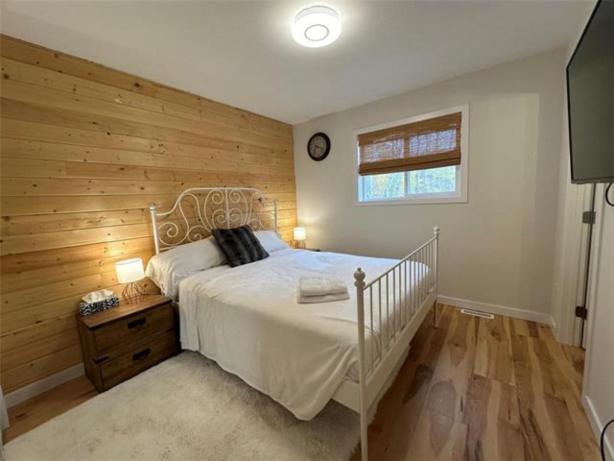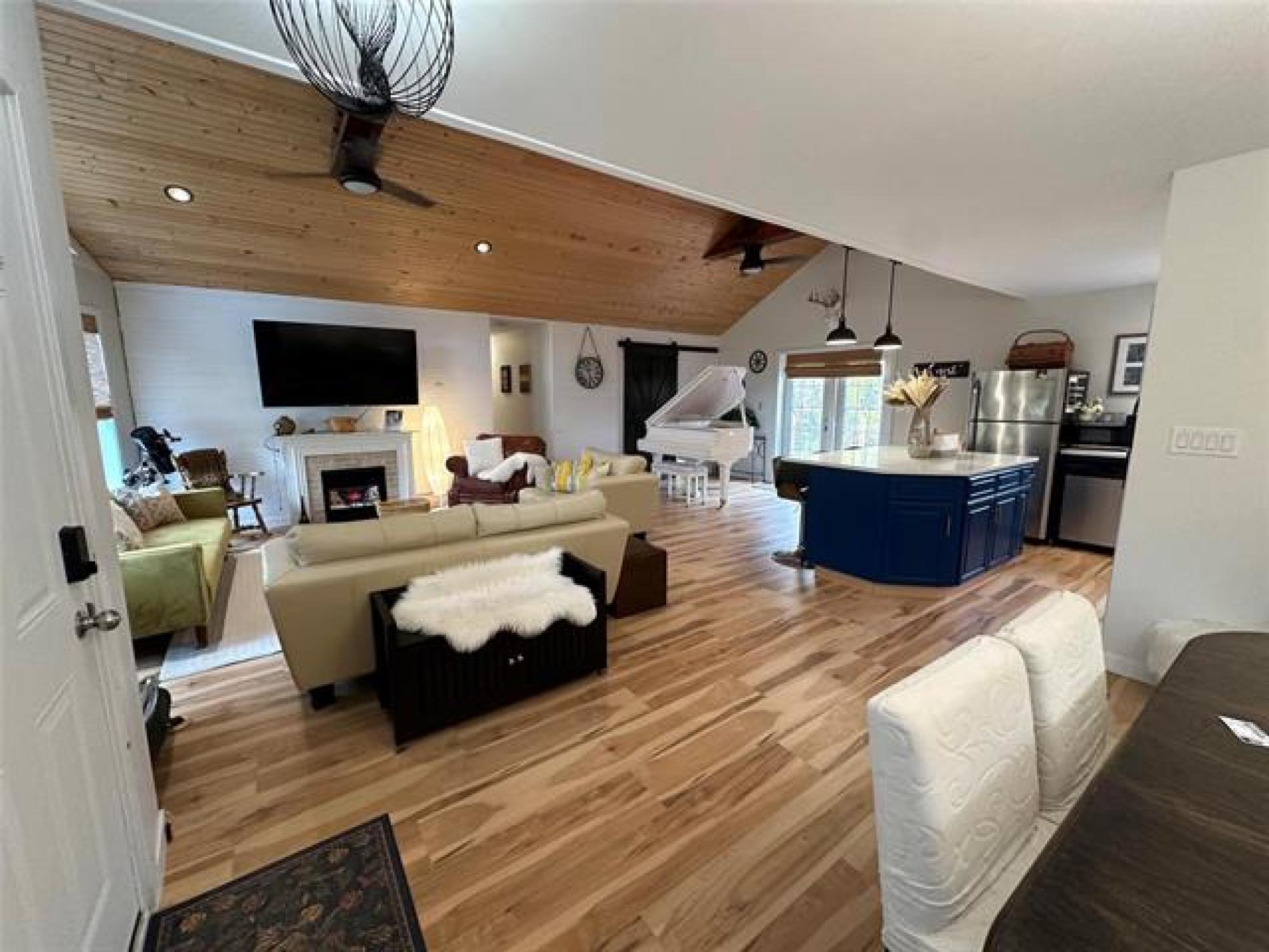 Just like new! Started in 2018, but just completed recently!! Absolutely gorgeous, with vaulted pine ceilings and quartz countertops. Built to code on a poured concrete footing, with 2x6 construction, Drilled Well, Steel roof, Forced air Furnace and Central A/C. This 1200 square foot, 3 bedroom, 2 bath home or cottage features a wide open plan with a sunroom/ entrance that opens in to the Living/Dining Room and Kitchen, and Garden doors to the Huge Composite deck and spacious rear yard, complete with kids play equipment and Firepit area. Did I mention that this is a one acre corner property only 1 block from the lake??!! Theres a composite deck on the front as well, wired overflow parking for an RV or 2 if company shows up! So Much Value! A Must See!!