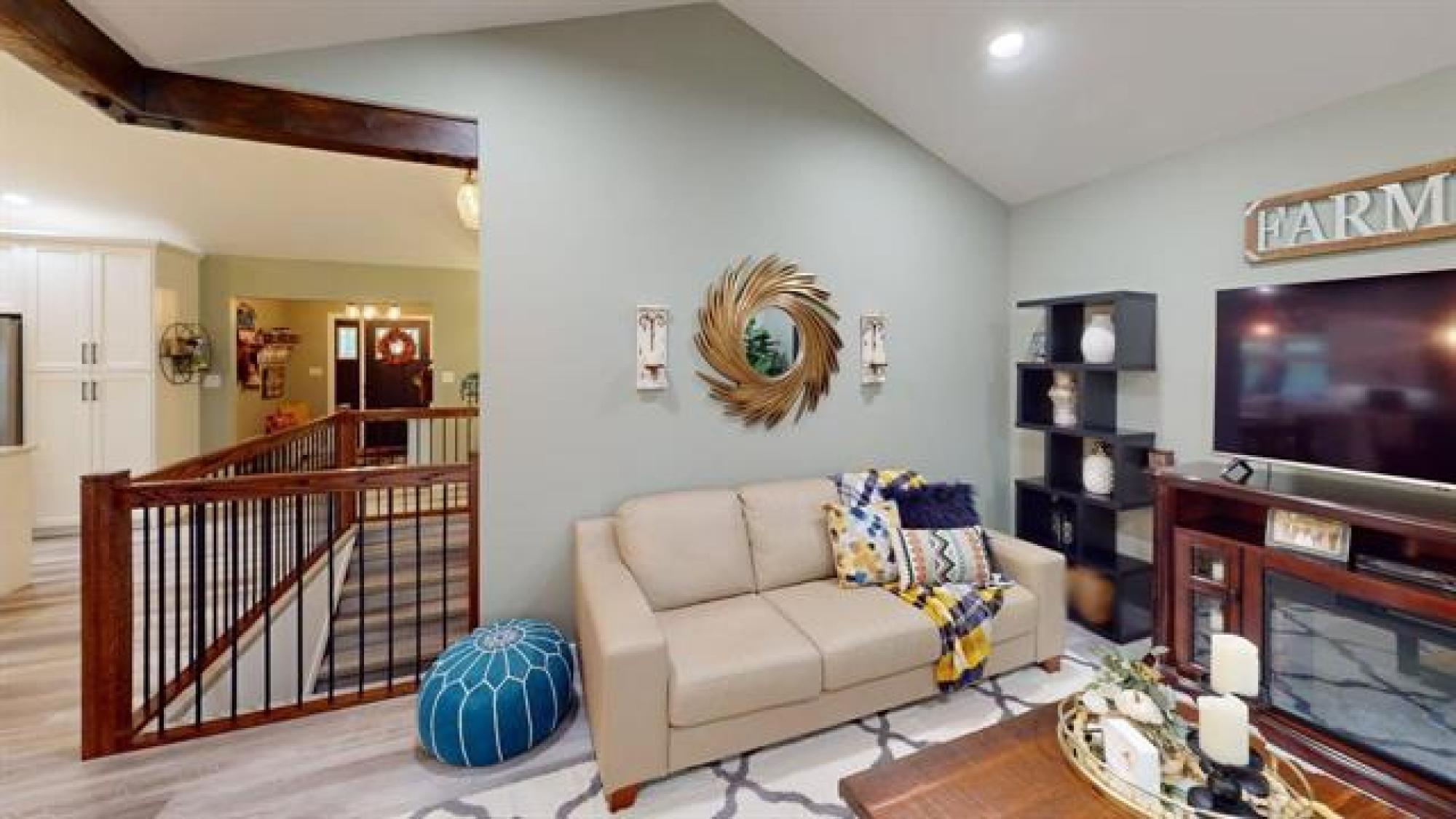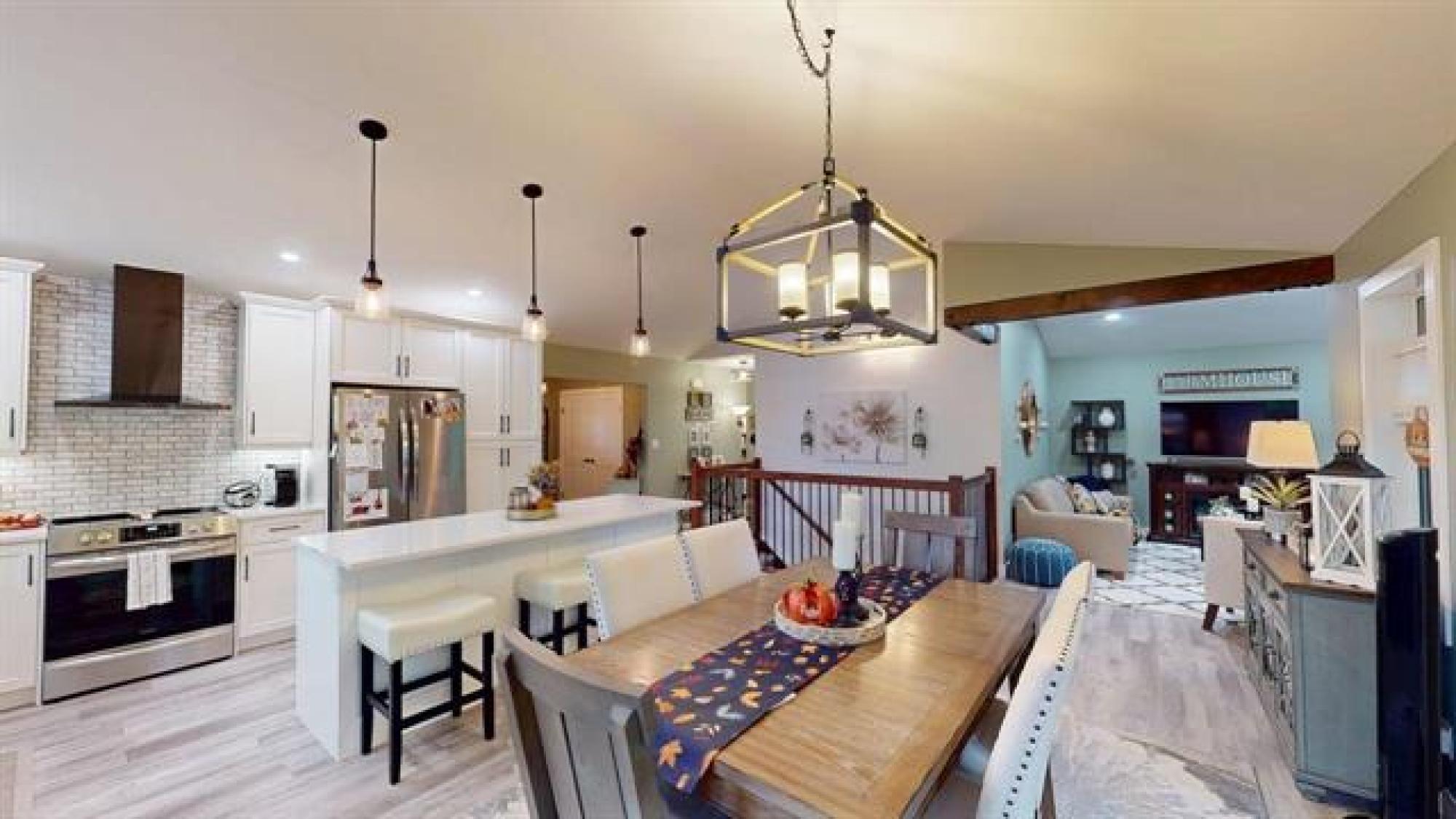 1738 sqft 3 bed 2 bath home is sure to impress the moment you walk in the door with the grand entry with a tray ceiling - attention to detail around every corner. Spacious kitchen with large island - Quartz counters through the home. an abundance of cabinets. Garden doors off of the dining room lead on to a covered back deck with maintenance free composite decking - worry free. Large laundry mudroom with laundry sink, closets and pantry area.. An aboundance of storage on the main floor. Primary becroom with 2 closets - one a walk in.. large 3 piece bath with walk in tiled shower is sure to impress. Garage is heated with gas heater to keep the car toasty warm. Partially finished lower level is insulated and drywalled perimeter with 9' CEILINGS awaiting your final development. Front of the home has a large concrete parking pad for the cars. Maintenance free home on the outside. Accents in this home are a must see. Make sure you check out the Virtual 3D tour - you will be impressed of the details. Call to book your personal walk through today. Dont let this gem slip away. Worry free living for years to come with a newer build. Measurements +/- jogs.