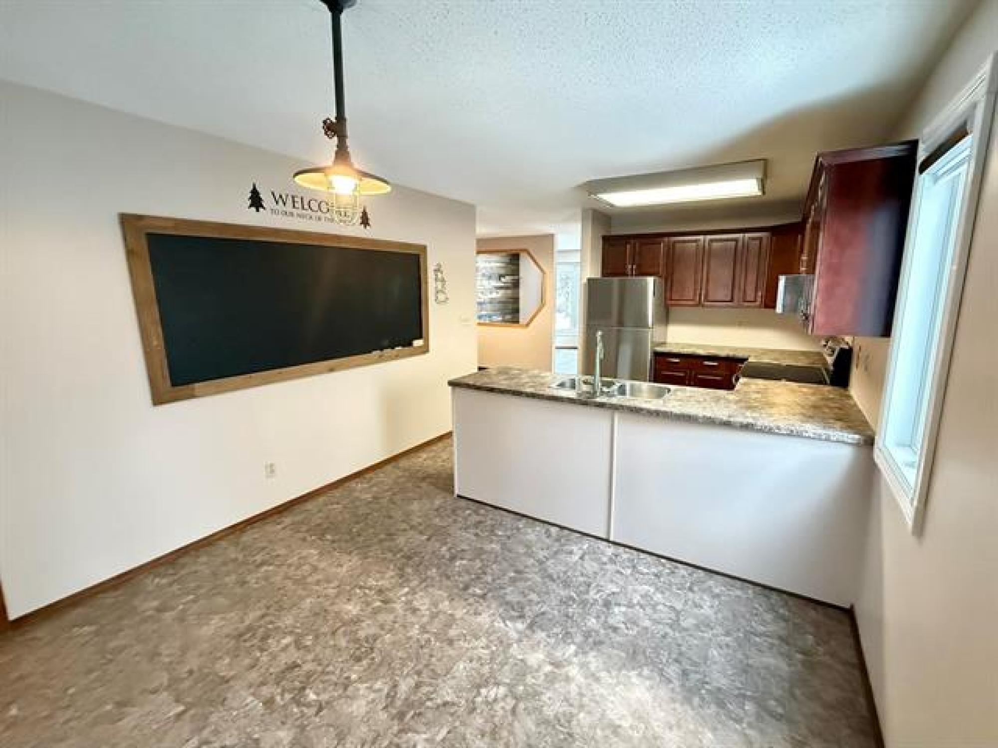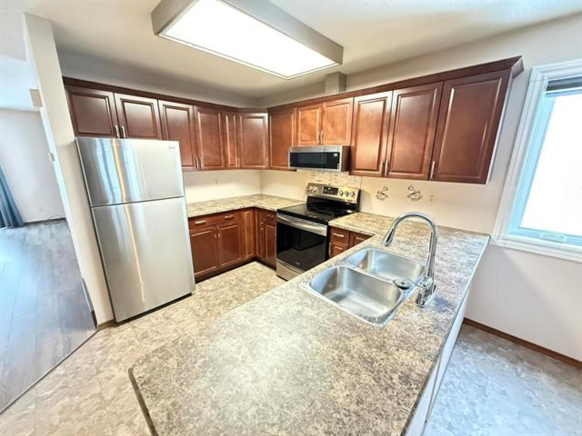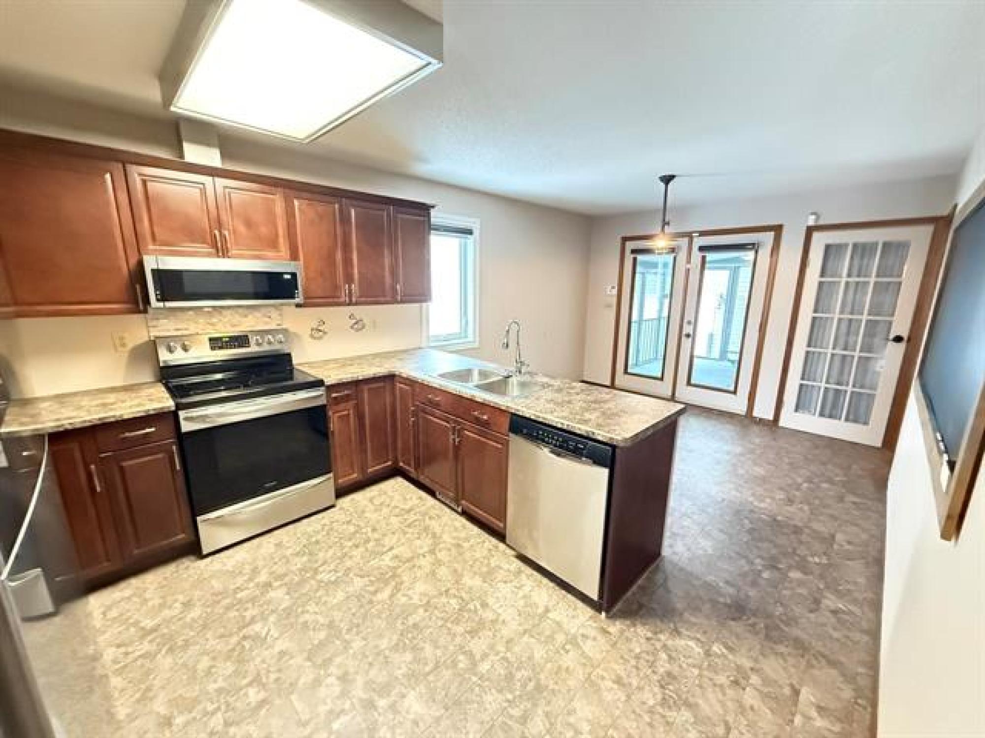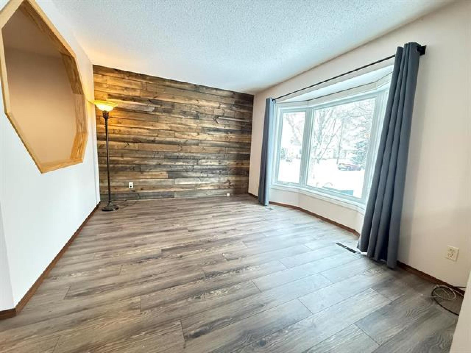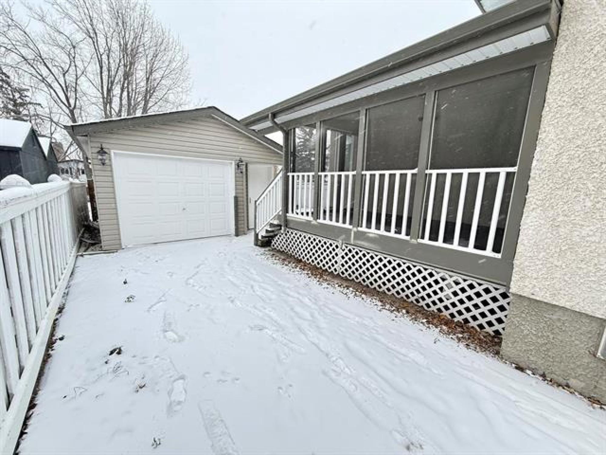 Showings start now, OTP Dec 14. Fantastic updated 985 sq ft bungalow home in Dakota Crossings/River Park South. 2 bedroom plus one in finished basement. Cozy wood panel feature wall in living room with newer bay window and open staircase. Dining room/flex space that can be a dining or office. Upgraded kitchen is spacious, with lots of cabinets, stainless steel appliances and peninsula counter. The dinette area has plenty of room for a good sized table and double doors. The dining space leads onto a great screened in deck area that overlooks the quiet backyard. The Primary bedroom is a generous size with corner pvc windows. The basement is fully developed with a large recroom, with corner stone faced gas fireplace. The basement bedroom is spacious with a drywall window for brightness. There is also a large second spacious bathroom with jetted tub and separate shower. There is an oversized single detached insulated garage and good sized south facing backyard with privacy. This home has incredible opportunities and is a great home to make your own. Easy to view!