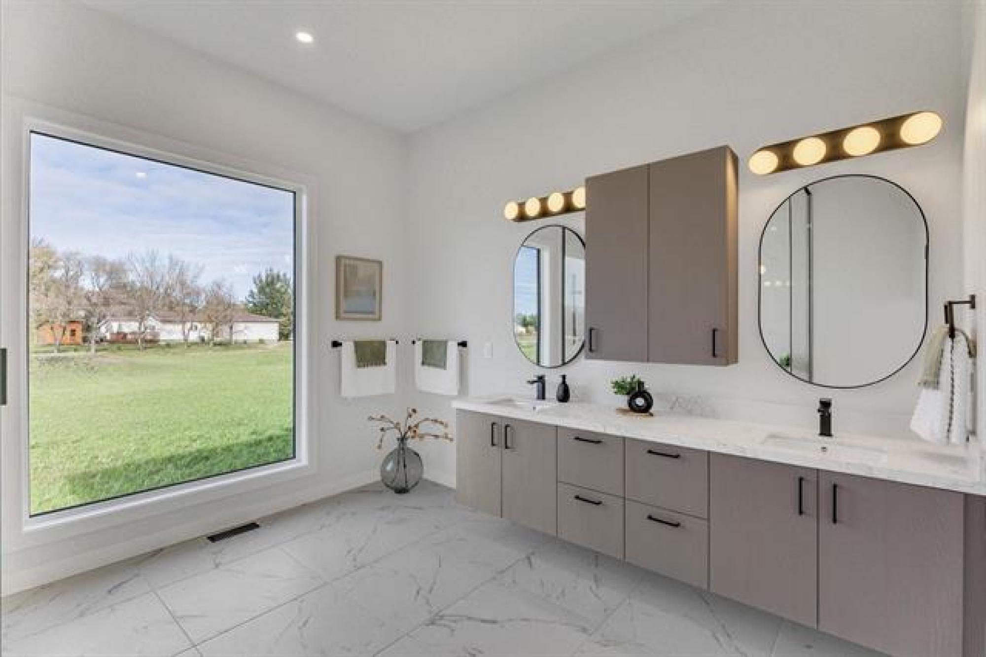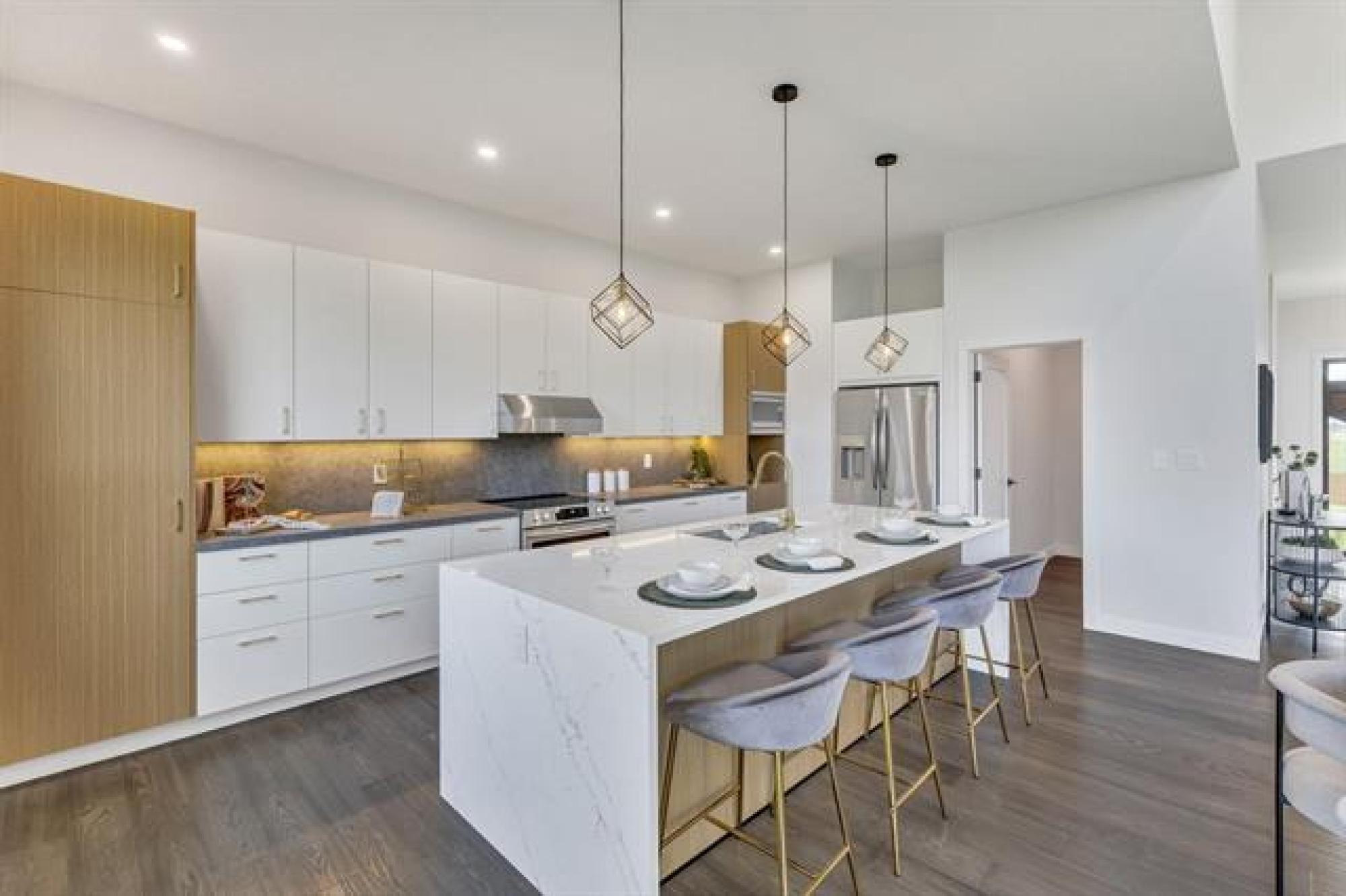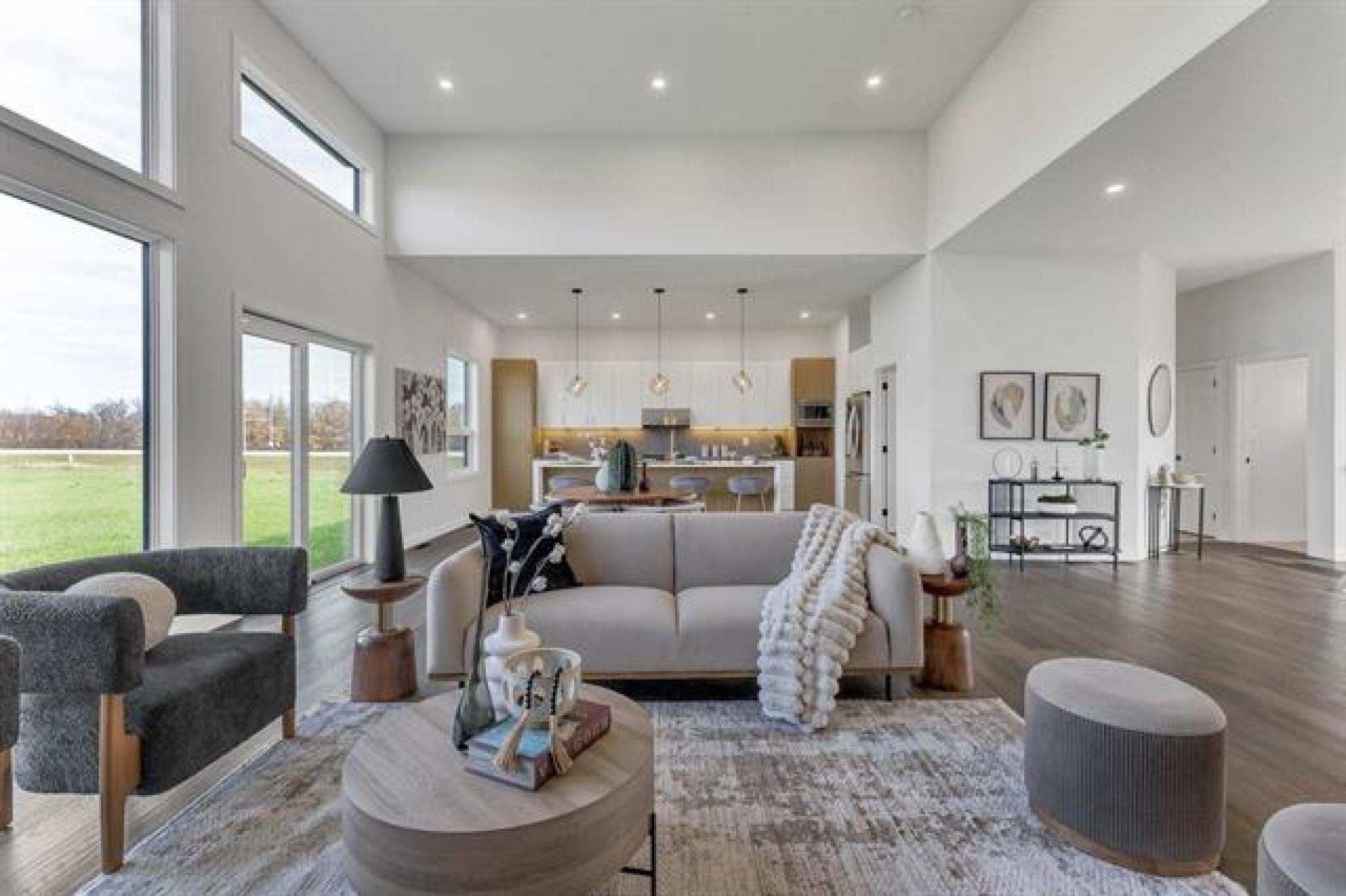 SS now. Offers reviewed as received. Welcome to your dream home located in Grand Pointe. This stunning brand-new 2450 sf 3 BR, 2.5 bath bng is nestled on a serene 2 acre lot, offering the perfect blend of luxury, space & tranquility. Only 8 min to Wpg this home will not disappoint even the fussiest buyer. You will be impressed w/the engineered hwfs that is paired w/sleek ceramic tile throughout. Oversized wdws flood the home w/natural light. Culinary kit w/9 ft quartz island, waterfall, quartz counters, 4 SS appl & walk-in pantry. A gorgeous feature wall w/elect FP creates a focal point for cozy evenings & stylish entertaining in the spacious GR w/14 ft ceiling. Large primary suite w/a stunning feature wall, spa-inspired ensuite w/huge walk-in shower/luxury heated flrs in the ensuite & WICC. Main flr office, laundry rm, 2 pce bath & walk-in closet of garage entrance. You will be impressed w/the huge 42x36 insulated garage w/13 ft ceiling that can accommodate an RV. This house is a masterpiece of craftsmanship/comfort & delivers on every level. Other features incl 2 HEF furnaces, 2 HRV, sump pump, built on piles, triple-pane wdws & more. Conveniently located across the street from the community centre!