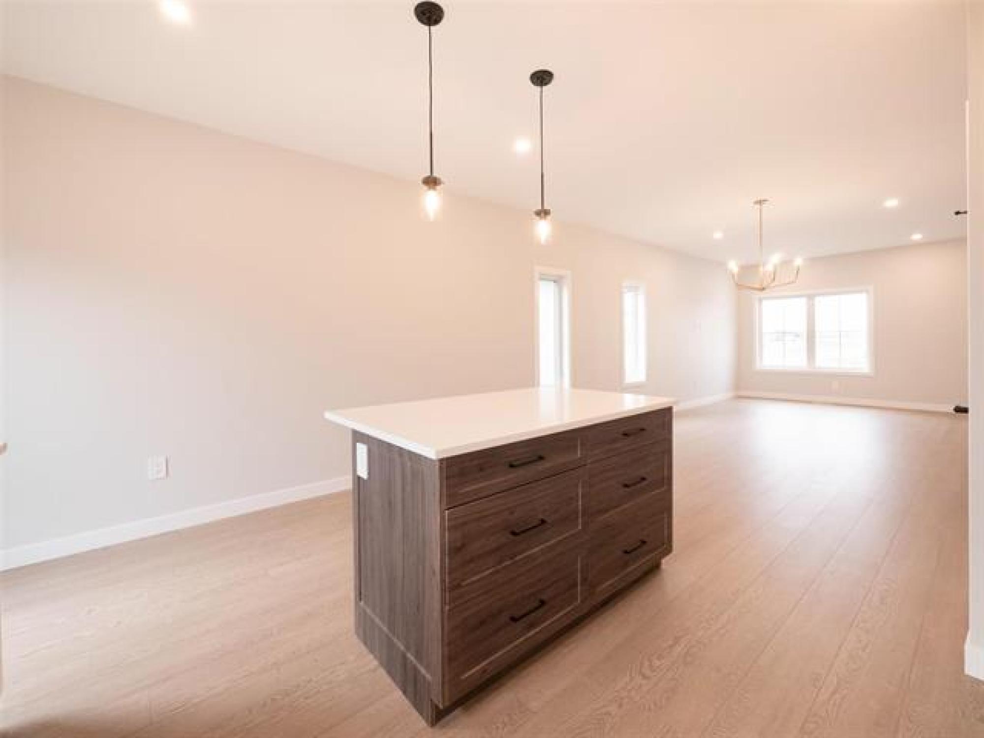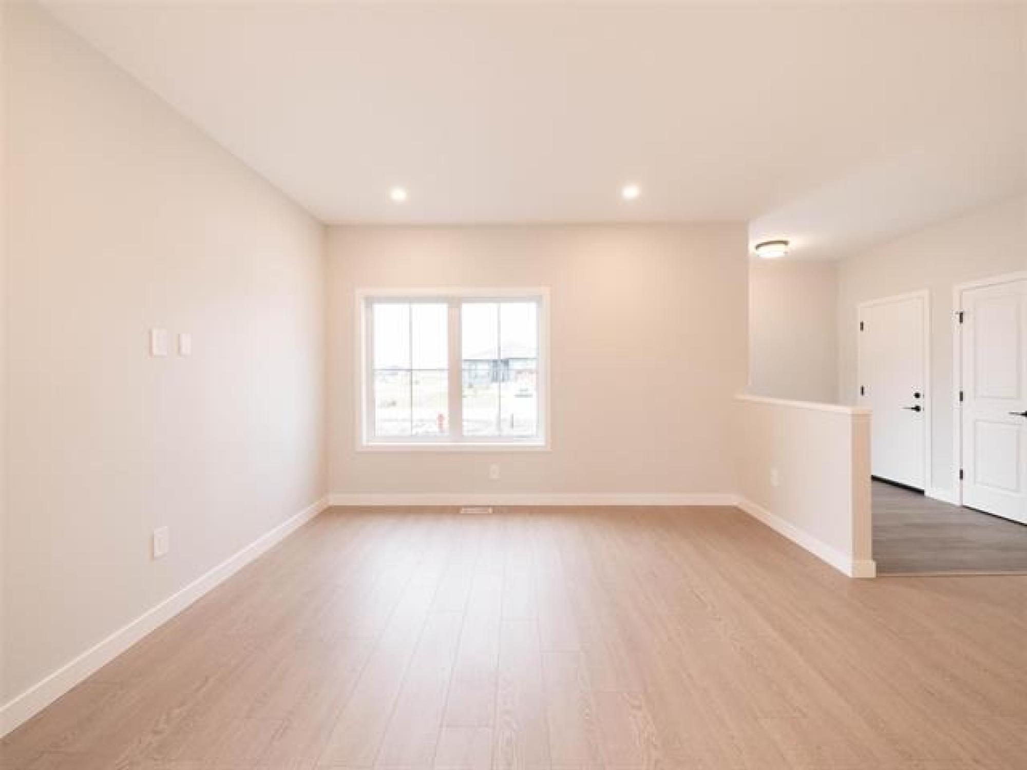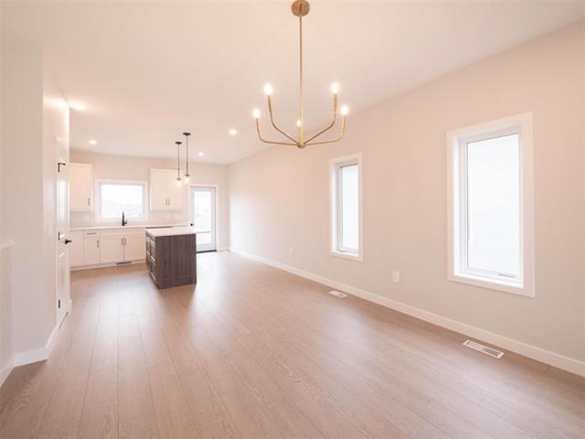 Showings start now, Offers As Received! Custom-built by Connection Homes! Welcome to 33 Gleneagles Street in the The Highlands, Niverville MB's most desirable new development! This 1392 SqFt Bungalow has a fantastic floor plan & is the perfect starter, downsize or family home! As you enter, you are greeted by a large front foyer w/ample coat closets & access to the double-attached garage! 9ft main floor ceiling, Large living/dining room, perfect for the growing family & entertaining! The kitchen offers tons of counter space w/quartz countertops, custom cabinets with soft close hardware, a food storage cabinet tower/pantry, large island, & more! LED potlights inside & outside. 3 large bedrooms incl the large master bedroom w/walk-in closet & 3-pc ensuite bath! The price includes the lot, GST, concrete driveway & walkway, central air, built on piles & more! Situated on a south-facing backyard lot w/developer fence installed at the back + green space on the other side! Call today for more info! Always happy to help!