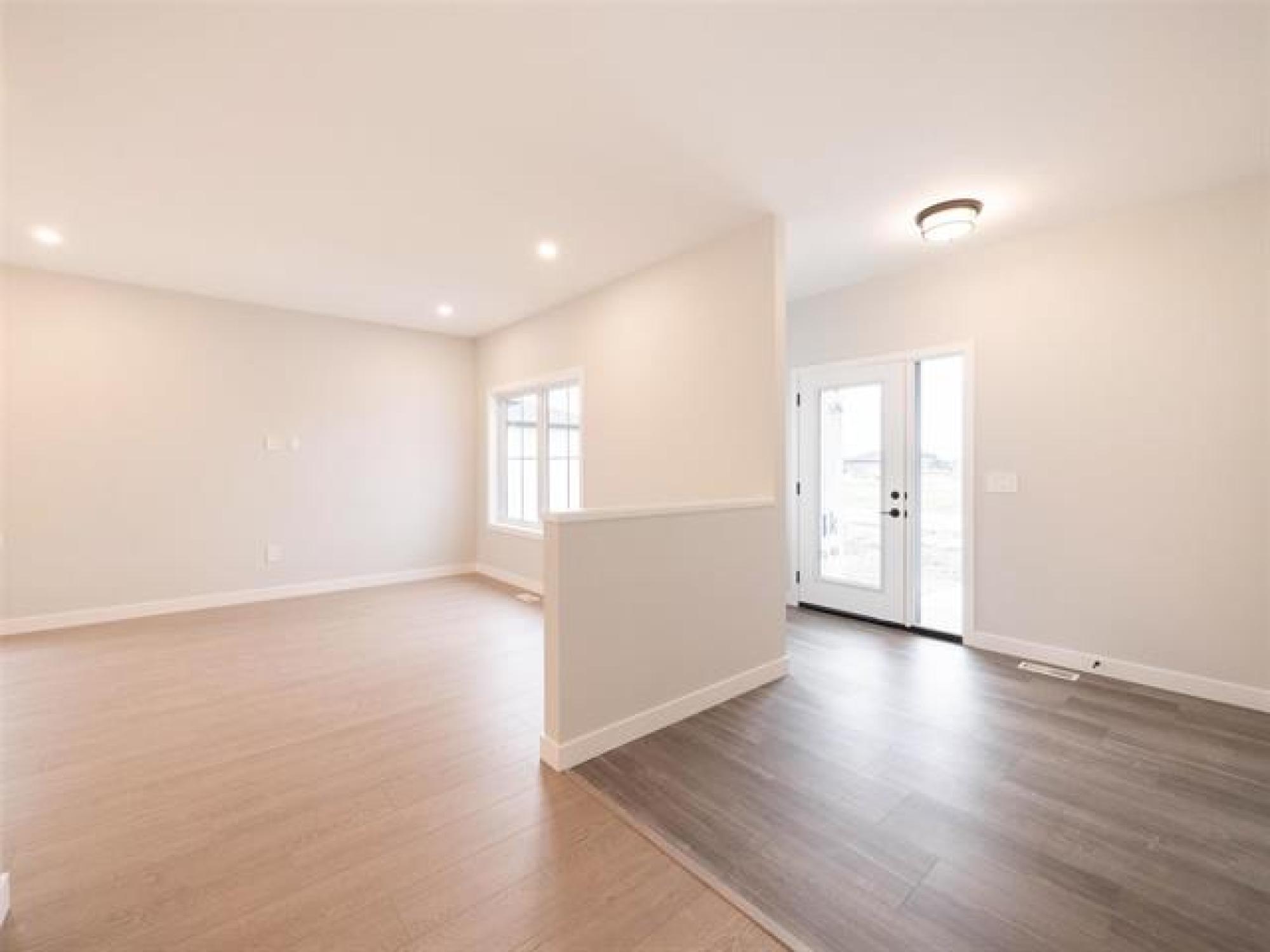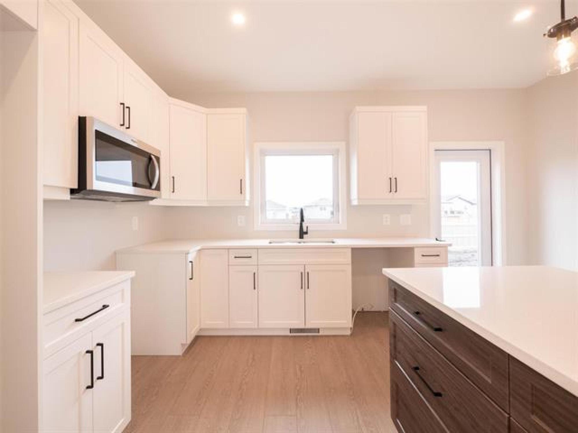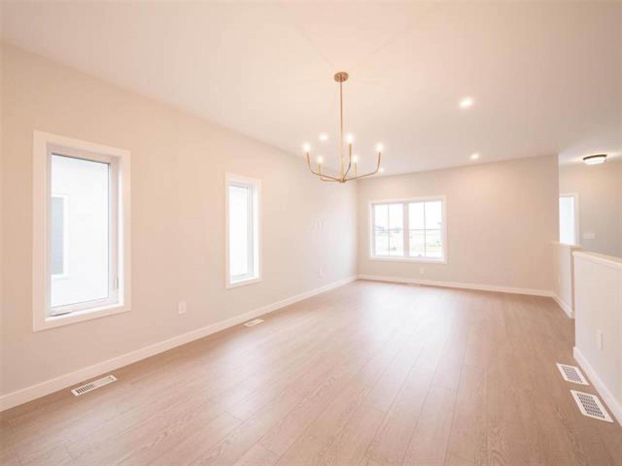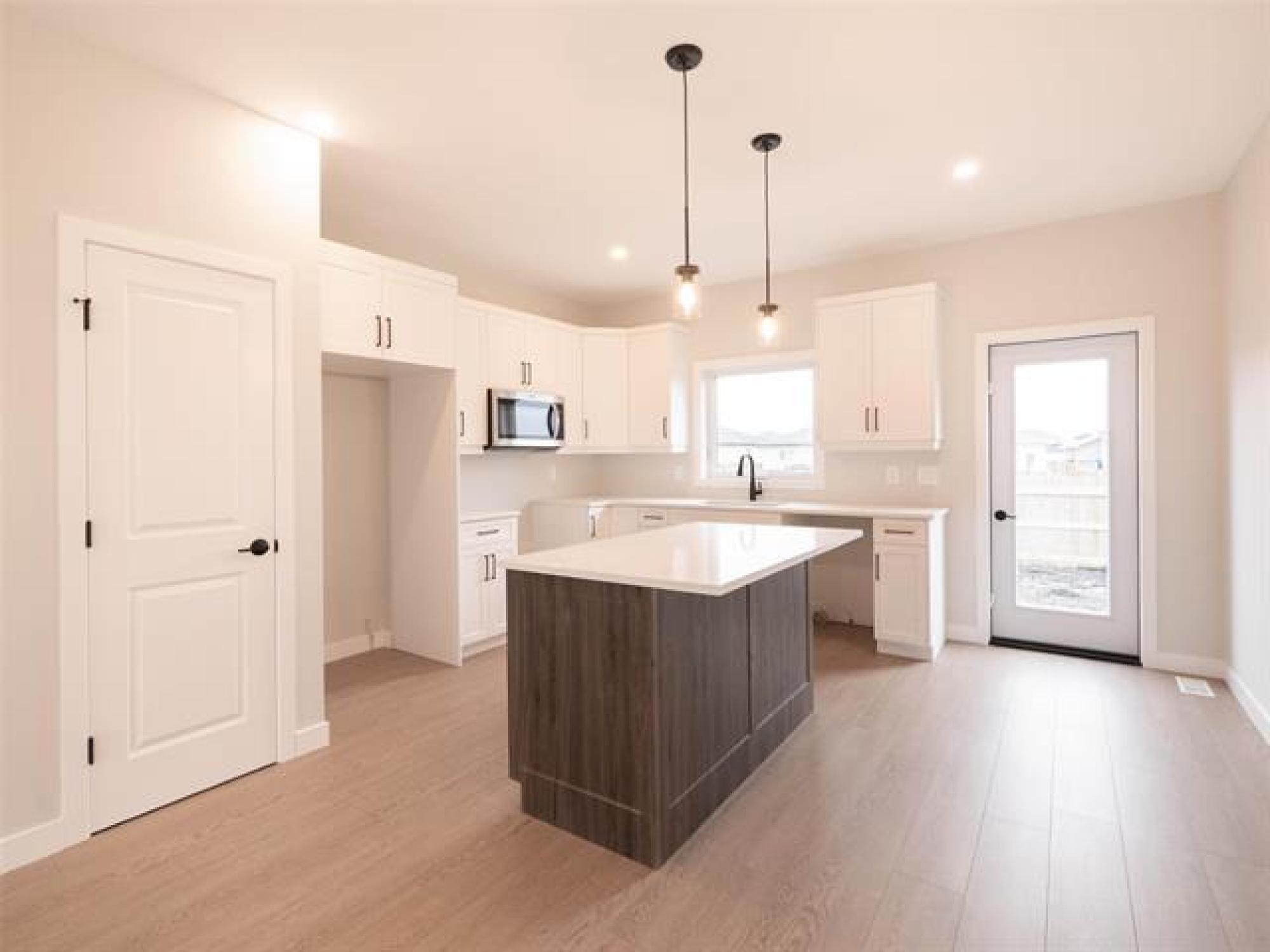 Showings start now, Offers As Received! Custom-built by Connection Homes! Welcome to 33 Gleneagles Street in the The Highlands, Niverville MB's most desirable new development! This 1392 SqFt Bungalow has a fantastic floor plan & is the perfect starter, downsize or family home! As you enter, you are greeted by a large front foyer w/ample coat closets & access to the double-attached garage! 9ft main floor ceiling, Large living/dining room, perfect for the growing family & entertaining! The kitchen offers tons of counter space w/quartz countertops, custom cabinets with soft close hardware, a food storage cabinet tower/pantry, large island, & more! LED potlights inside & outside. 3 large bedrooms incl the large master bedroom w/walk-in closet & 3-pc ensuite bath! The price includes the lot, GST, concrete driveway & walkway, central air, built on piles & more! Situated on a south-facing backyard lot w/developer fence installed at the back + green space on the other side! Call today for more info! Always happy to help!