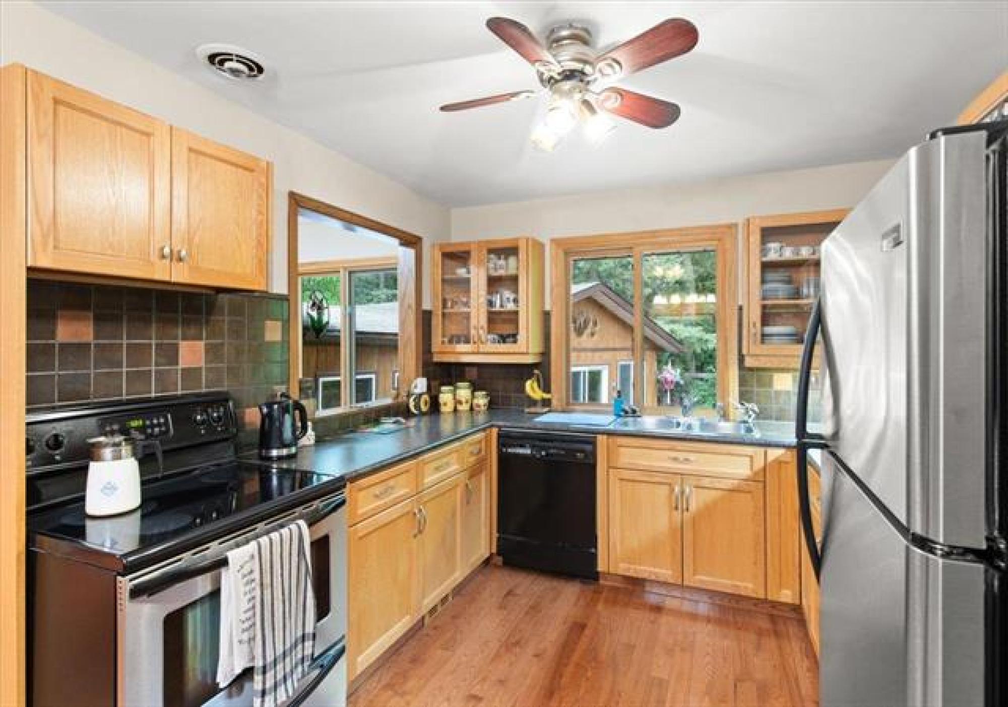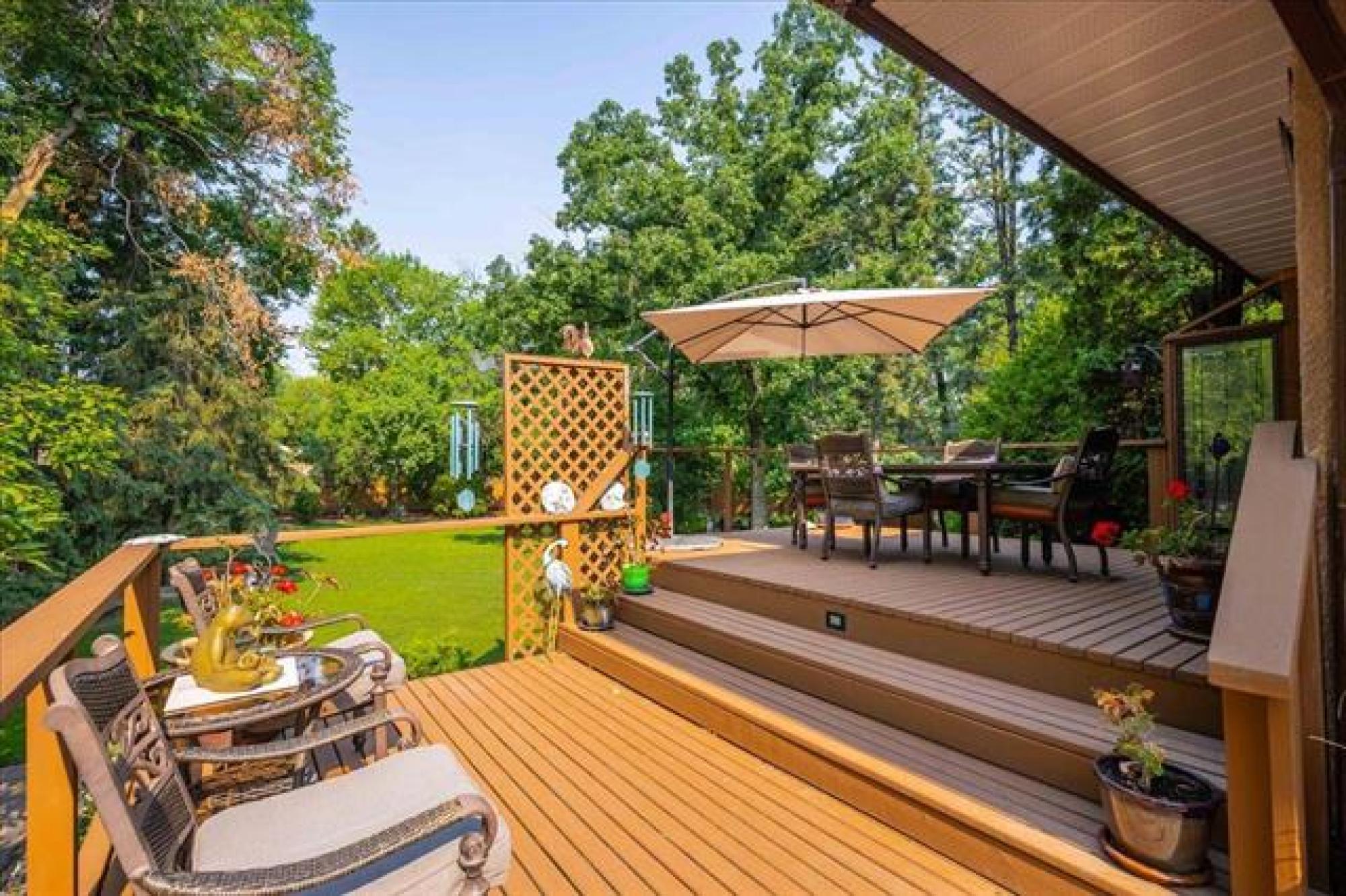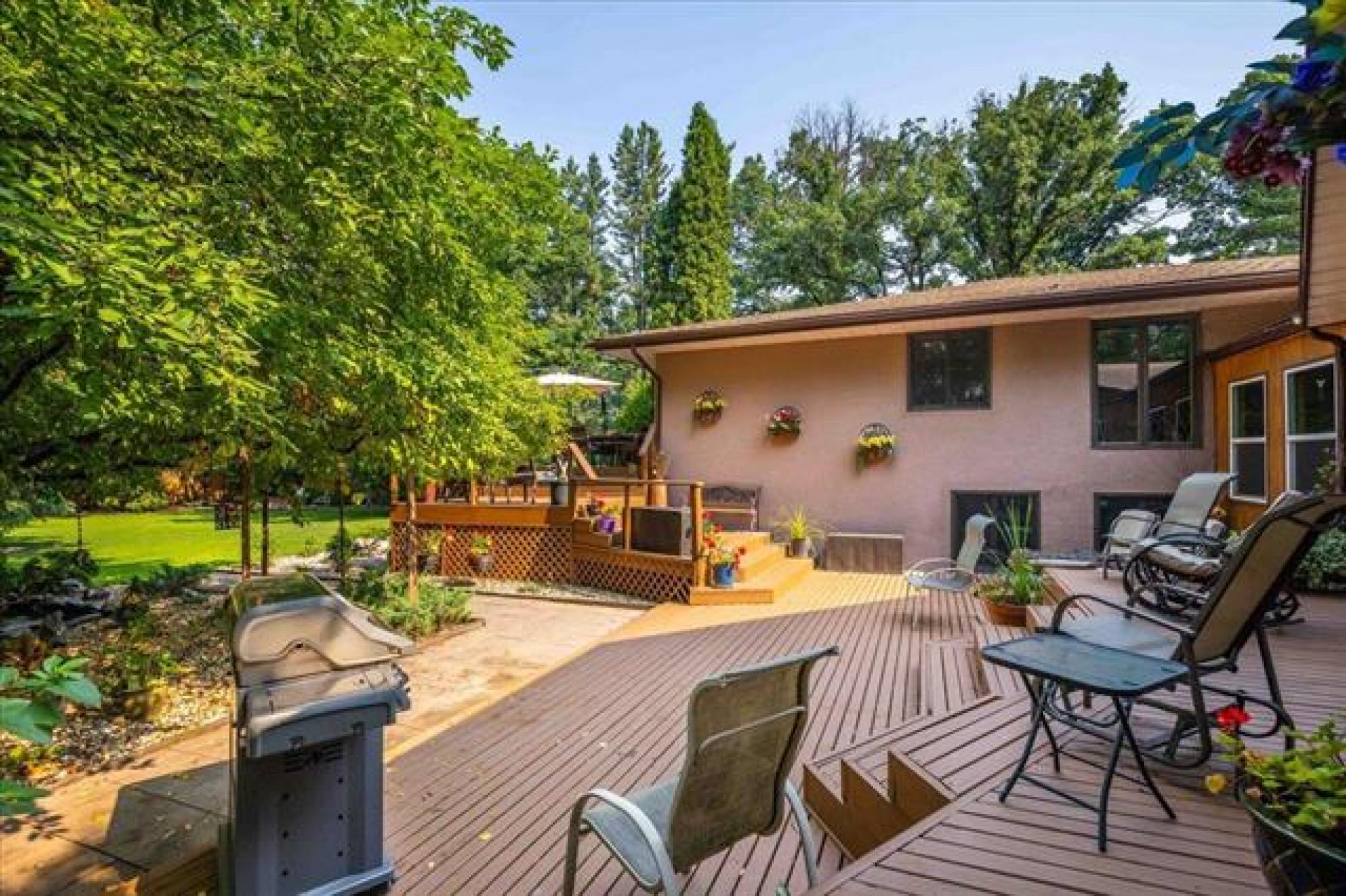 Welcome to one of the most beautiful lots in Winnipeg, this 1836SqFt bi-level home offers a rare combination of space, natural beauty, & modern upgrades. Nestled on over half an acre of land, the property features mature trees, 2 serene ponds, 3 sheds, patio area & firepit area, an oversized tiered deck, & is fully fenced—perfect for outdoor enjoyment and entertaining. Inside, both levels of the home are bathed in natural light. The main floor boasts a spacious layout with hardwood floors, an eat-in kitchen, a formal dining area, spacious living room, wood burning fire place, primary bedroom, & remodeled bathroom with heated tile flooring. The lower level includes 2 additional bedrooms, large rec room, laundry room, utility room & remodeled bath featuring heated tile floors & a relaxing steam shower. Built ahead of its time, structural wood floor with a poured concrete pad. Additional upgrades include shingles, high-efficiency furnace, central air A/C, hot water tank, 200amp service & modern paint. The home also offers a double attached garage with 60amp sub panel, U-shaped driveway. This is an opportunity to own an incredible property in the heart of Charleswood