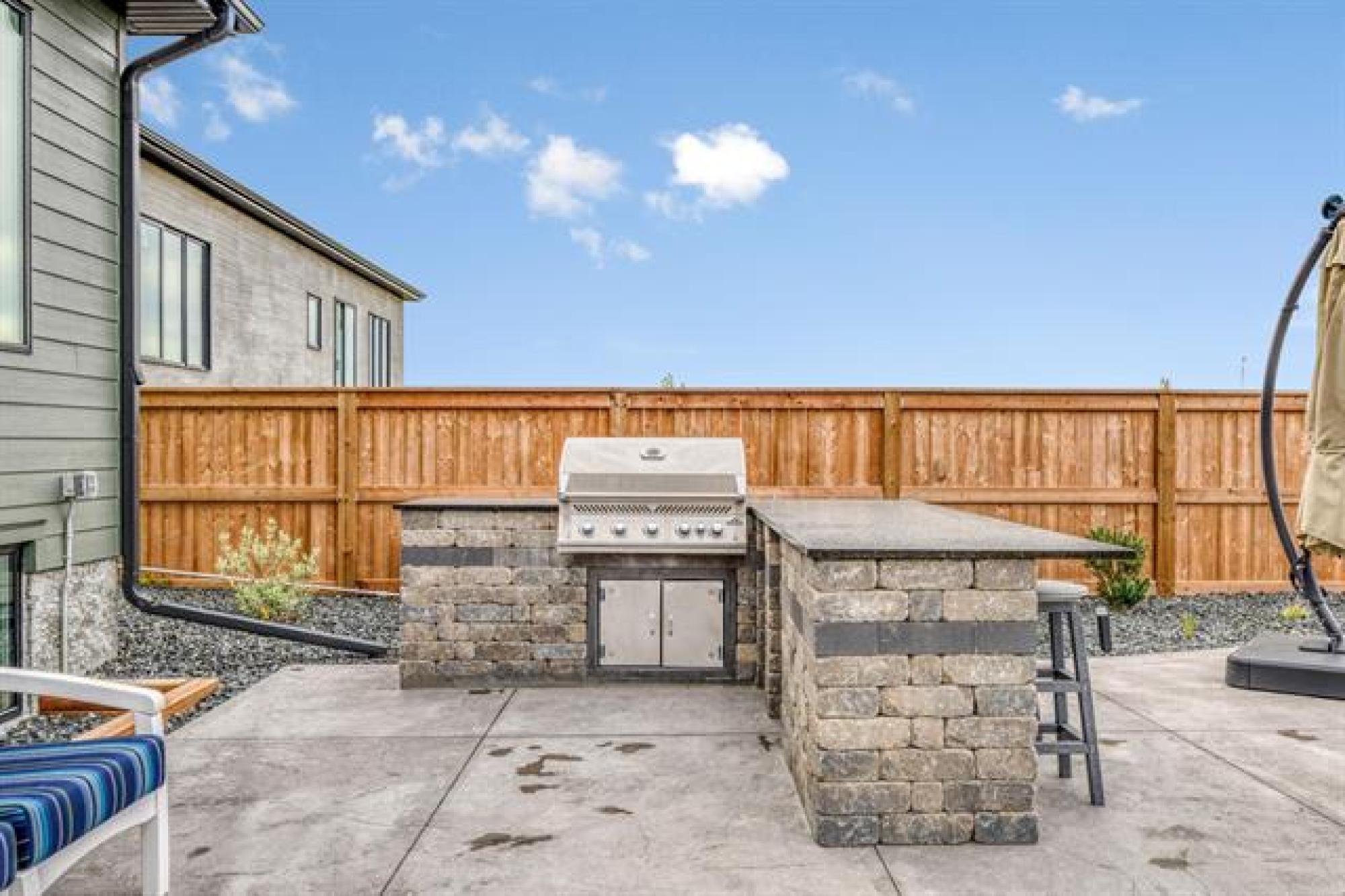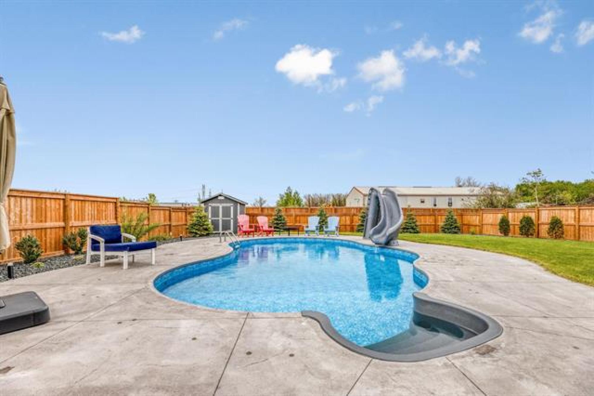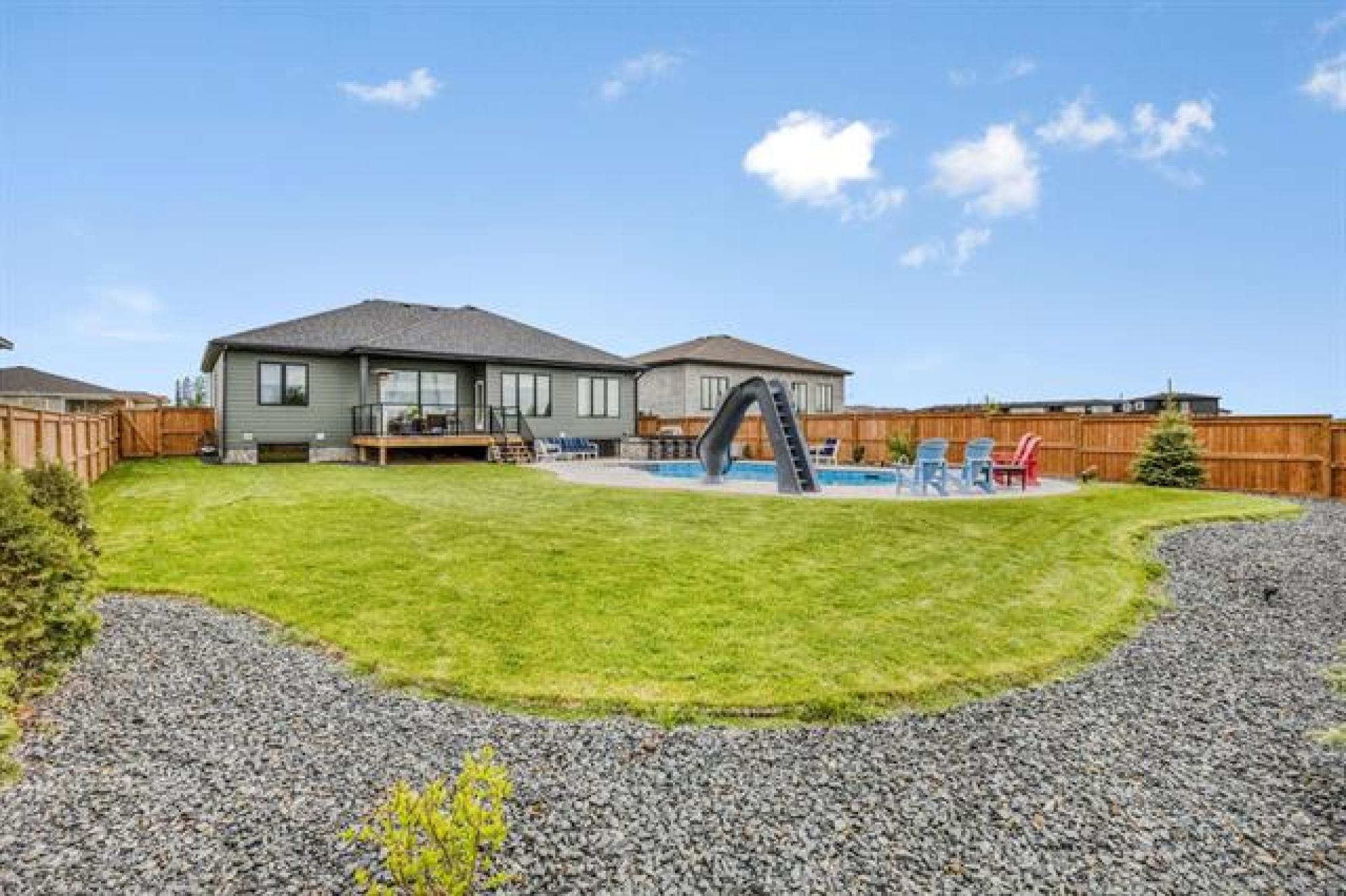 SS now, OPEN HOUSE SUN NOV 29 1-3PM Offers as Rec'd A former showhome, this luxurious bungalow offers a great room with 10FT ceiling and linear FP. The DR can comfortably sit 8-10 with direct access to the backyard. You'll love the kitchen with ceiling-height cabinets, island, quartz counters and professional grade appliances. The space has a natural flow and is accented by custom lighting. Split bedroom floor plan with the primary bedroom and deluxe ensuite on one side, and 2 bedrooms and main bath on the other. The primary bed can fit a California King and is complemented by an EXQUISITE ensuite bath with custom tile, double vanity, heated tile flr. Main floor laundry is spacious and practical. Expansive basement maximizes development potential for 2 beds, bath and recroom. High ceilings, steel beam, engineered floor joists, piles, 200amps. Fully landscaped backyard with mature trees, heated salt water pool (2023), outdoor kitchen, stamped concrete and fully fenced; excellent for kids and pets. All on a 70ftx207ft lot in a desirable and aesthetic neighbourhood with MUNICIPAL WATER AND SEWER. Attached garage with floor drain. Home Warranty 2028, close to all amenities. Measurements+/-