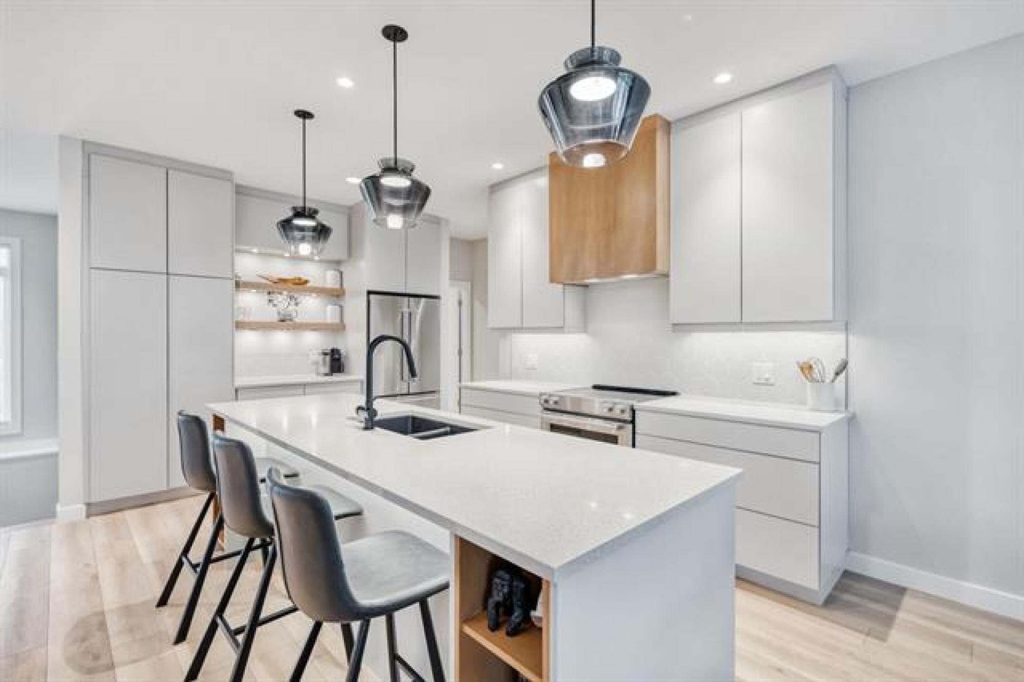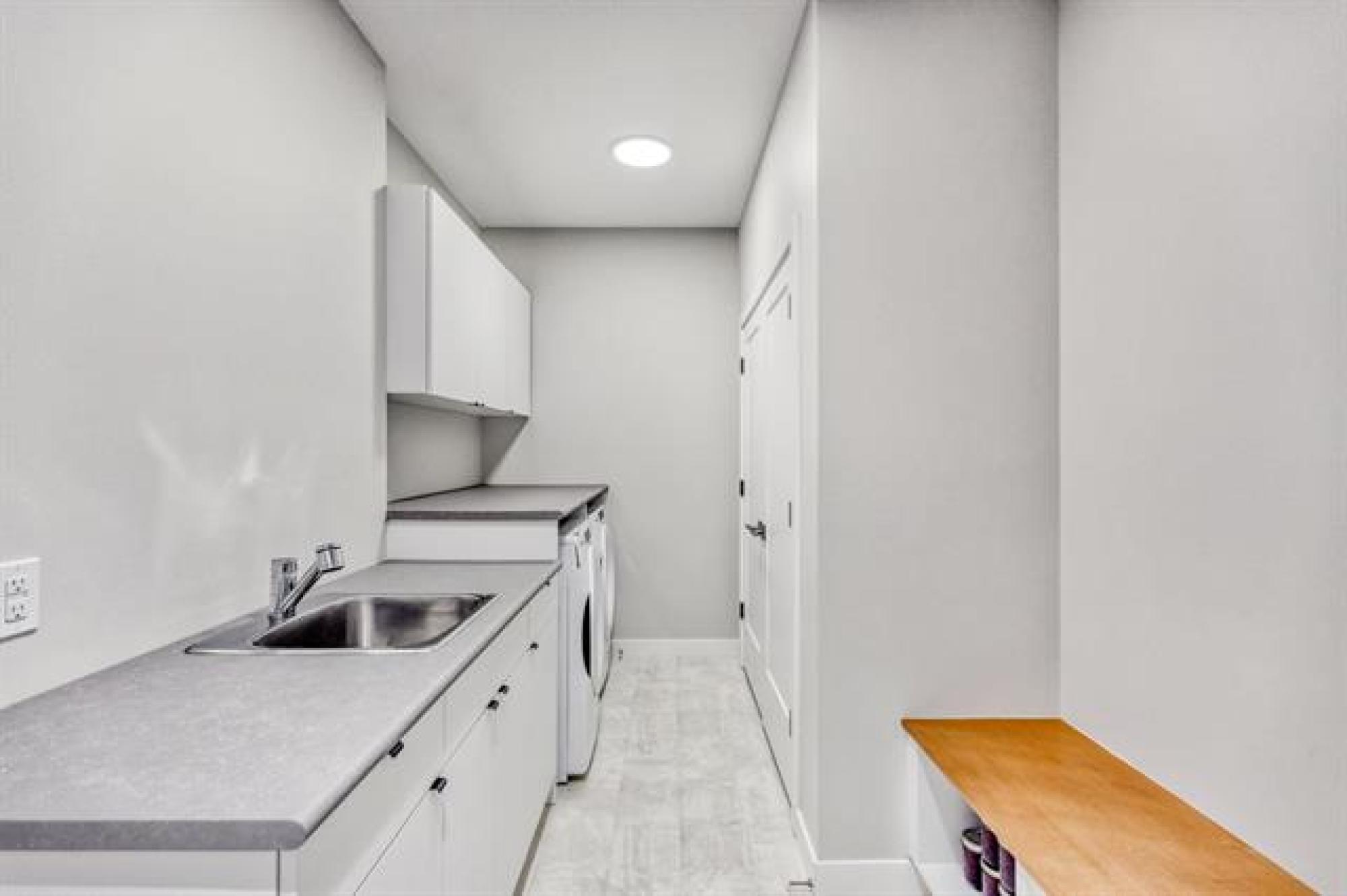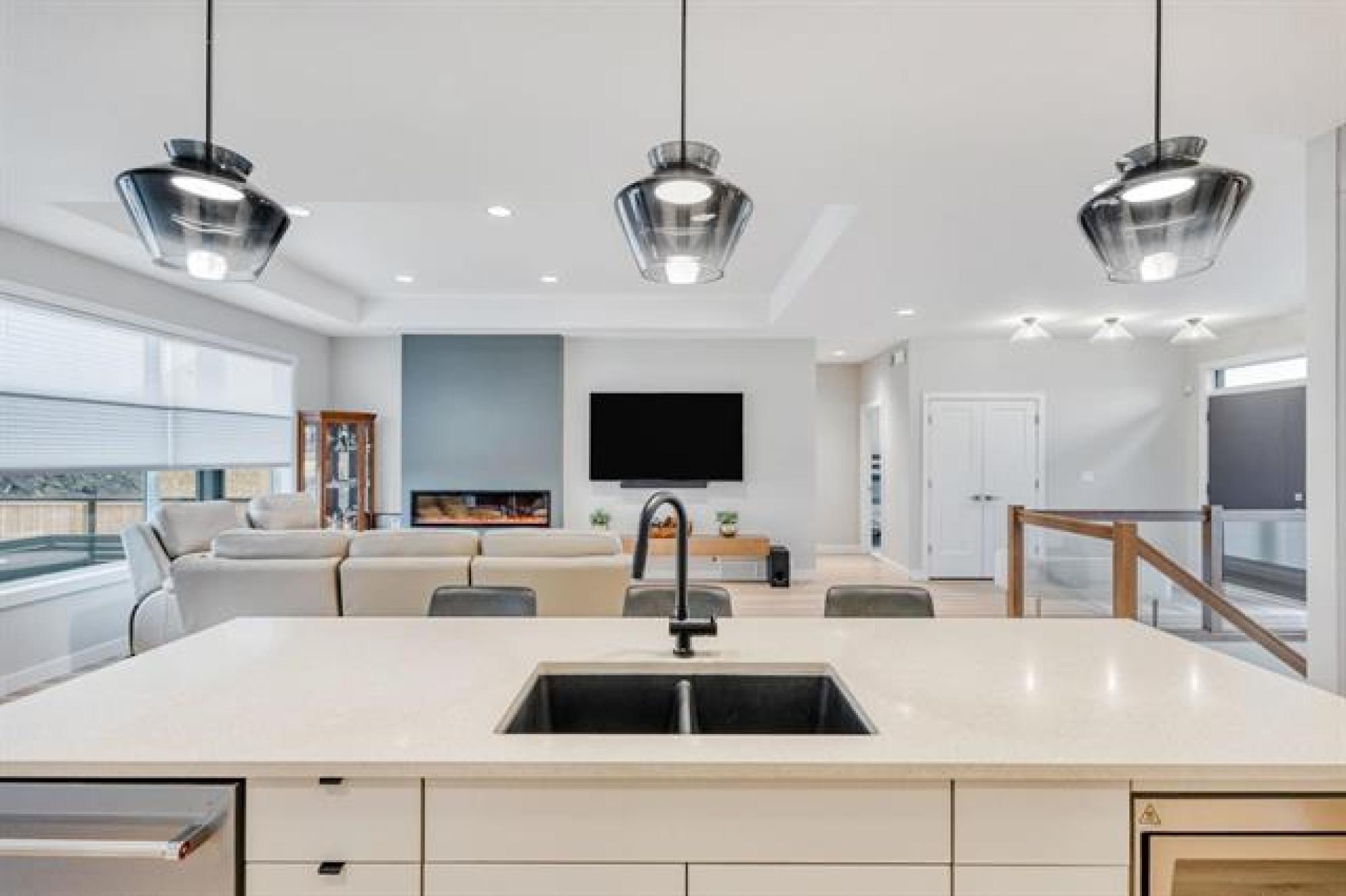 SS now, OPEN HOUSE SUN NOV 29 1-3PM Offers as Rec'd A former showhome, this luxurious bungalow offers a great room with 10FT ceiling and linear FP. The DR can comfortably sit 8-10 with direct access to the backyard. You'll love the kitchen with ceiling-height cabinets, island, quartz counters and professional grade appliances. The space has a natural flow and is accented by custom lighting. Split bedroom floor plan with the primary bedroom and deluxe ensuite on one side, and 2 bedrooms and main bath on the other. The primary bed can fit a California King and is complemented by an EXQUISITE ensuite bath with custom tile, double vanity, heated tile flr. Main floor laundry is spacious and practical. Expansive basement maximizes development potential for 2 beds, bath and recroom. High ceilings, steel beam, engineered floor joists, piles, 200amps. Fully landscaped backyard with mature trees, heated salt water pool (2023), outdoor kitchen, stamped concrete and fully fenced; excellent for kids and pets. All on a 70ftx207ft lot in a desirable and aesthetic neighbourhood with MUNICIPAL WATER AND SEWER. Attached garage with floor drain. Home Warranty 2028, close to all amenities. Measurements+/-