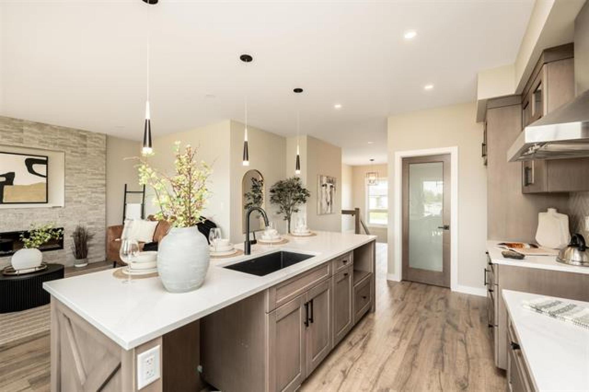Functional Foxridge Homes custom bungalow w/ 9' ceilings throughout & spacious open concept design. Offering 3 bedrooms, a triple car garage and a covered rear deck. An open main living area w/ laminate flooring thru-out, complete w/ an entertainment/fireplace in the Great room. Oversized gourmet kitchen w/ Ceasar stone quartz countertops, an island w/ breakfast bar, walk in pantry, & professionally designed kitchen cabinets. The Primary bedroom has its own oversized WIC & Ensuite - complete w/ quartz counters, luxury vinyl tile flooring, double vanity, linen closet, & cultured marble shower. Other features: Structural wood basement floors, modern LED lighting package, Delta wrap foundation, steel reinforced cast-in-place concrete 9’-0” foundation walls on cast-in-place piles, 1-2-5-10 Home Warranty Program. This home is under construction. Home/listing may not be exactly as shown in the photos.