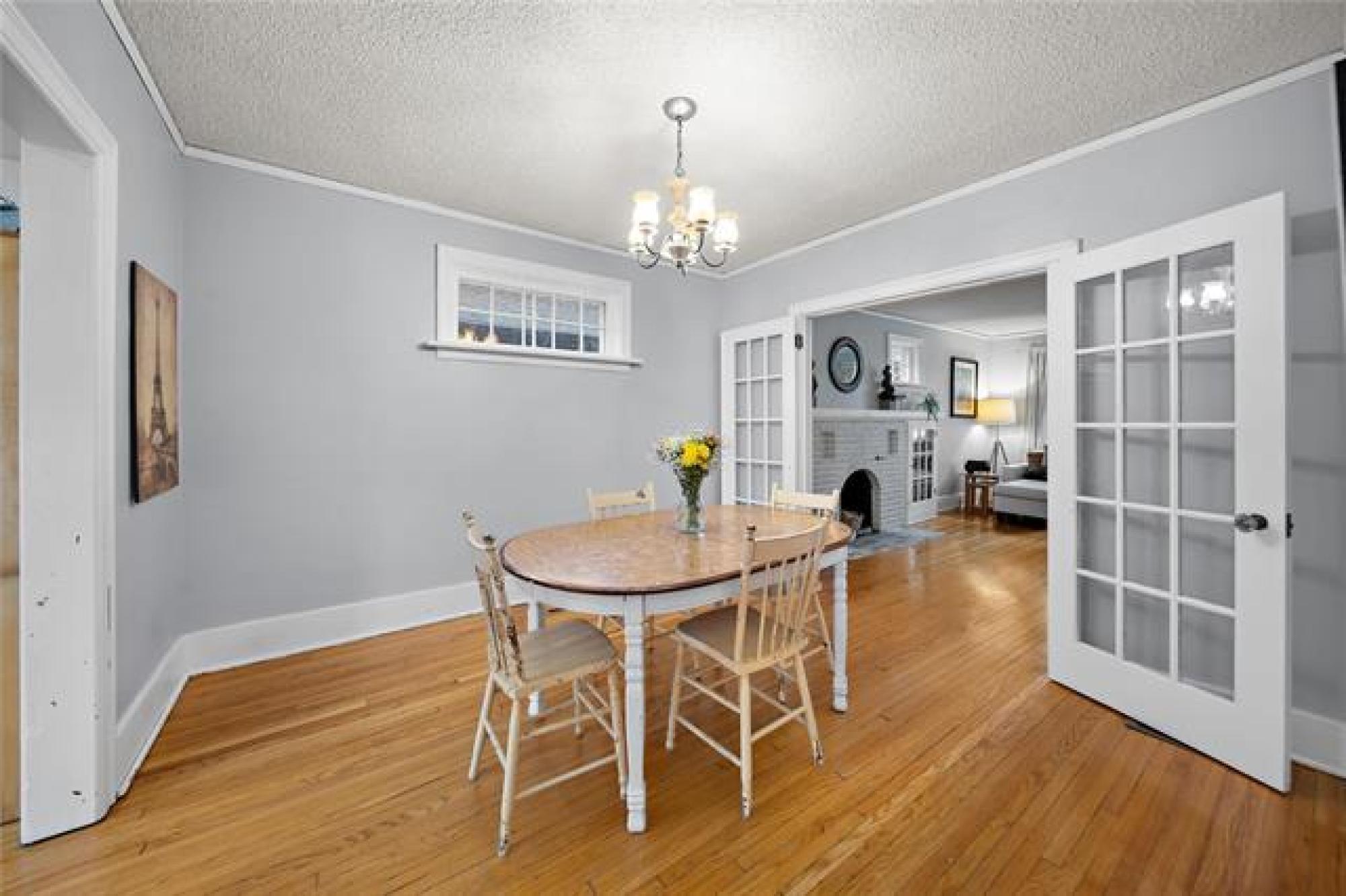 Offers as rec’d | Beautiful character starter home in desirable North River Heights, situated mid-block with a charming screened-in front porch. Main floor features 2 bedrooms + 1 bathroom, hardwood floors, updated kitchen, classic mouldings, and a traditional wood-burning fireplace accented by piano windows. French doors lead to a spacious dining room including a bright sunroom overlooking the backyard. Fully finished basement includes a large rec room, additional bedroom, 3-piece bath, and a second kitchen—perfect for potential rental income. Backyard is fully fenced with deck, hot tub, and a double detached garage. Close to all the best amenities North River Heights has to offer!