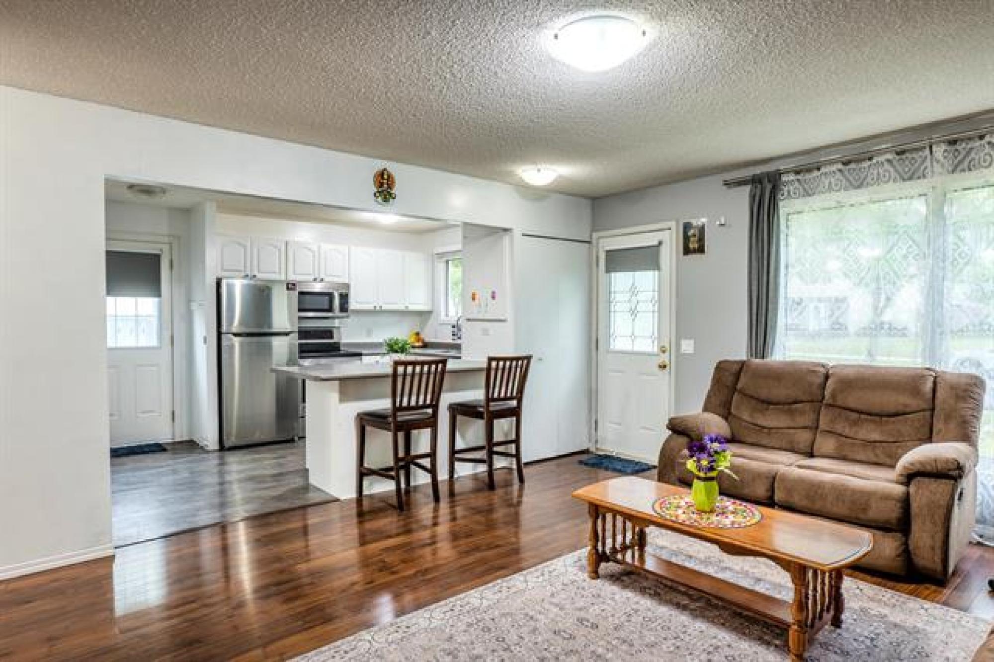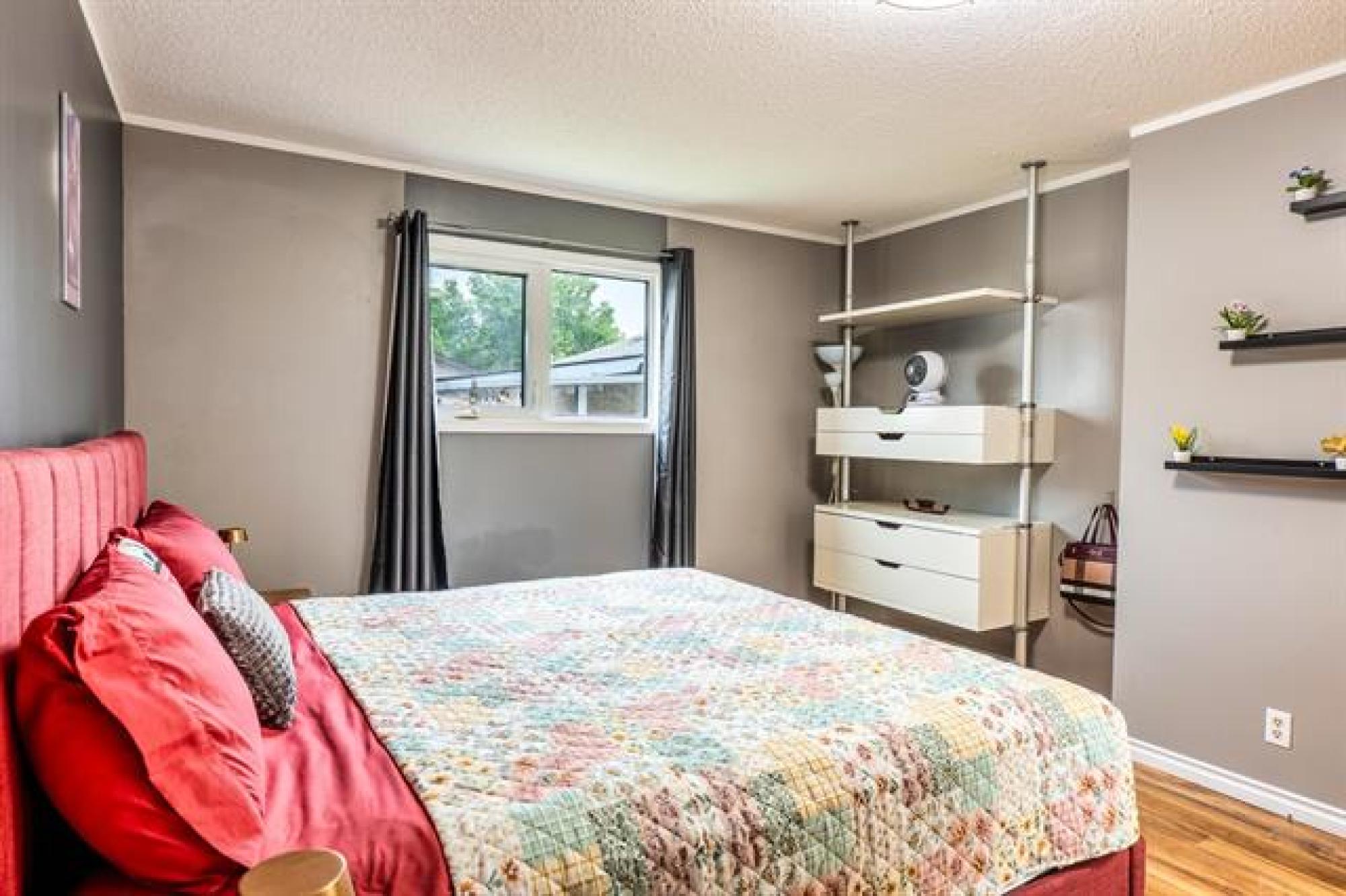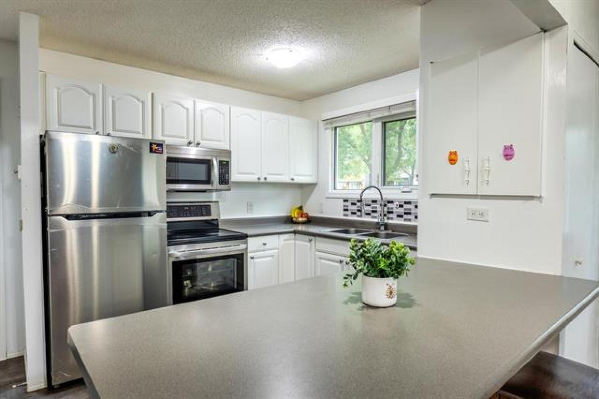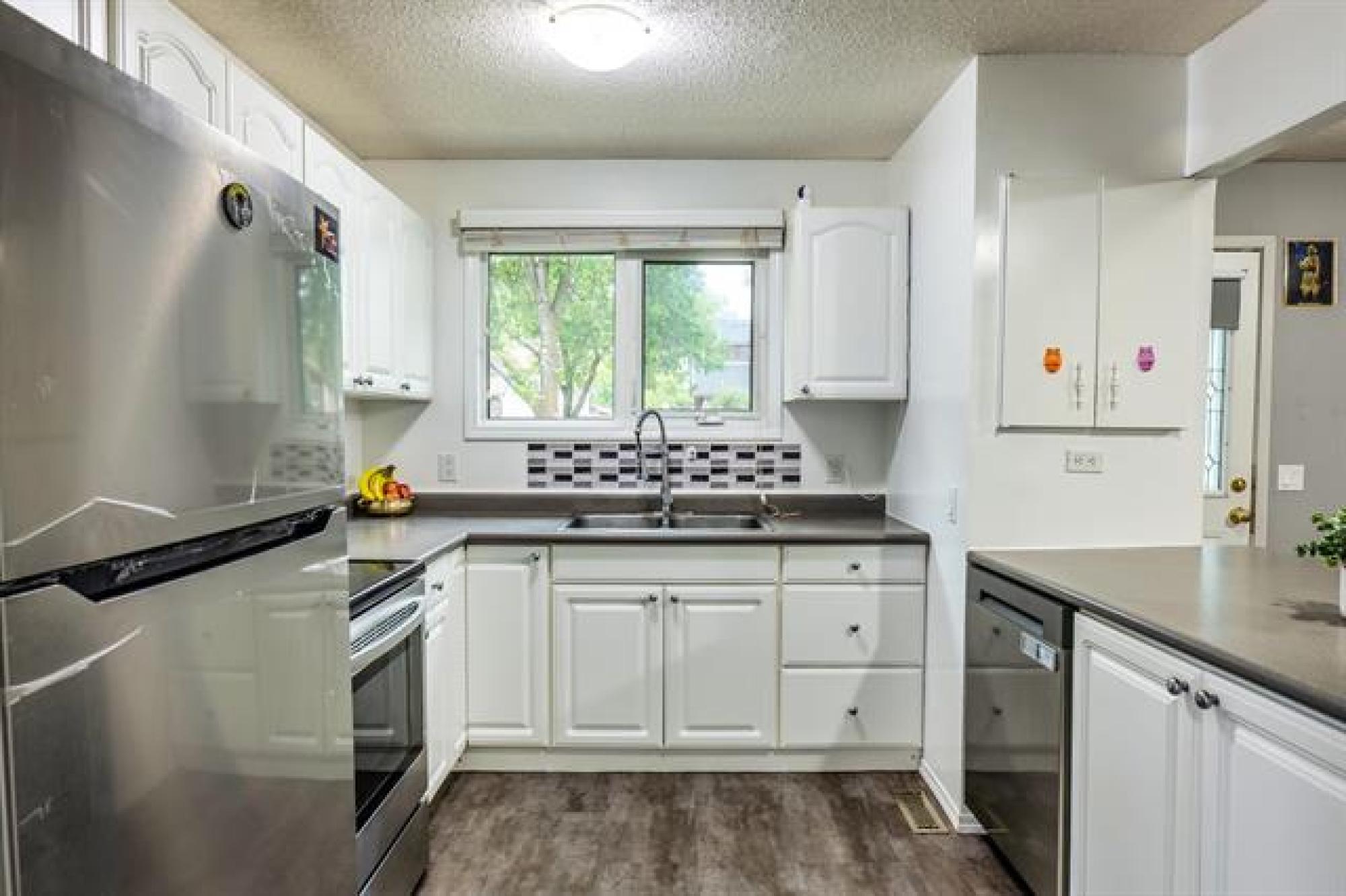 SS now. OFFER AS RECEIVED. You're going to love this Lakeside Meadows beauty—just steps from the beautiful lake & walking trails!This updated 3-bedroom,1.5-bath bungalow features a bright, open-concept layout with a spacious living room & large eat-in kitchen.Enjoy the ambiance of a stunning electric fireplace with a stone accent wall (2020) & newer flooring throughout the main level.The kitchen offers a large double sink & peninsula counter—perfect for a breakfast bar or homework station—and includes all appliances: fridge (2023), stove and microwave (2020), dishwasher (2024), and washer (2022). Two main-floor bedrooms and a modern 3-piece bath are complemented by tri-pane PVC windows and freshly painted spaces. Rebuilt stairs (2022) lead to a fully finished lower level with LVP flooring (2020), a huge guest bedroom, 2-piece bath, laundry/utility area. Mechanical updates include a high-efficiency furnace (2013), central A/C (2023), hot water tank (2024), and roof (2024). The fully fenced yard features newer front and back fencing (2019), an oversized single garage, and a carport/covered patio. Incredible location with greenspace across the street & direct access to serene nature trails & the lake.