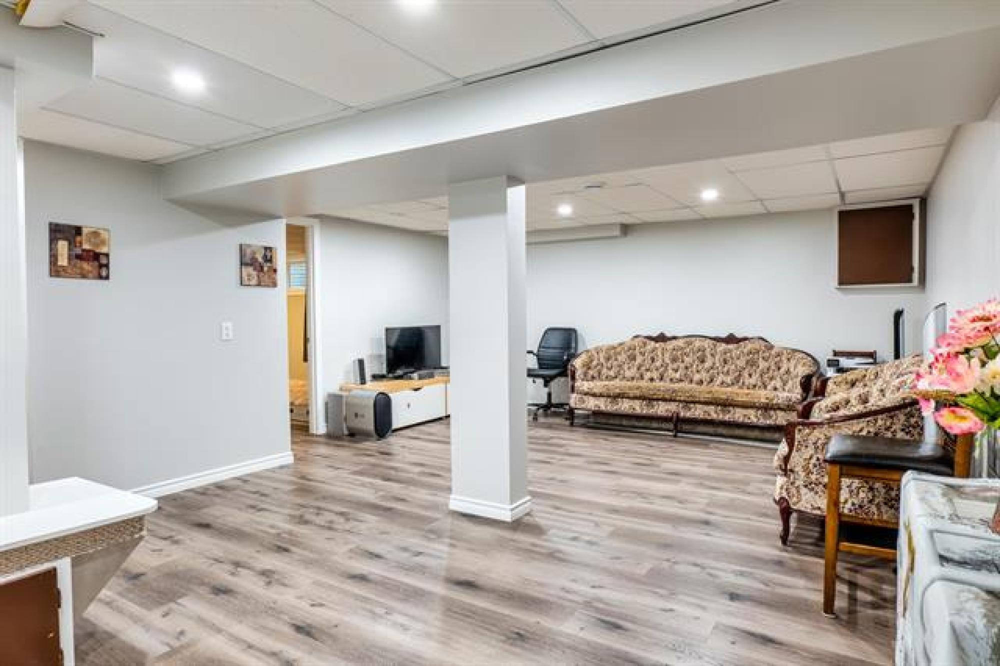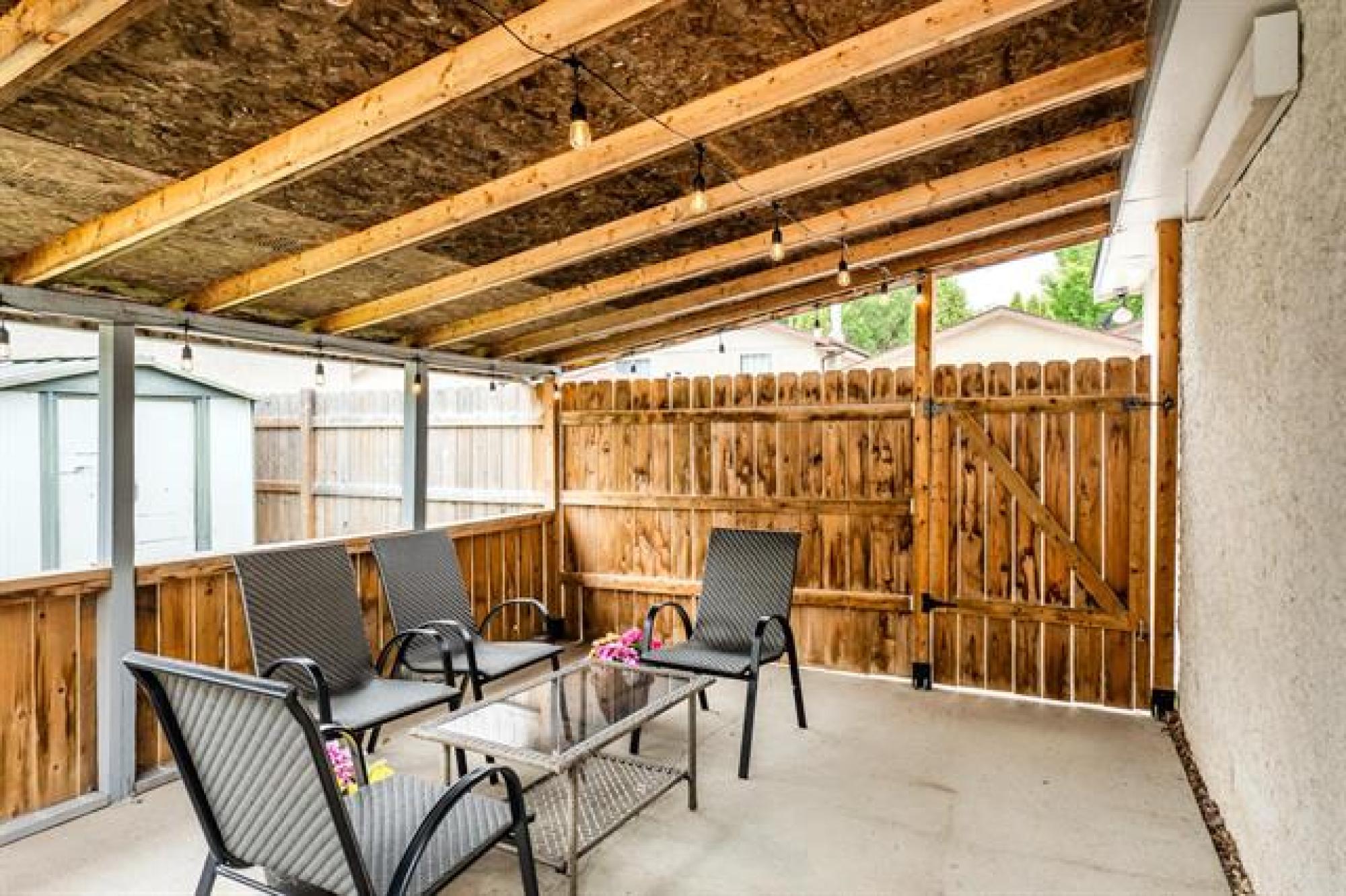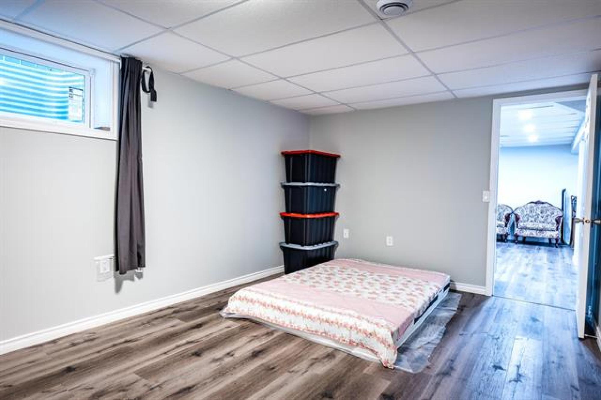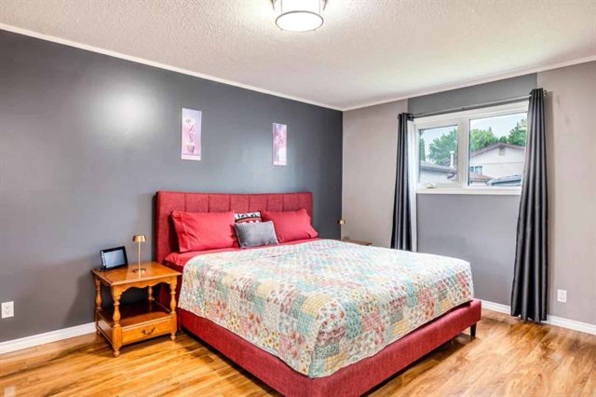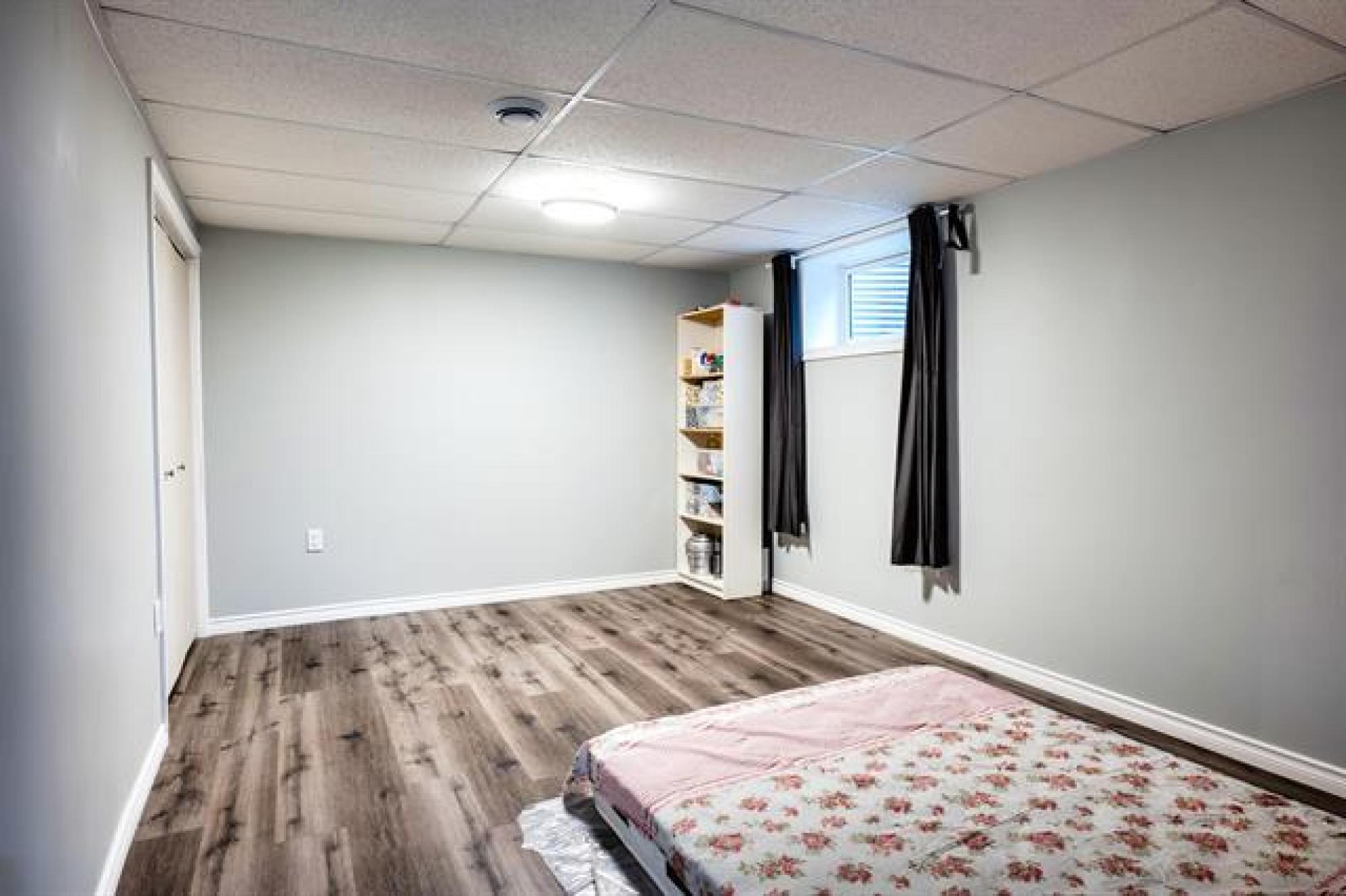 SS now. OFFER AS RECEIVED. You're going to love this Lakeside Meadows beauty—just steps from the beautiful lake & walking trails!This updated 3-bedroom,1.5-bath bungalow features a bright, open-concept layout with a spacious living room & large eat-in kitchen.Enjoy the ambiance of a stunning electric fireplace with a stone accent wall (2020) & newer flooring throughout the main level.The kitchen offers a large double sink & peninsula counter—perfect for a breakfast bar or homework station—and includes all appliances: fridge (2023), stove and microwave (2020), dishwasher (2024), and washer (2022). Two main-floor bedrooms and a modern 3-piece bath are complemented by tri-pane PVC windows and freshly painted spaces. Rebuilt stairs (2022) lead to a fully finished lower level with LVP flooring (2020), a huge guest bedroom, 2-piece bath, laundry/utility area. Mechanical updates include a high-efficiency furnace (2013), central A/C (2023), hot water tank (2024), and roof (2024). The fully fenced yard features newer front and back fencing (2019), an oversized single garage, and a carport/covered patio. Incredible location with greenspace across the street & direct access to serene nature trails & the lake.