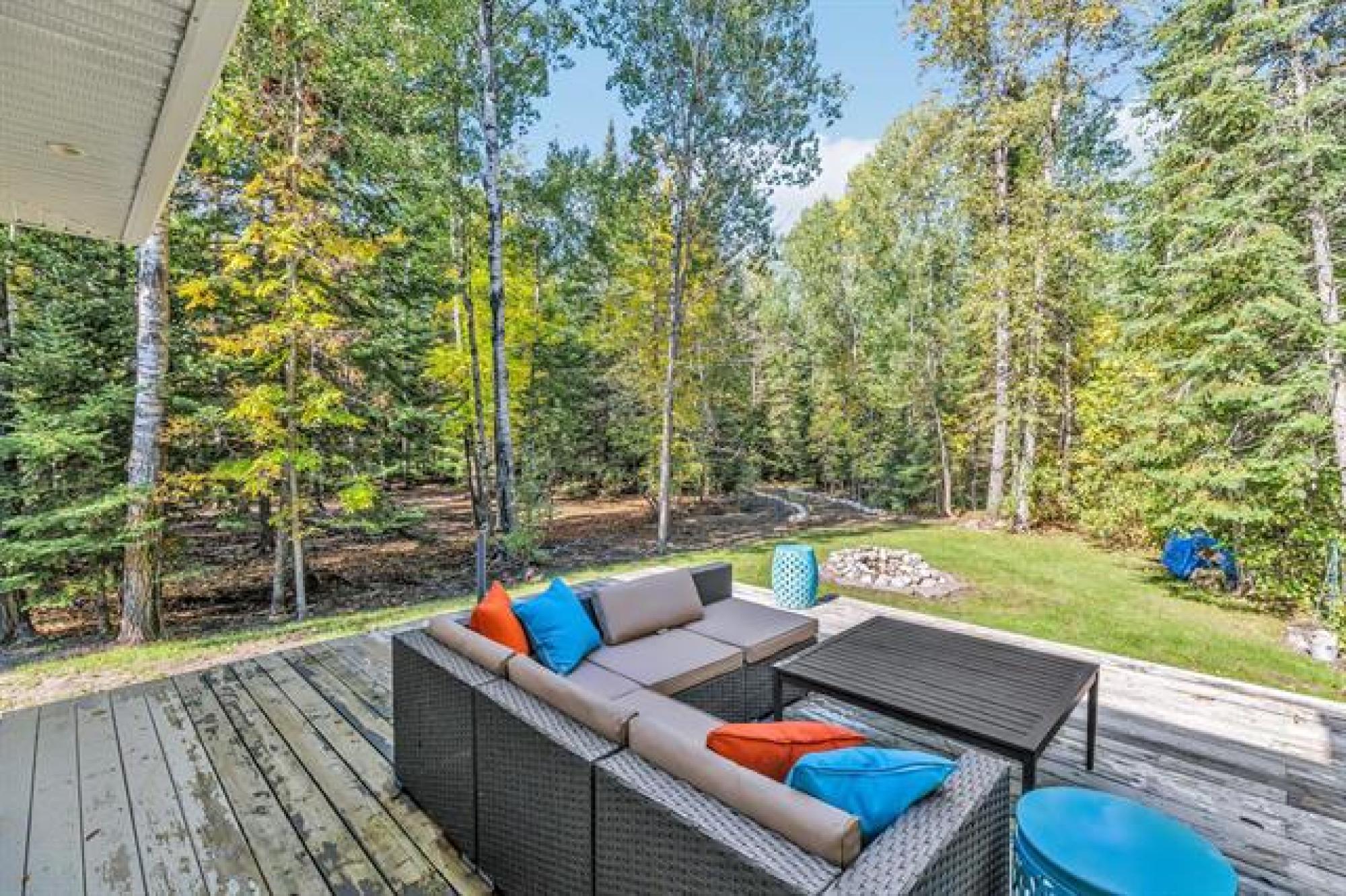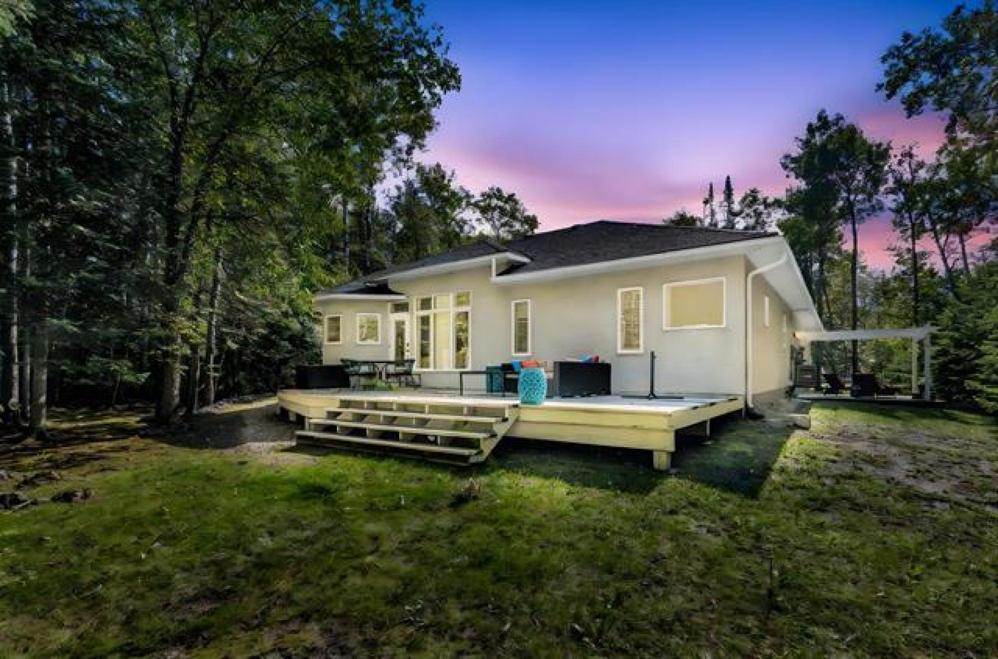 Built in 2011, this bright & spacious bungalow offers luxurious living space, nestled on a beautifully treed & private lot right on Grand Pines Golf Course. This property provides the perfect balance of seclusion and convenience, minutes from beaches, restaurants, shops & world-class golf. You'll love the gourmet kitchen w granite countertops & built-in double oven. The expansive living area boasts maple hardwood floors throughout, 10ft ceilings & triple-pane windows that flood the home w natural light while offering breathtaking views of the backyard forest. Enjoy three spacious bedrooms, including a primary suite w ensuite & WIC. The 33x23 insulated garage offers 12ft ceilings & custom shelving. Enjoy the outdoors from the covered front porch, side deck w pergola, rear deck, or fire pit. As a bonus, the vacant treed lot next door is included, providing extra privacy or endless opportunities for future development. Loads of updates: HWT '22, sump '21, ovens & cooktop '24, countertops '24, new closet shelving, and new leaf filter system to eaves just added ($20k). This is a rare, once-in-a-lifetime opportunity to own a private retreat or year round home, only 1 hr from the north perimeter.