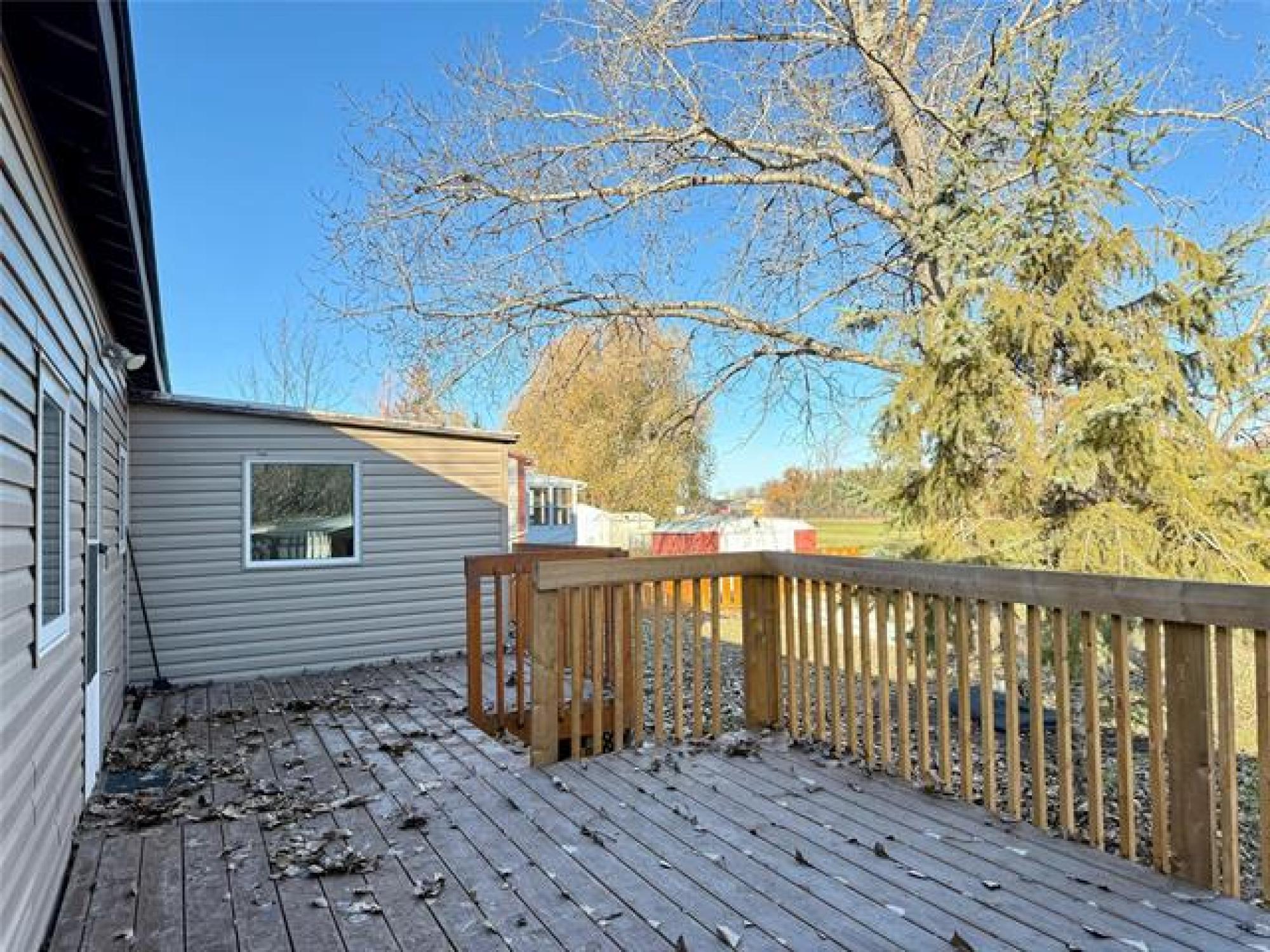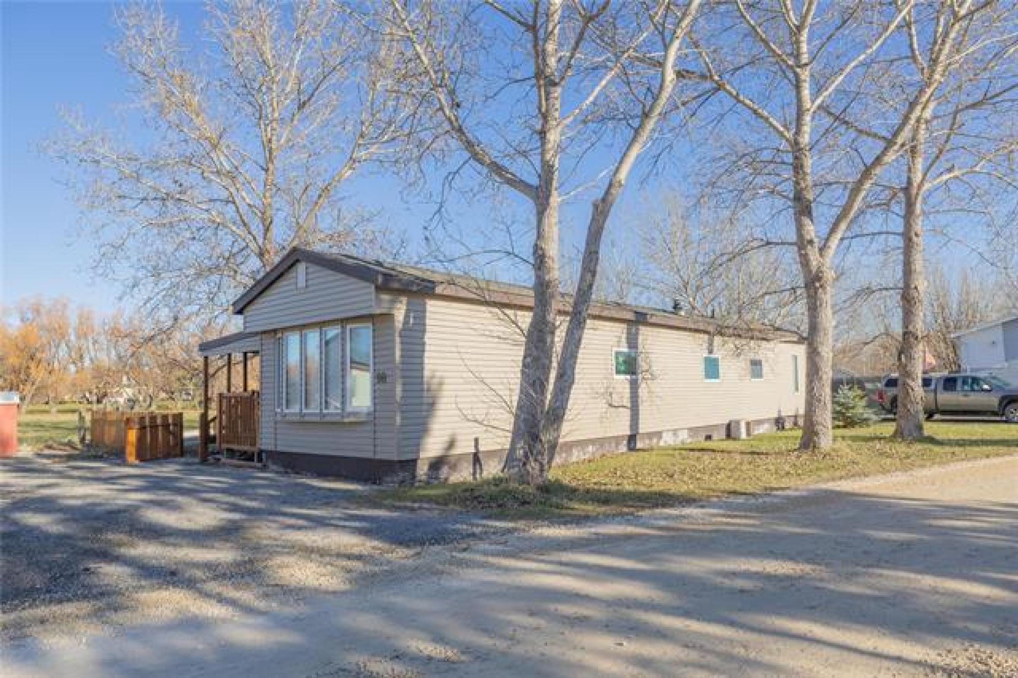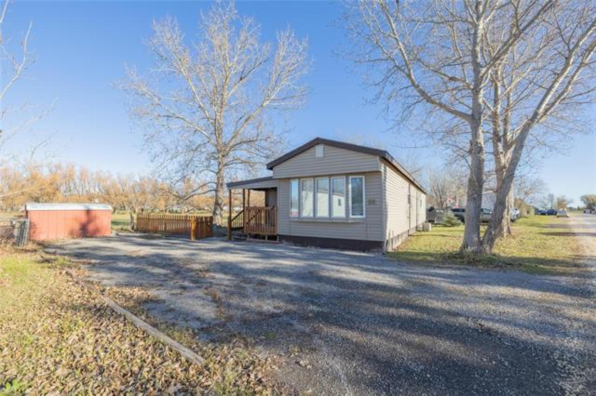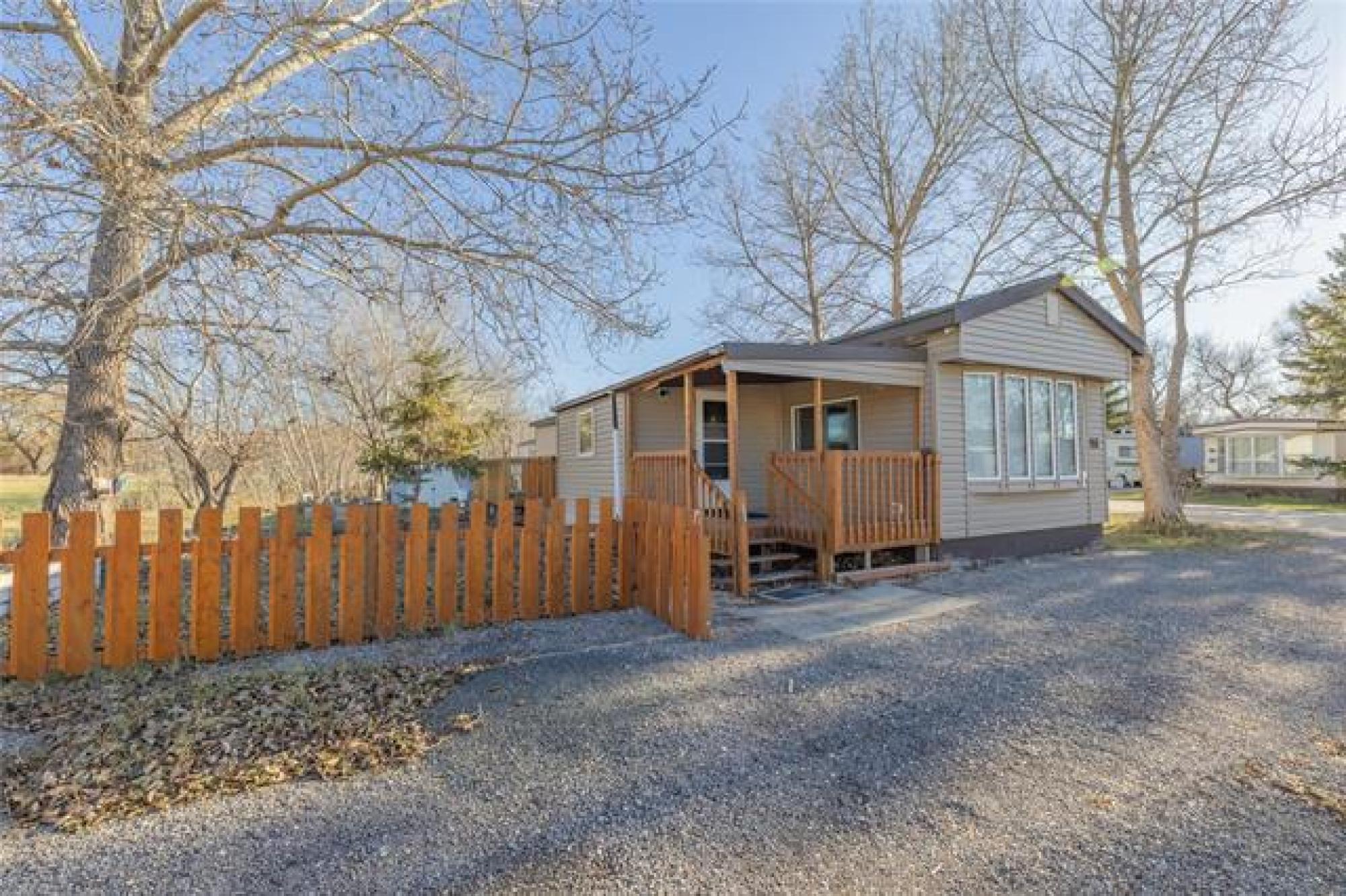Looking for incredible value with style, privacy, and space? This charming home delivers over 1000 sq ft of updated comfort for under $100,000! Set in a quiet, well kept park just north of the perimeter, it offers peaceful living without sacrificing convenience. The fenced yard with elaborate deck backs on to open fields with no rear neighbours, creating a rare sense of seclusion and a perfect place for pets, gardening, or evening fires. Step through the inviting front porch (ideal as a mudroom) and into a bright, open living space where modern updates meet cozy charm. The kitchen offers generous cabinetry and storage, flowing easily into the spacious living room for relaxed everyday living. The primary bedroom offers privacy, while one of the other two bedroom has been converted into a dream dressing room which can easily adaptable back to a bedroom or home office. Updates include newer windows, roof, bathroom, and 1.5” insulation beneath the vinyl siding for year-round efficiency. With park fees of just $320/month, this move in ready gem makes an unbeatable option for downsizers, first time buyers, or anyone seeking affordable comfort with a view and plenty of parking!