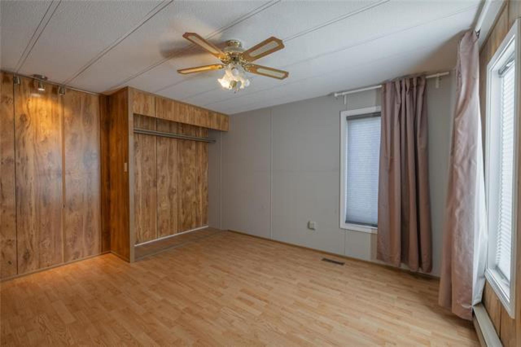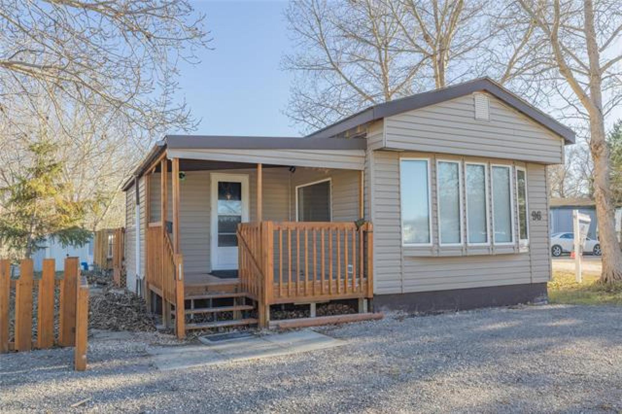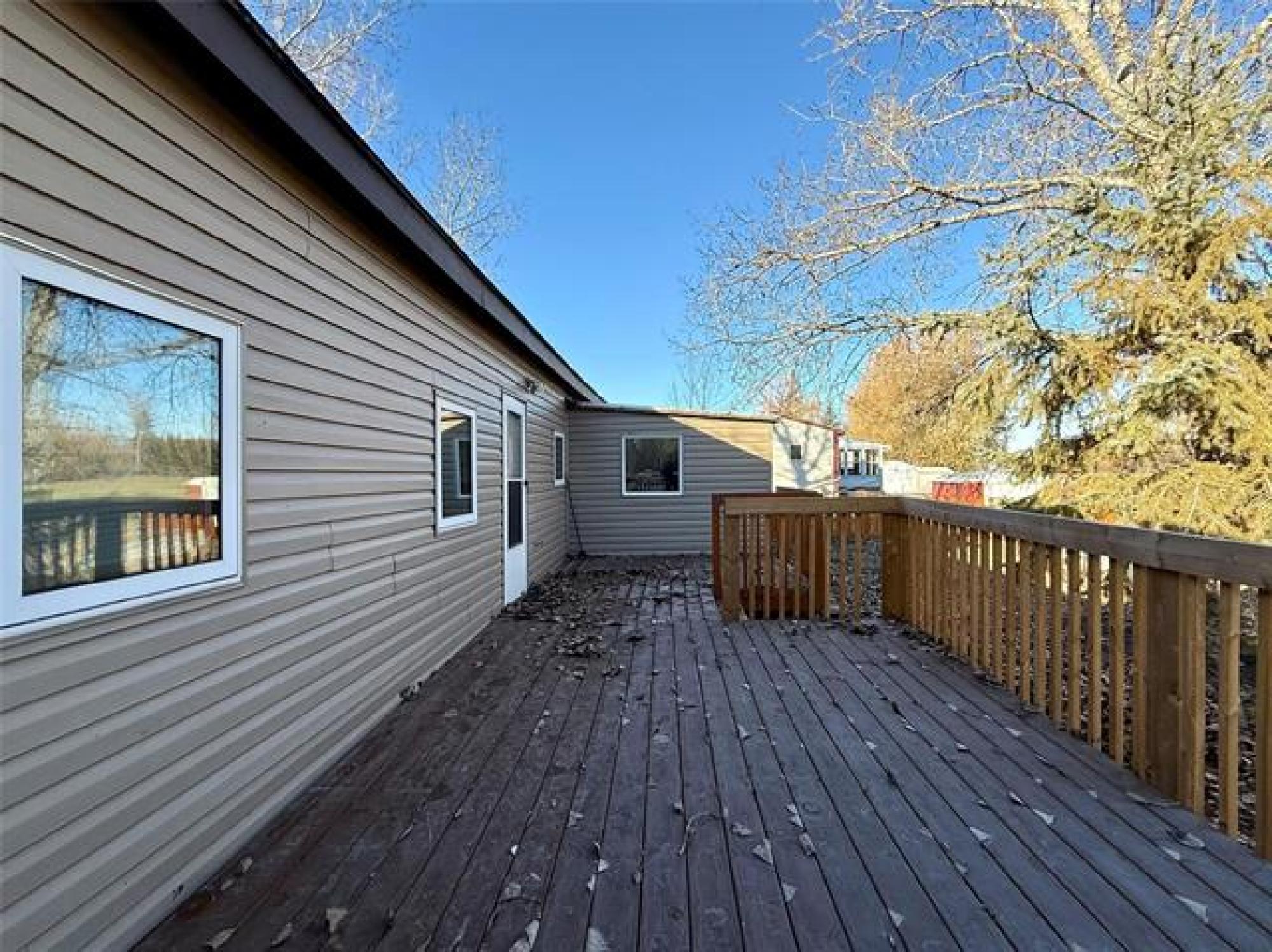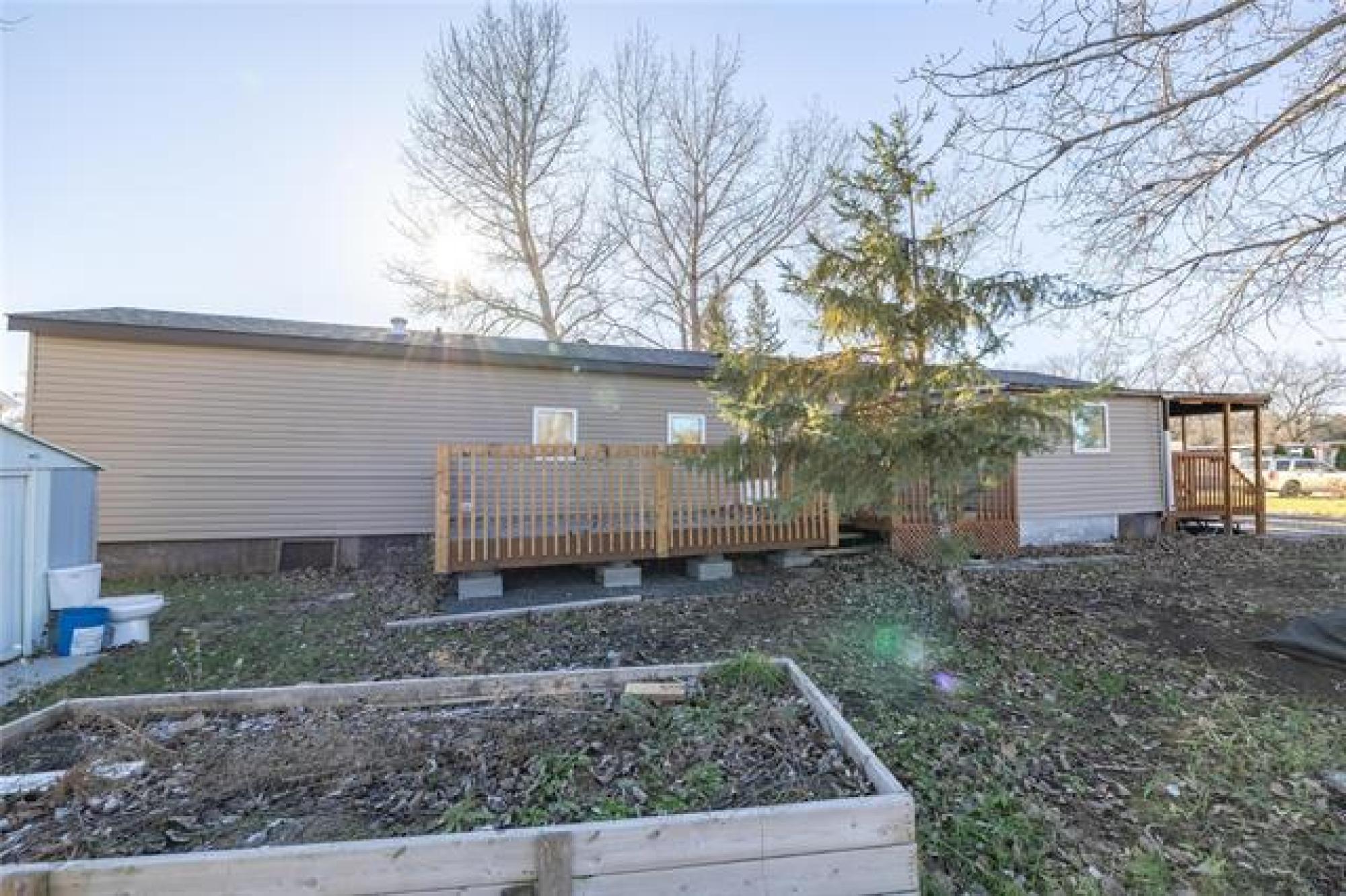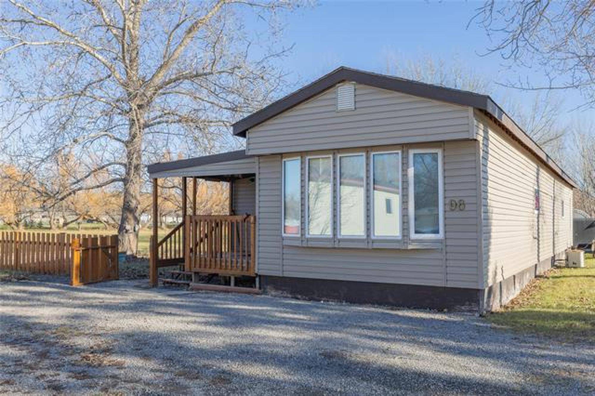 Looking for incredible value with style, privacy, and space? This charming home delivers over 1000 sq ft of updated comfort for under $100,000! Set in a quiet, well kept park just north of the perimeter, it offers peaceful living without sacrificing convenience. The fenced yard with elaborate deck backs on to open fields with no rear neighbours, creating a rare sense of seclusion and a perfect place for pets, gardening, or evening fires. Step through the inviting front porch (ideal as a mudroom) and into a bright, open living space where modern updates meet cozy charm. The kitchen offers generous cabinetry and storage, flowing easily into the spacious living room for relaxed everyday living. The primary bedroom offers privacy, while one of the other two bedroom has been converted into a dream dressing room which can easily adaptable back to a bedroom or home office. Updates include newer windows, roof, bathroom, and 1.5” insulation beneath the vinyl siding for year-round efficiency. With park fees of just $320/month, this move in ready gem makes an unbeatable option for downsizers, first time buyers, or anyone seeking affordable comfort with a view and plenty of parking!