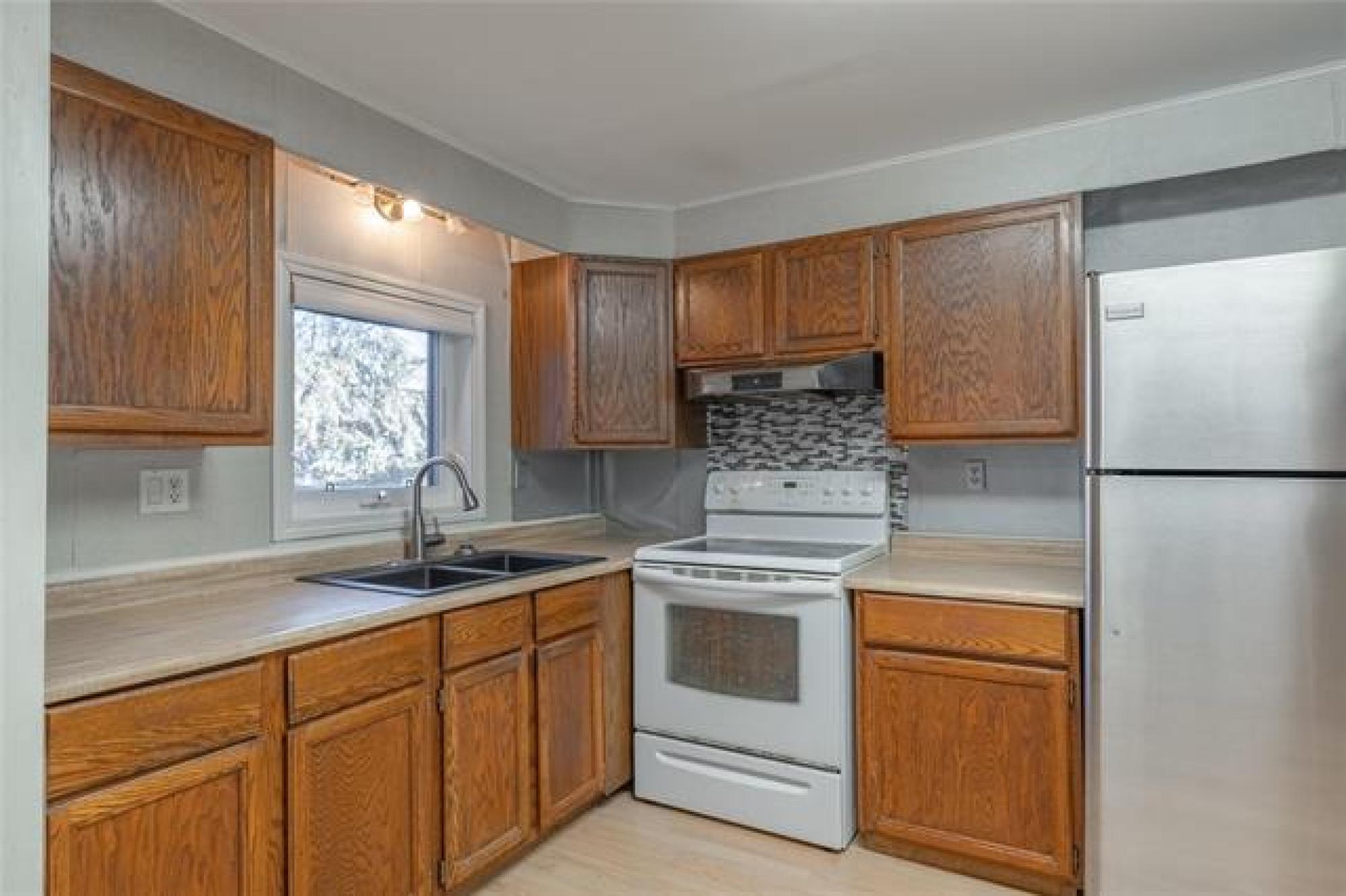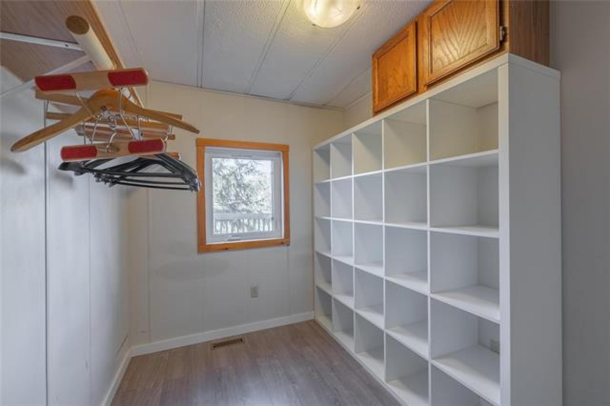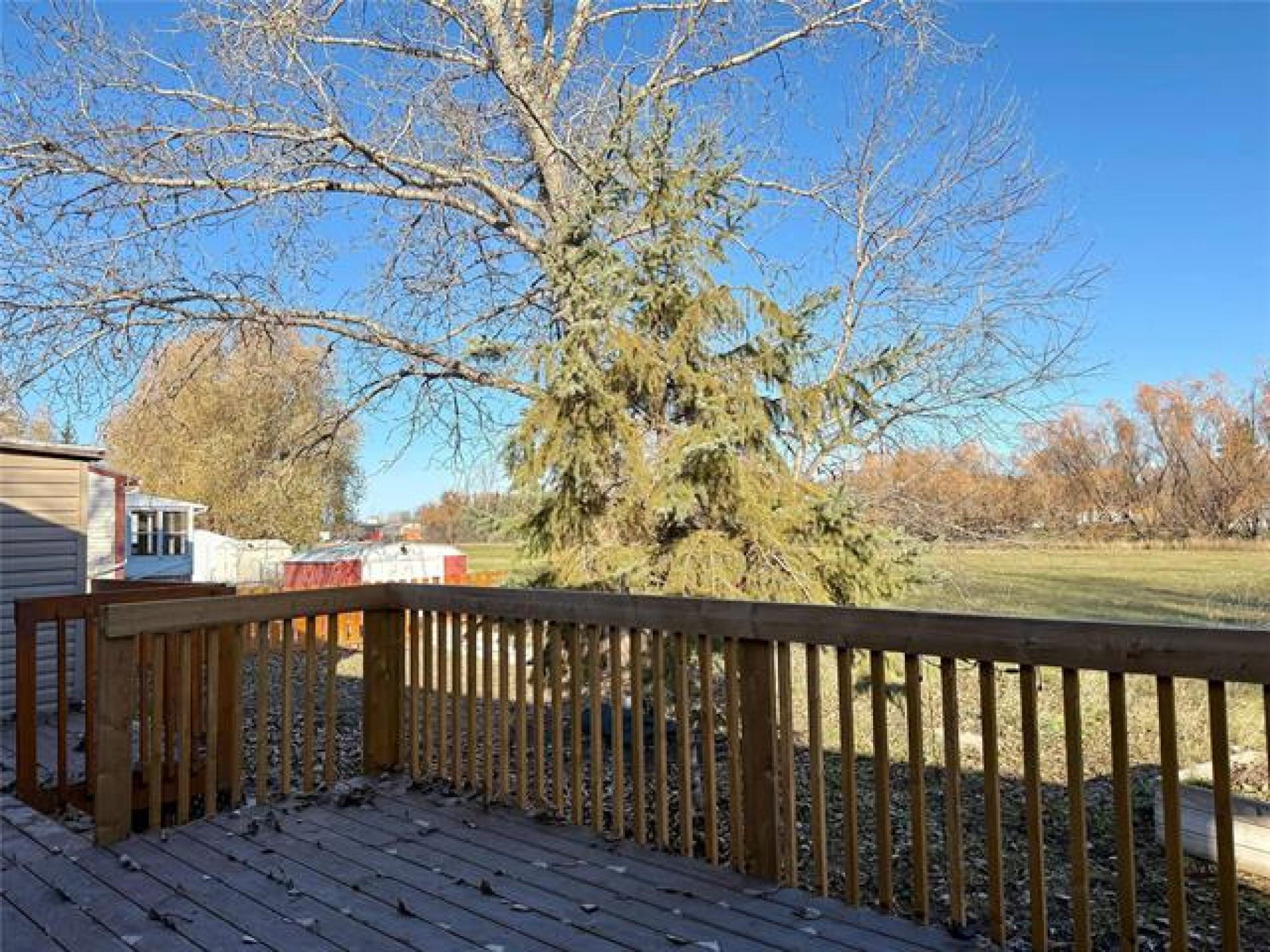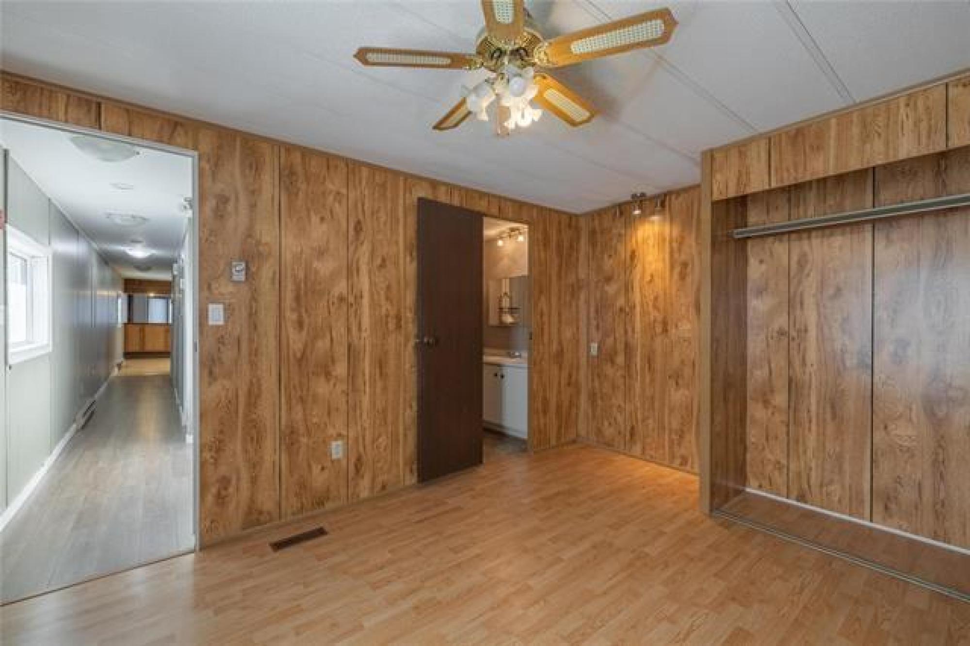 Looking for incredible value with style, privacy, and space? This charming home delivers over 1000 sq ft of updated comfort for under $100,000! Set in a quiet, well kept park just north of the perimeter, it offers peaceful living without sacrificing convenience. The fenced yard with elaborate deck backs on to open fields with no rear neighbours, creating a rare sense of seclusion and a perfect place for pets, gardening, or evening fires. Step through the inviting front porch (ideal as a mudroom) and into a bright, open living space where modern updates meet cozy charm. The kitchen offers generous cabinetry and storage, flowing easily into the spacious living room for relaxed everyday living. The primary bedroom offers privacy, while one of the other two bedroom has been converted into a dream dressing room which can easily adaptable back to a bedroom or home office. Updates include newer windows, roof, bathroom, and 1.5” insulation beneath the vinyl siding for year-round efficiency. With park fees of just $320/month, this move in ready gem makes an unbeatable option for downsizers, first time buyers, or anyone seeking affordable comfort with a view and plenty of parking!